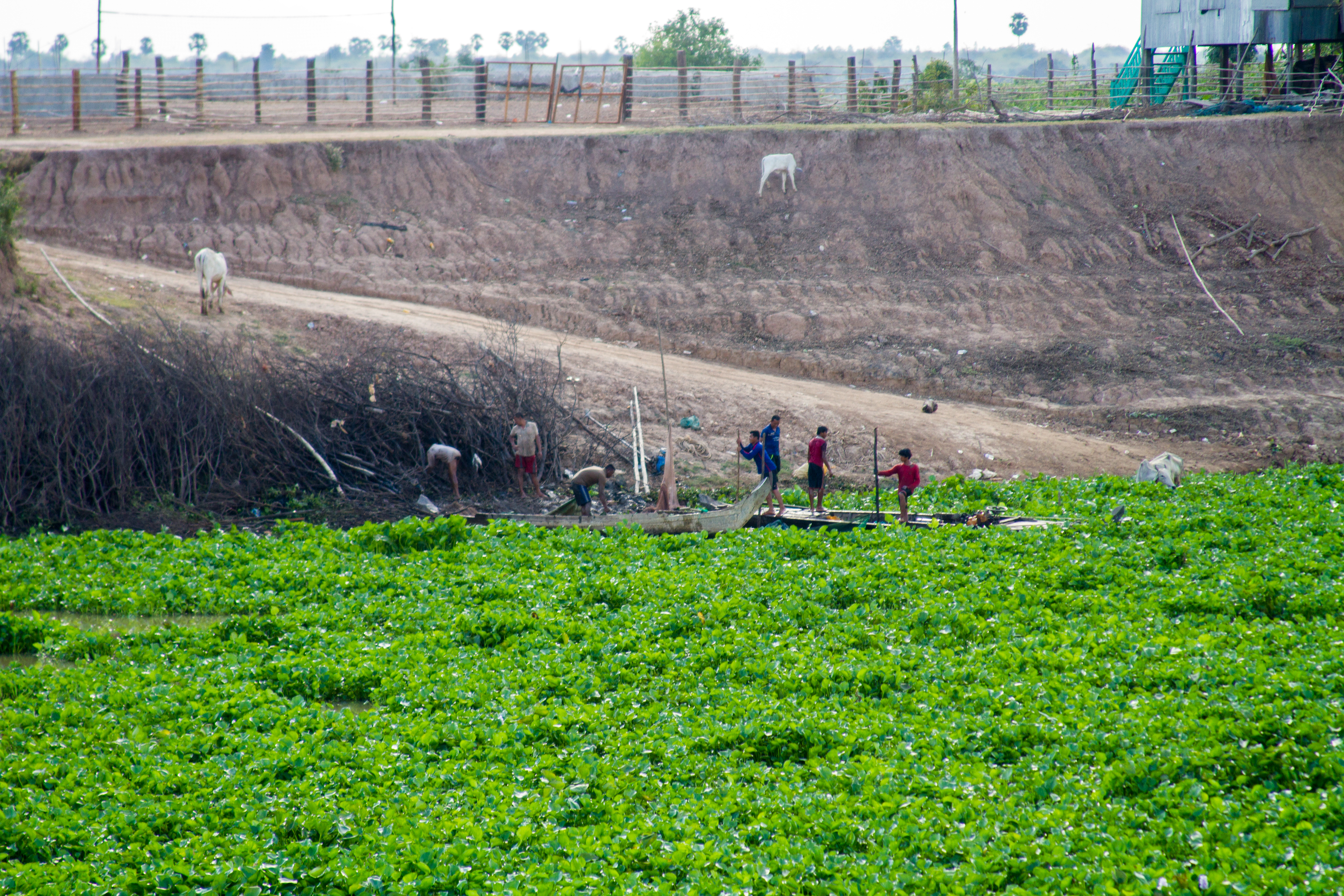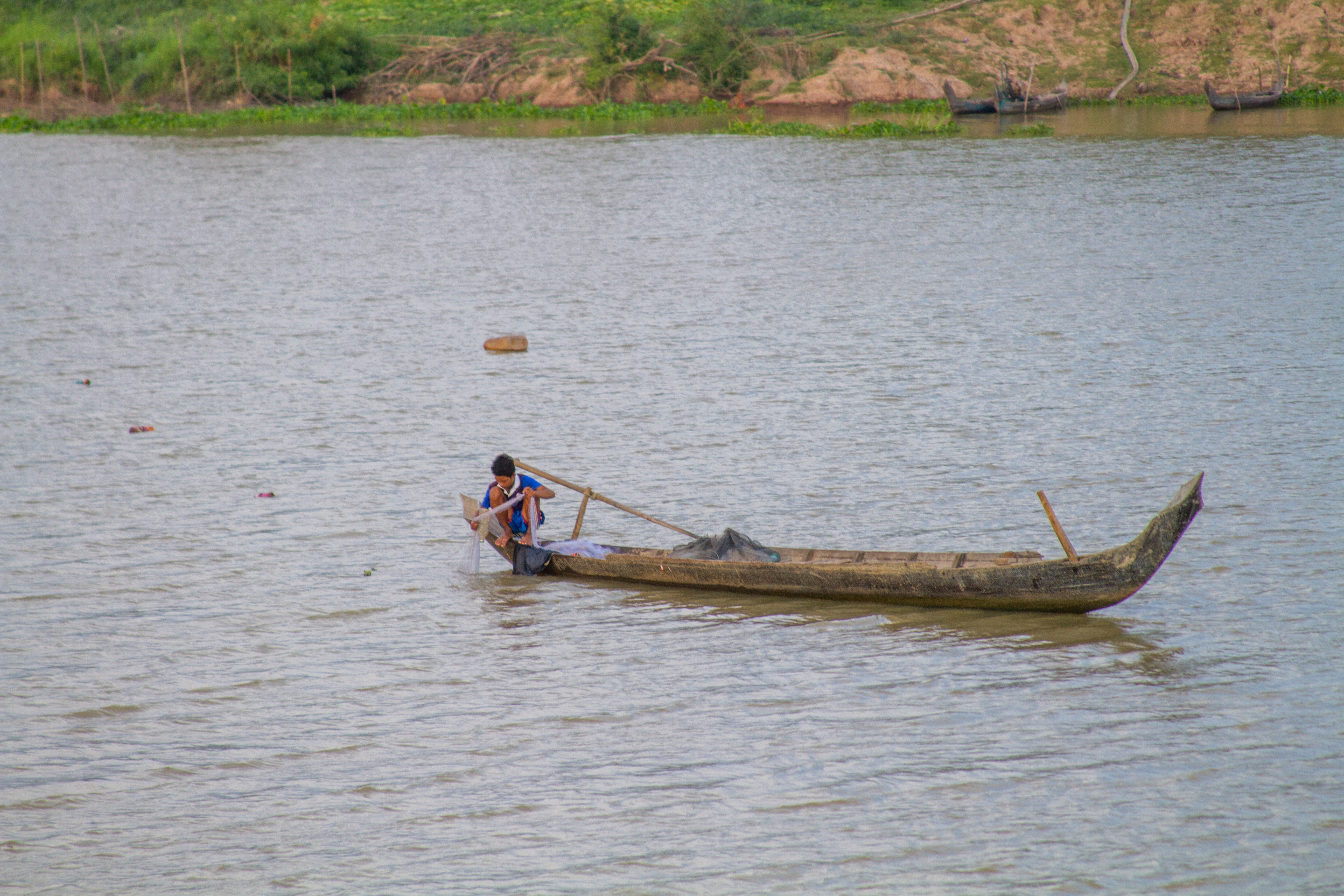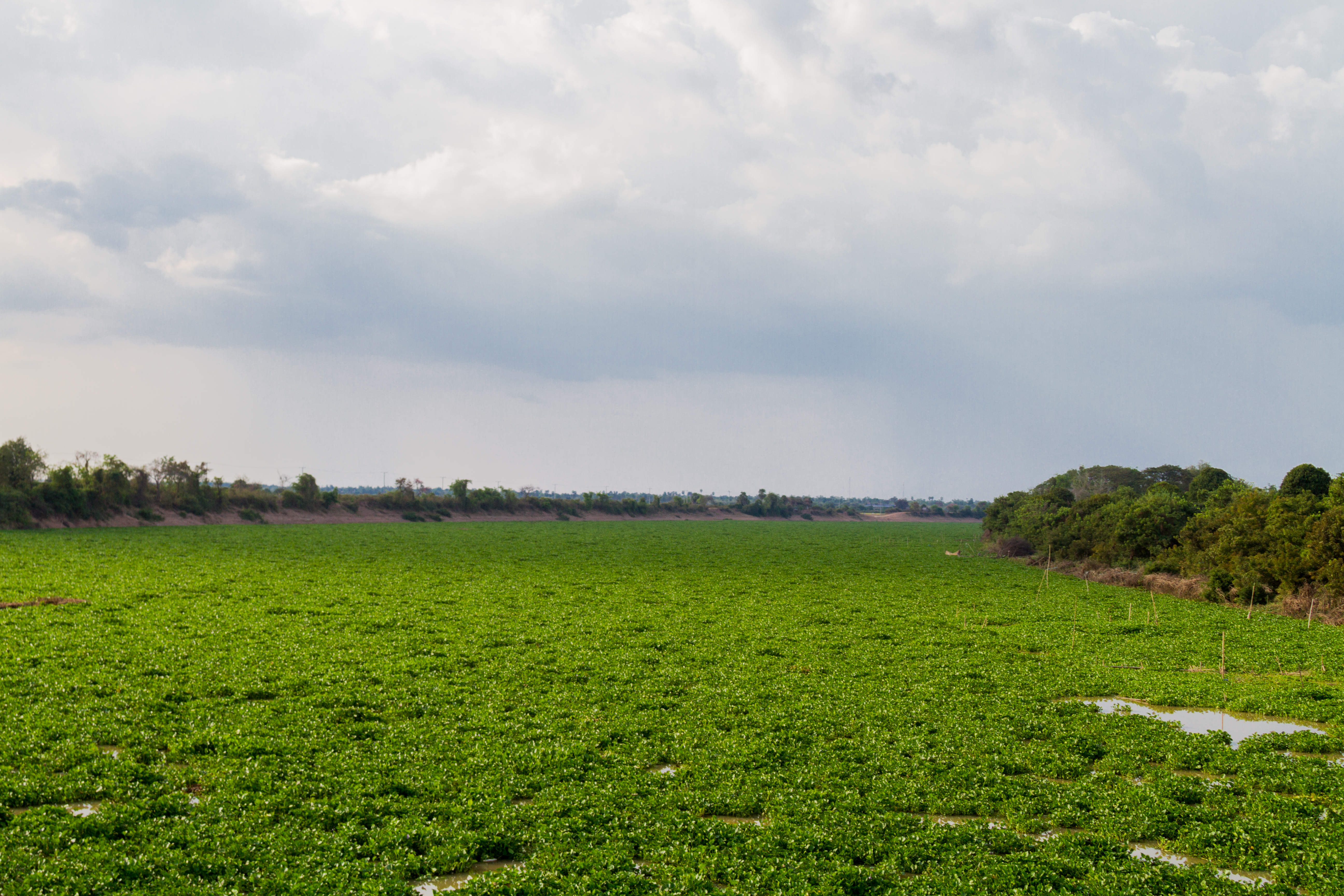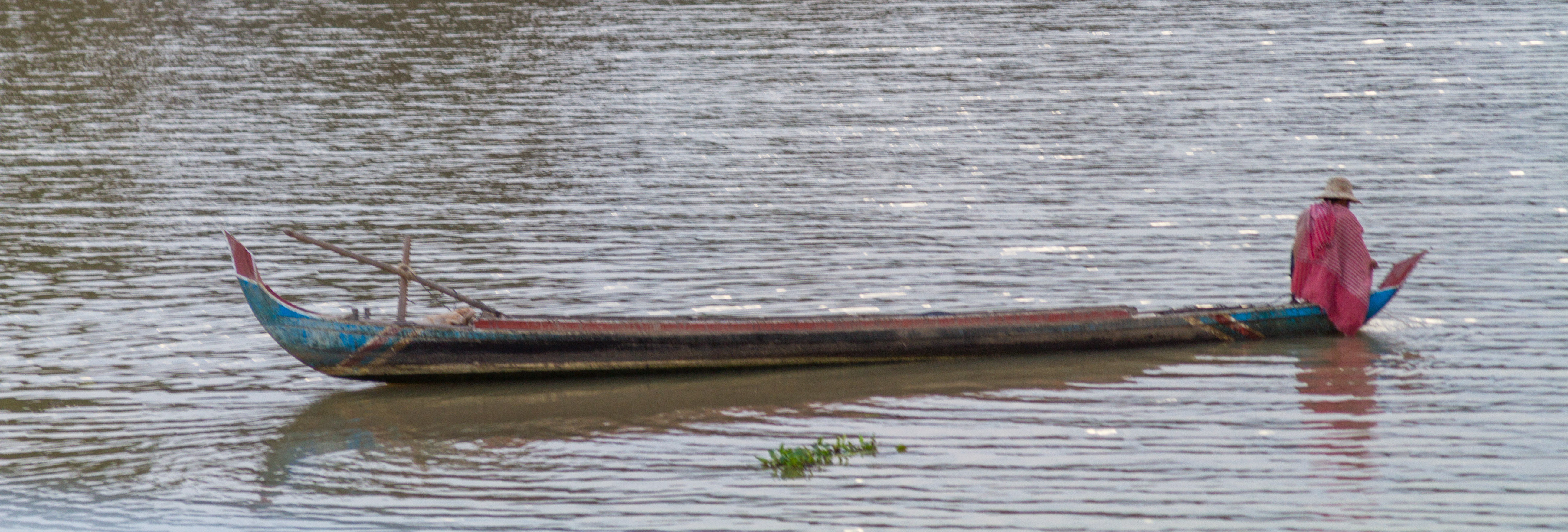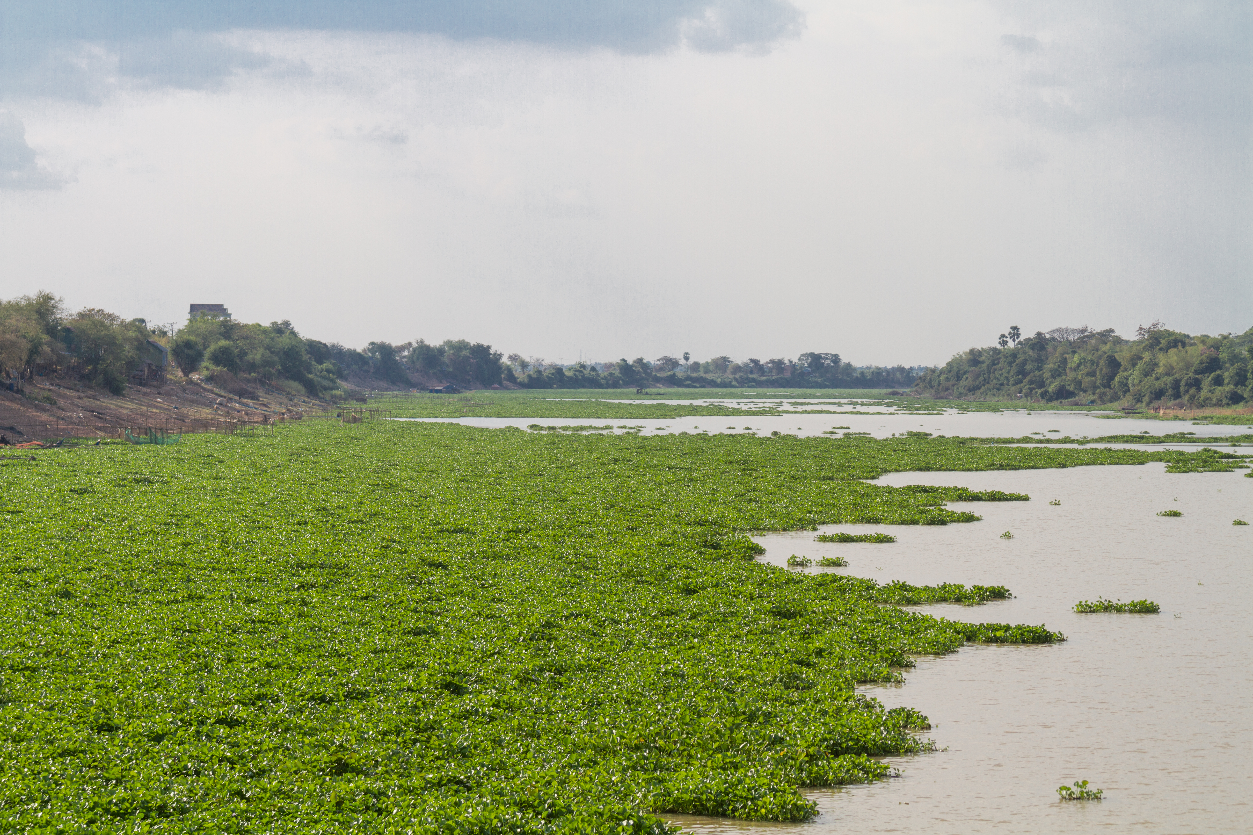 By mid-afternoon we made it to the boat. We are starting out on the Tonle Sap River and will go to the Tonle Sap lake before heading out on the Mekong River. The Tonle Sap River is unusual as the direction of the river changes twice a year. We are starting out going upriver based on current currents. We managed to be here during the 1.5 weeks out of the year that the Tonle Sap River is covered by water hyacinth. It looked like our boat was floating through a field. Very pretty. We also got to see “everyday life” along the river with houses, ferries, fishermen, kids, water buffalo, etc.