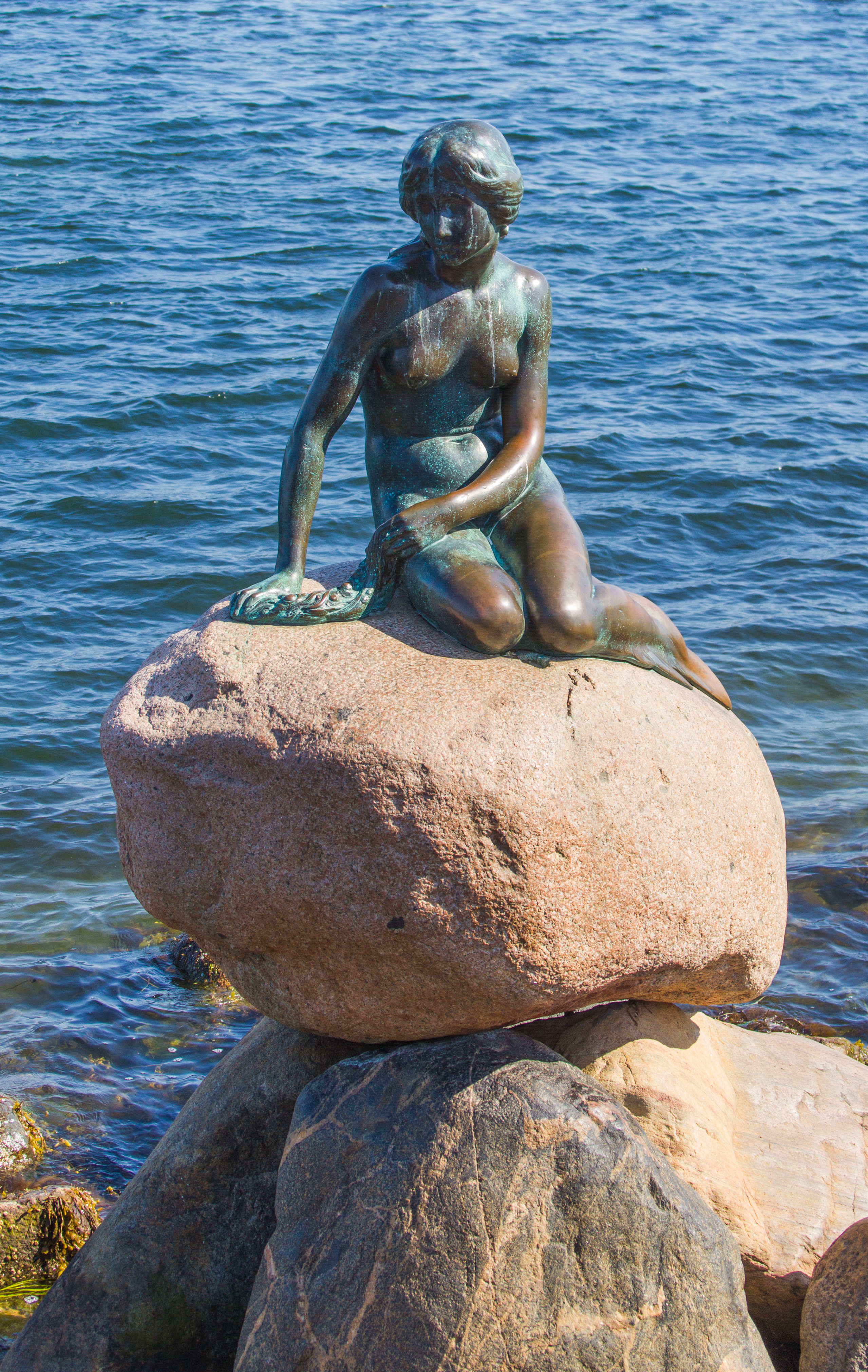 We saw the Little Mermaid statue. It was commissioned in 1909 and is, naturally, based on the Hans Christian Andersen character. It was unveiled in 1913. The artist wanted to use a ballerina as a model but she did not want to pose nude so he used his wife as the nude model for the body and the ballerina as the model for the head. The statue is along the shore, just in the water. Unfortunately, it has been vandalized multiple times over the years, having been painted, lots limbs, been blasted off its base, and been decapitated twice. Obviously it has been repaired each time.