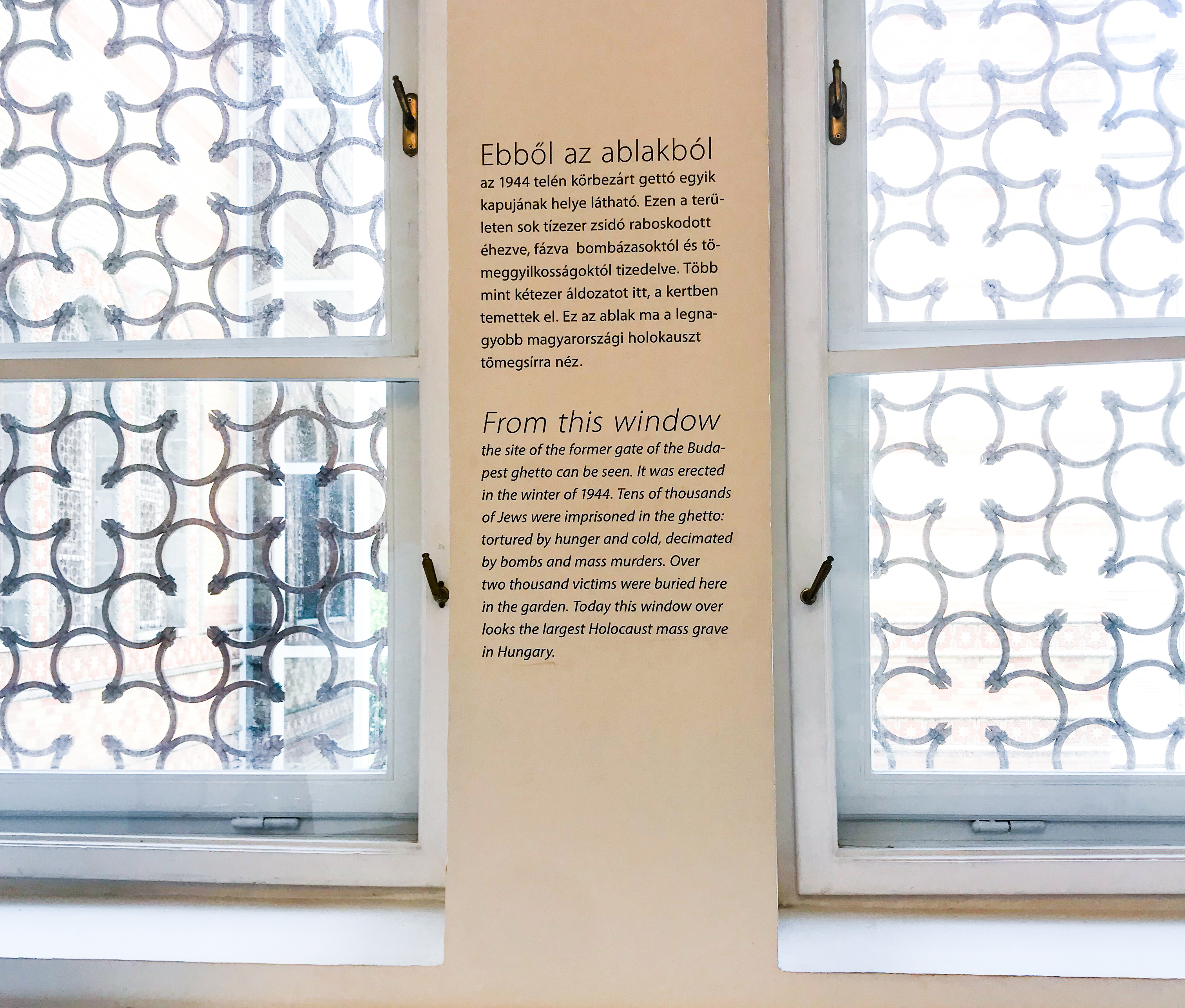 From there we went to the Dohany Street Synagogue. This is reportedly the second largest synagogue in the world. They have a wonderful museum of Jewish artifacts, unfortunately, many of them family items of people who died in the Jewish Ghetto during WWII. The Synagogue was built between 1854-1859. During WWII, the Synagogue was part of the Jewish Quarter that made up the Jewish ghetto. This area was surrounded by fences and a stone wall. It was in operation during Nazi occupation of Budapest from November 1944 until the Soviets removed the Nazis January 17, 1945. During that time no food was allowed into the Jewish Quarter and nobody went in or out. Thousands died. During the entire time of the Nazi occupation of Budapest, the Jewish population went from 200k to 70k in the the ghetto with another approximately 20k given diplomatic immunity. More than half of those lost were sent to concentration camps, mostly along the Austrian border. The last remaining section fo the ghetto wall was demolished in 2006, although there are apparently tiny portions remaining in some parts of the Jewish quarter.