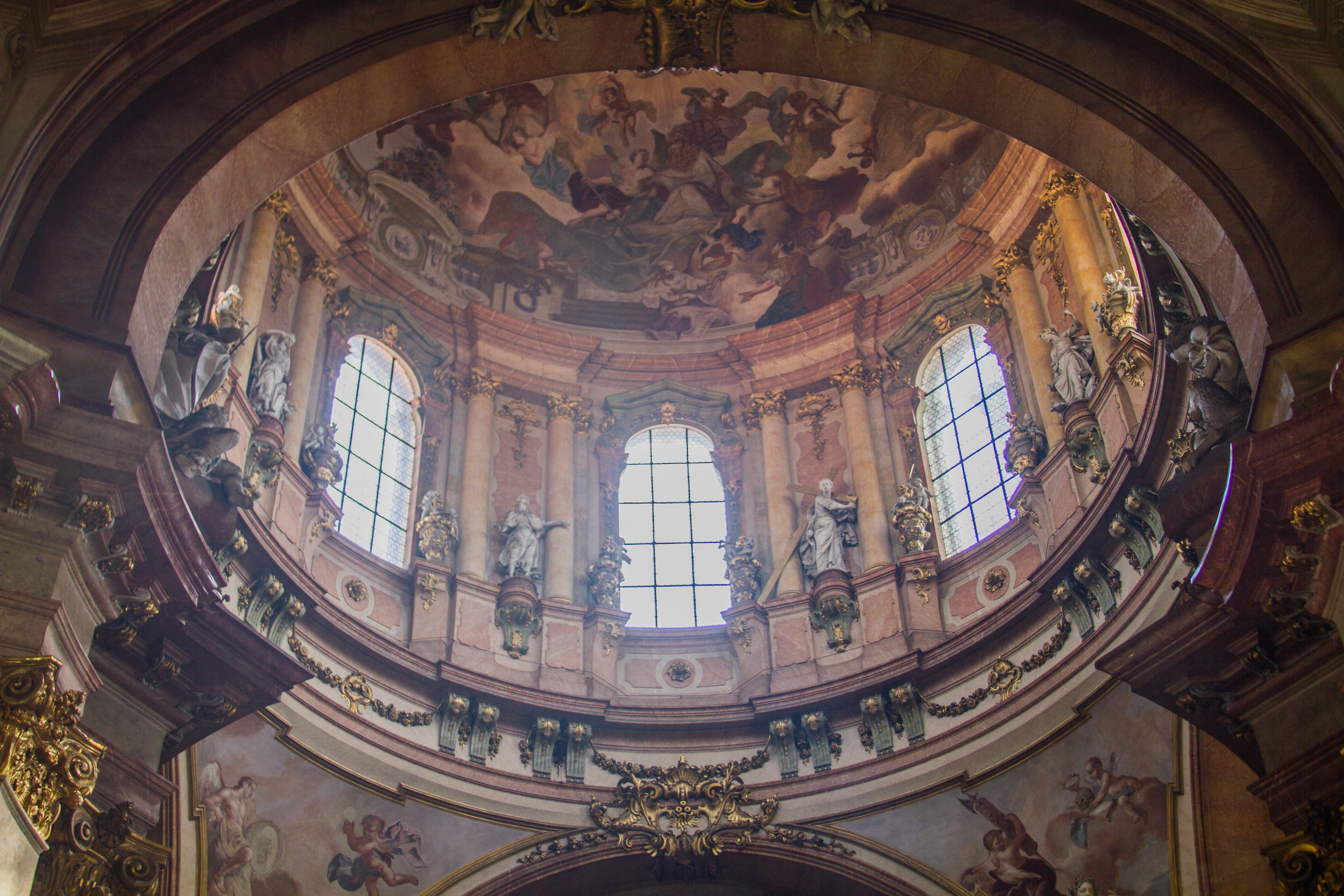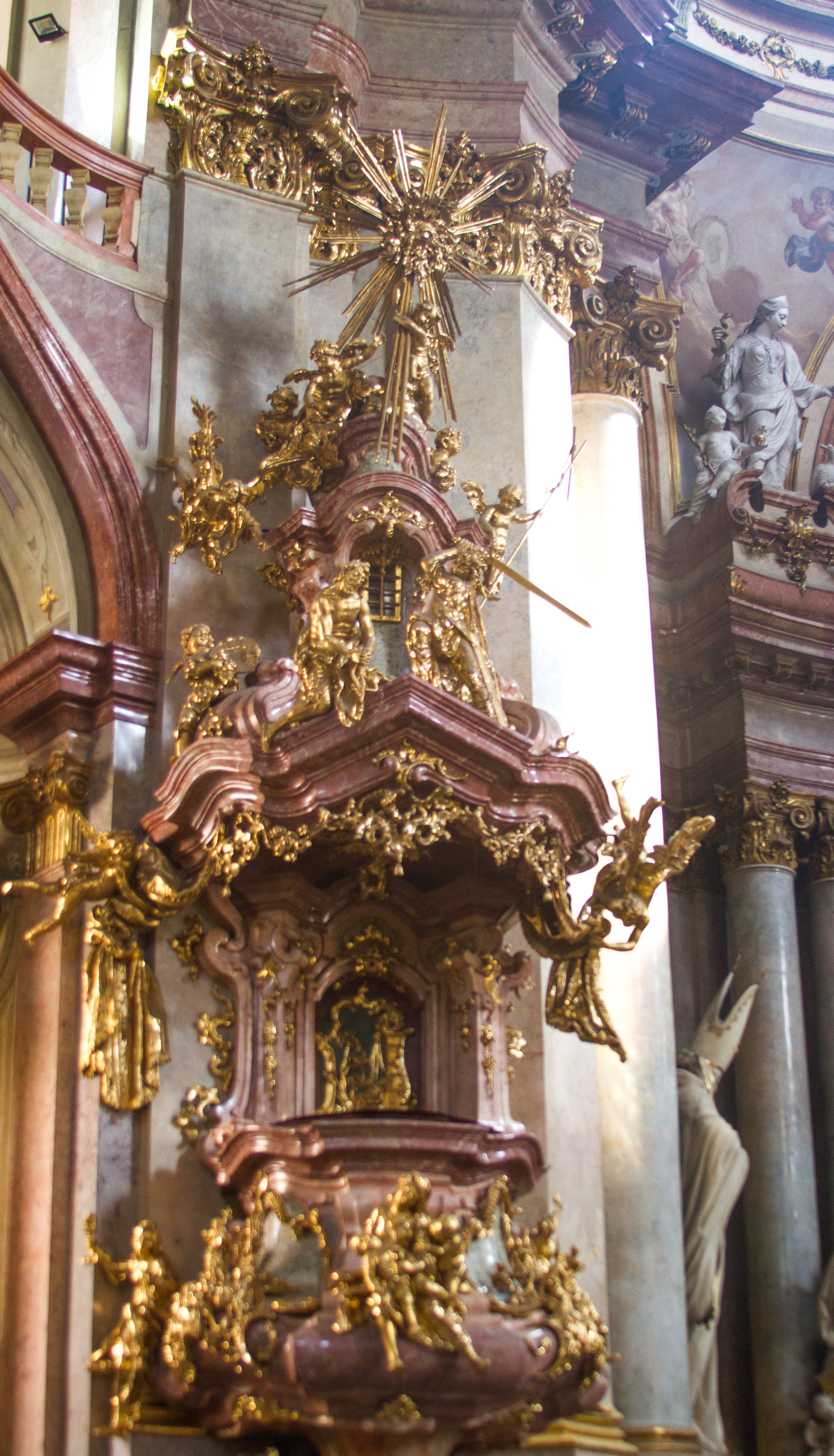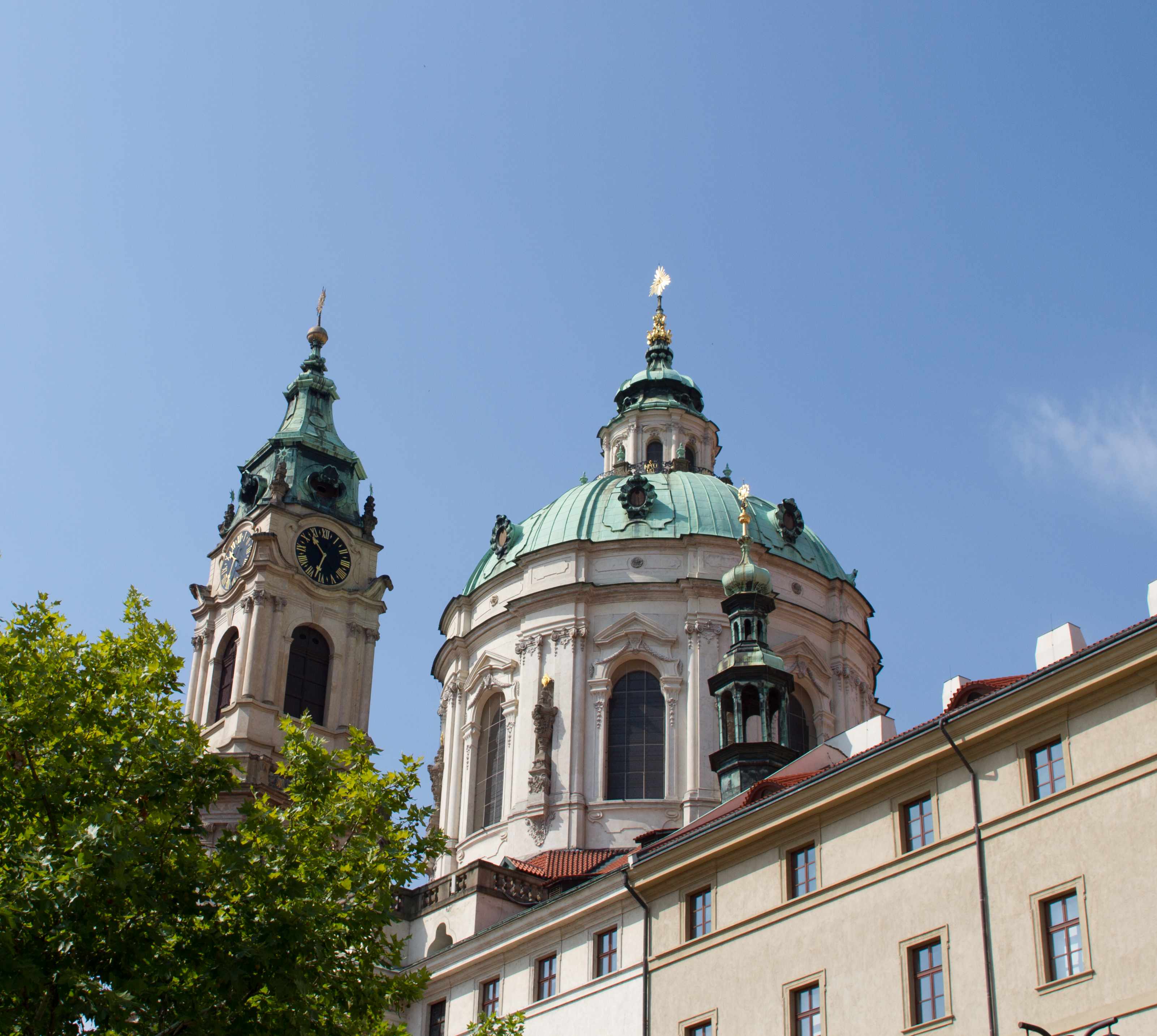 From there we walked down to St Nicholas Church, which is down the hill from the castle. The current church building is a Baroque style church that was built in the late 1600s, but a church has been on this site since at least the 1200s. The church’s tower has a very dramatic copper cupola that was added in the mid 1700s. One interesting thing about this church is that the communists used the tower as an observatory to spy on the American and Yugoslavian embassies during the Cold War.