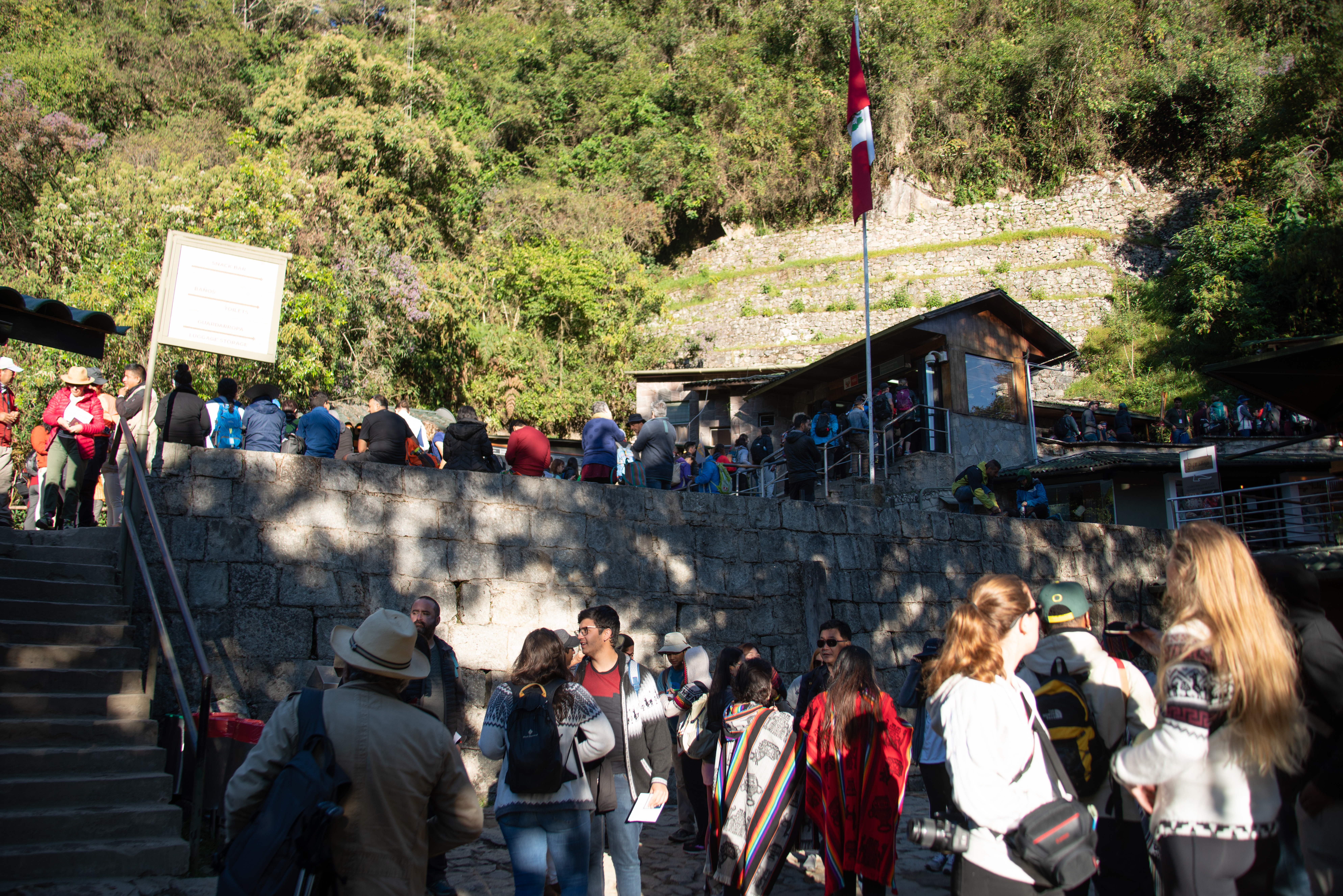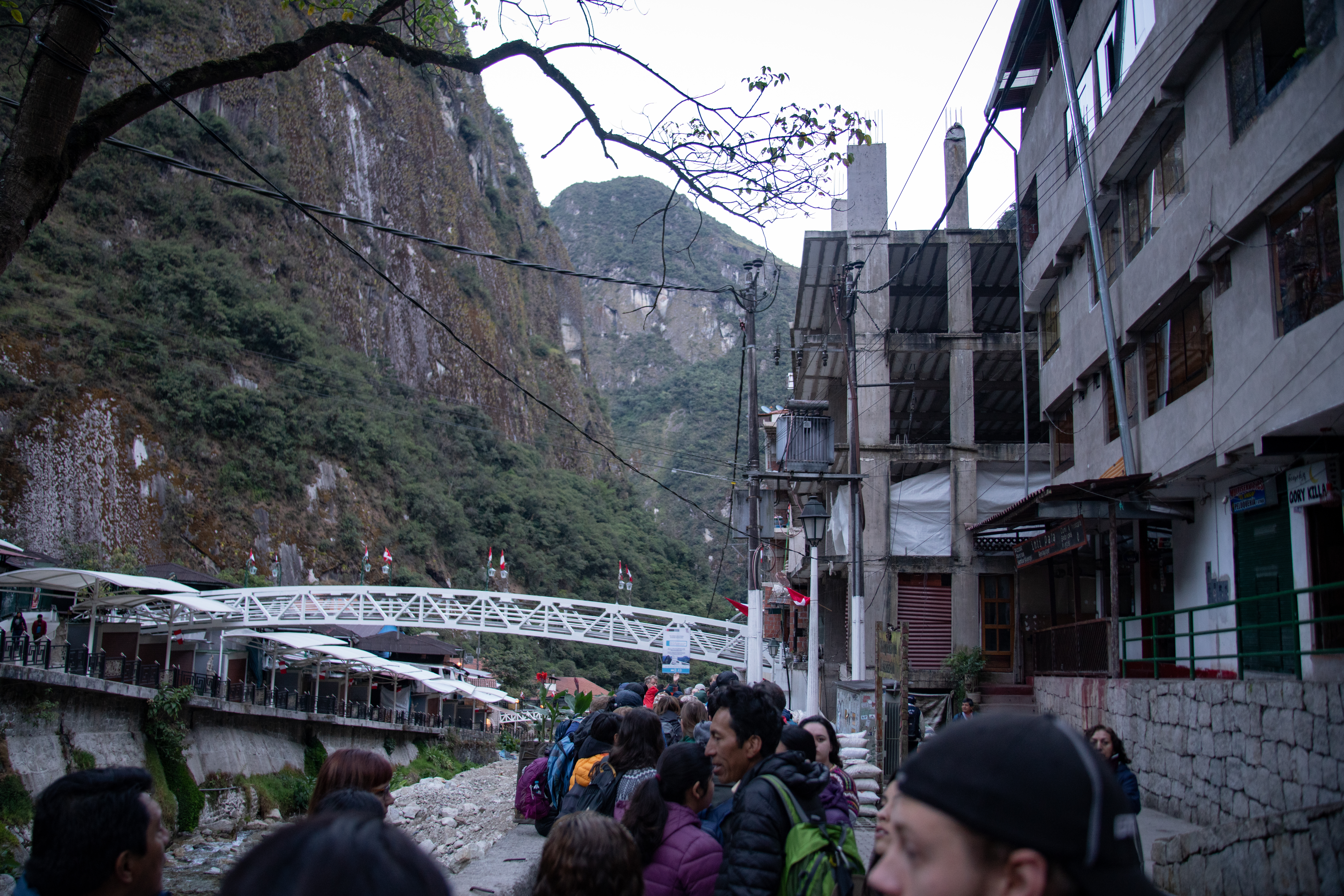 The day started early as we had 7 am entrance tickets. We spent the night in the tourist town, Aguas Calientes (think Hot Springs) after coming up in a train from Ollantaytambo last night. This town 3.7 miles away from Machu Picchu and is basically only there to serve tourists, so it is full of hotels, restaurants, a market, and other shops. There is a train station, as that is how most everyone gets here, and the “bus station” to get up to Machu Picchu. Anyways, our guide picked us up at 6:15, collected the rest of our group, and we headed off to the line for the buses.