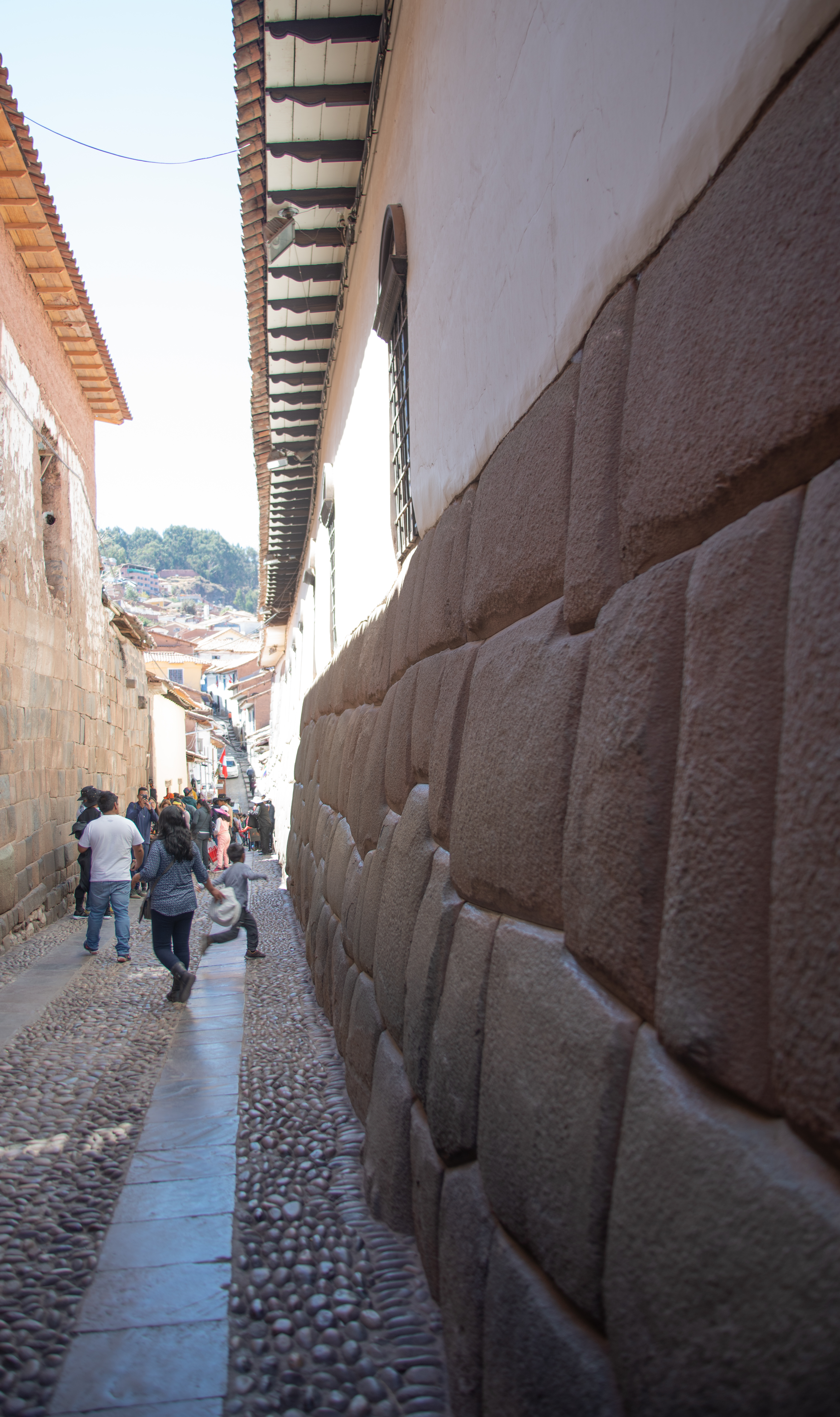 We did also go by the 12 Angled Stone. This is part of an Incan stone wall that remains in Cusco, currently integrated into the wall of the Palace of the Archbishop of Cusco. One of the stones is cut to fit into a specific spot and has 12 angles to it. The entire wall itself is impressive. Despite how my pictures look, the area was crowded and we did not go and find the specific stone and were content with the wall.
