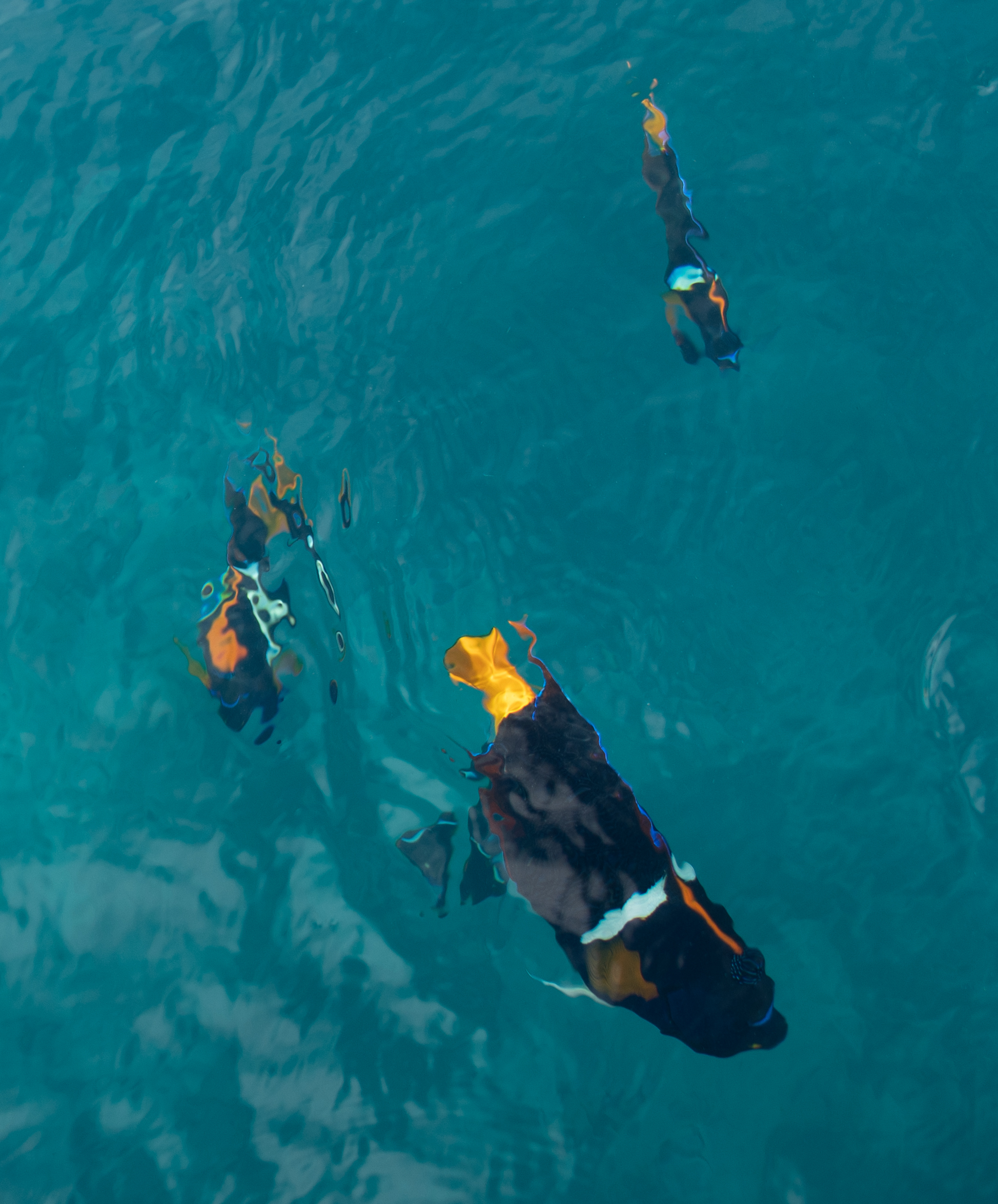 Fish eating lunch scraps off the side of the boat