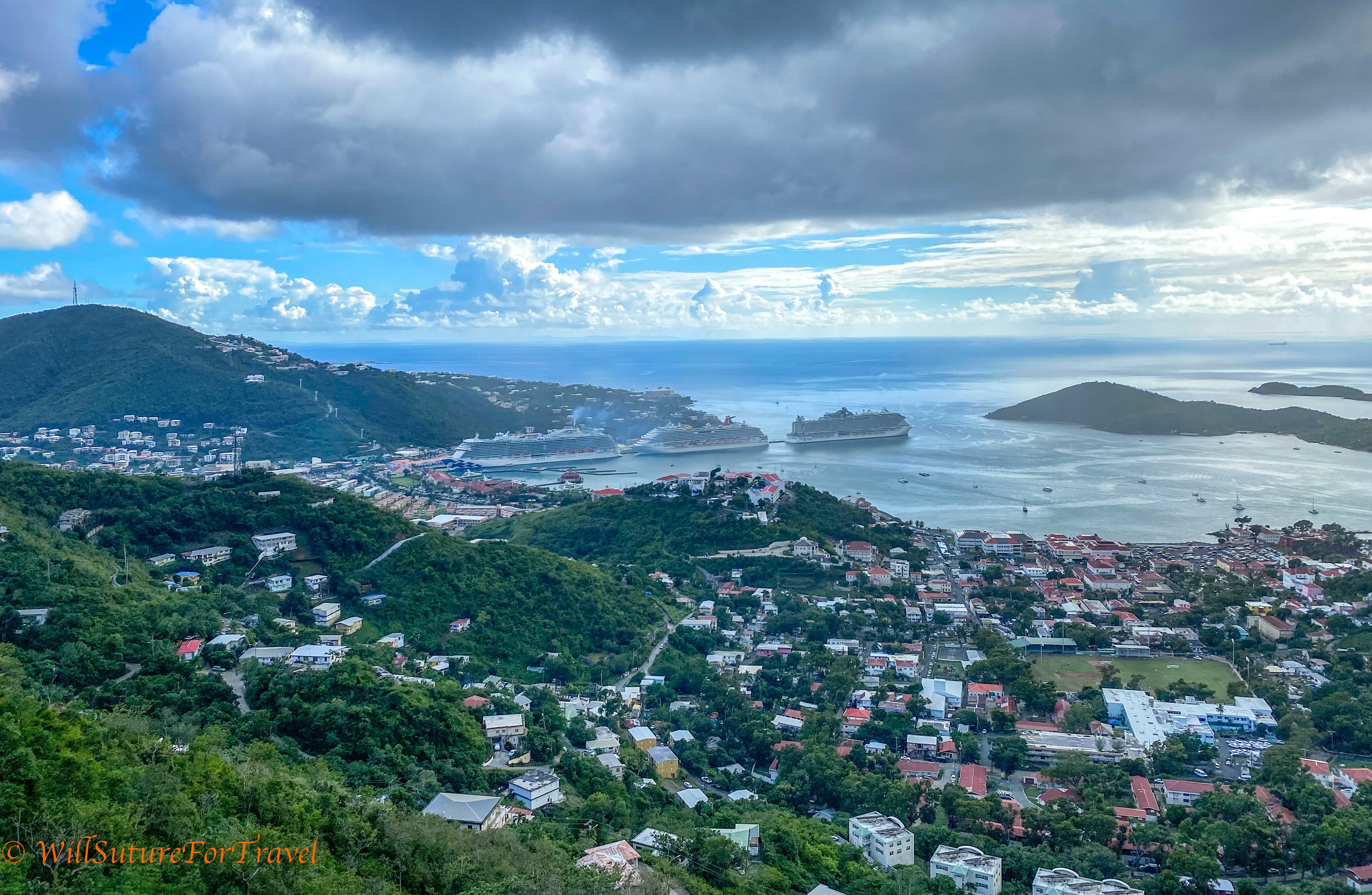 We are on a short Caribbean cruise and spent today in the US Virgin Islands on St Thomas. We spent the day snorkeling and taking a quick tour of the island. We have been here once before on another cruise. We went diving then but didn’t see any of the island. Since Paul recently had elbow surgery we decided not to dive. Also, I haven’t had a chance to see how my foot and ankle do with fins since I had my fracture, so that also figured into the equation.
