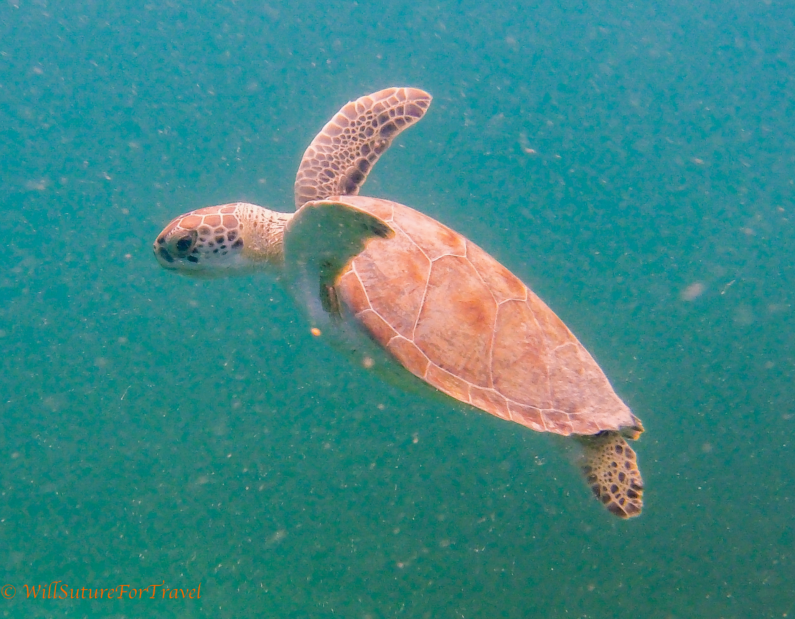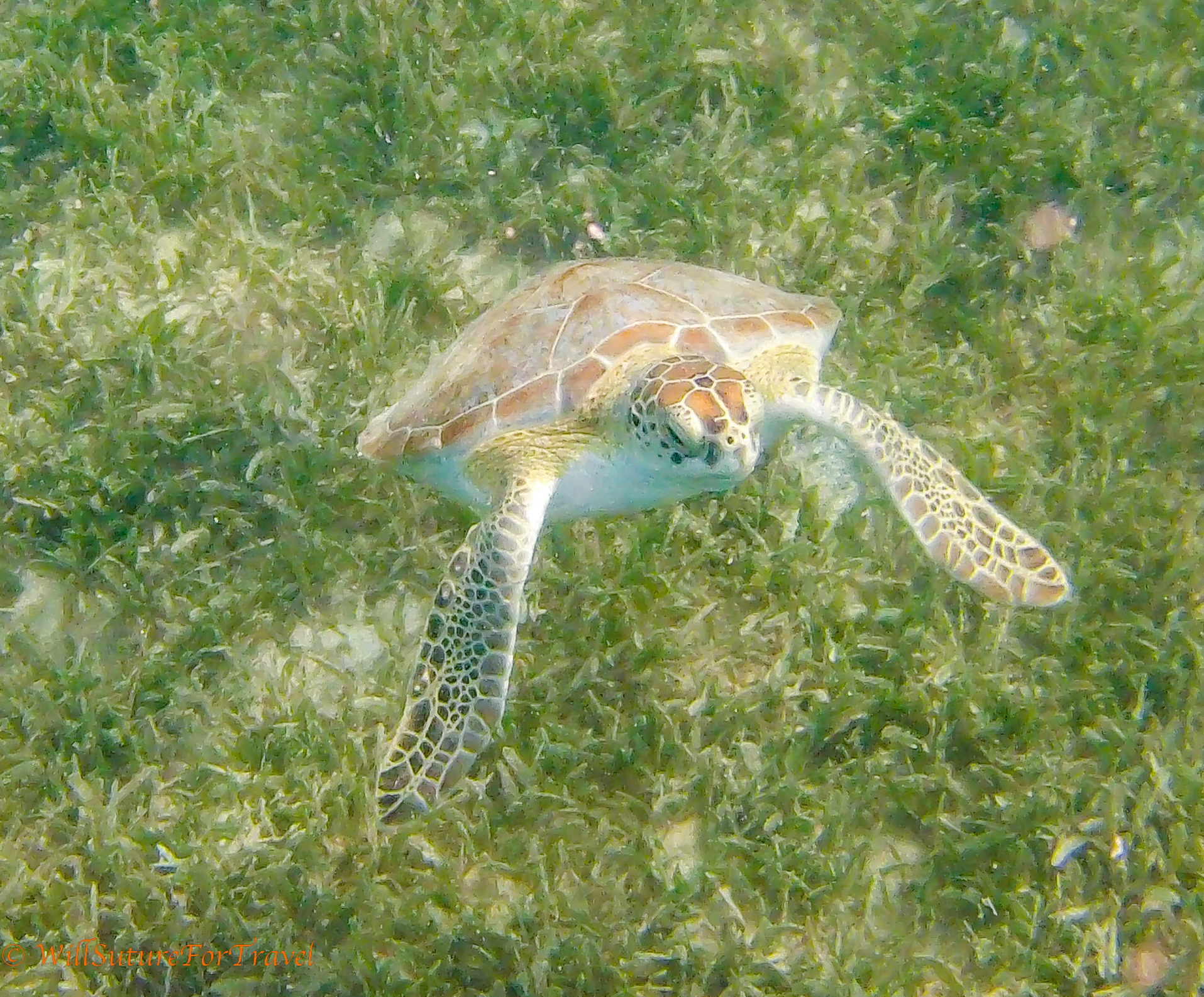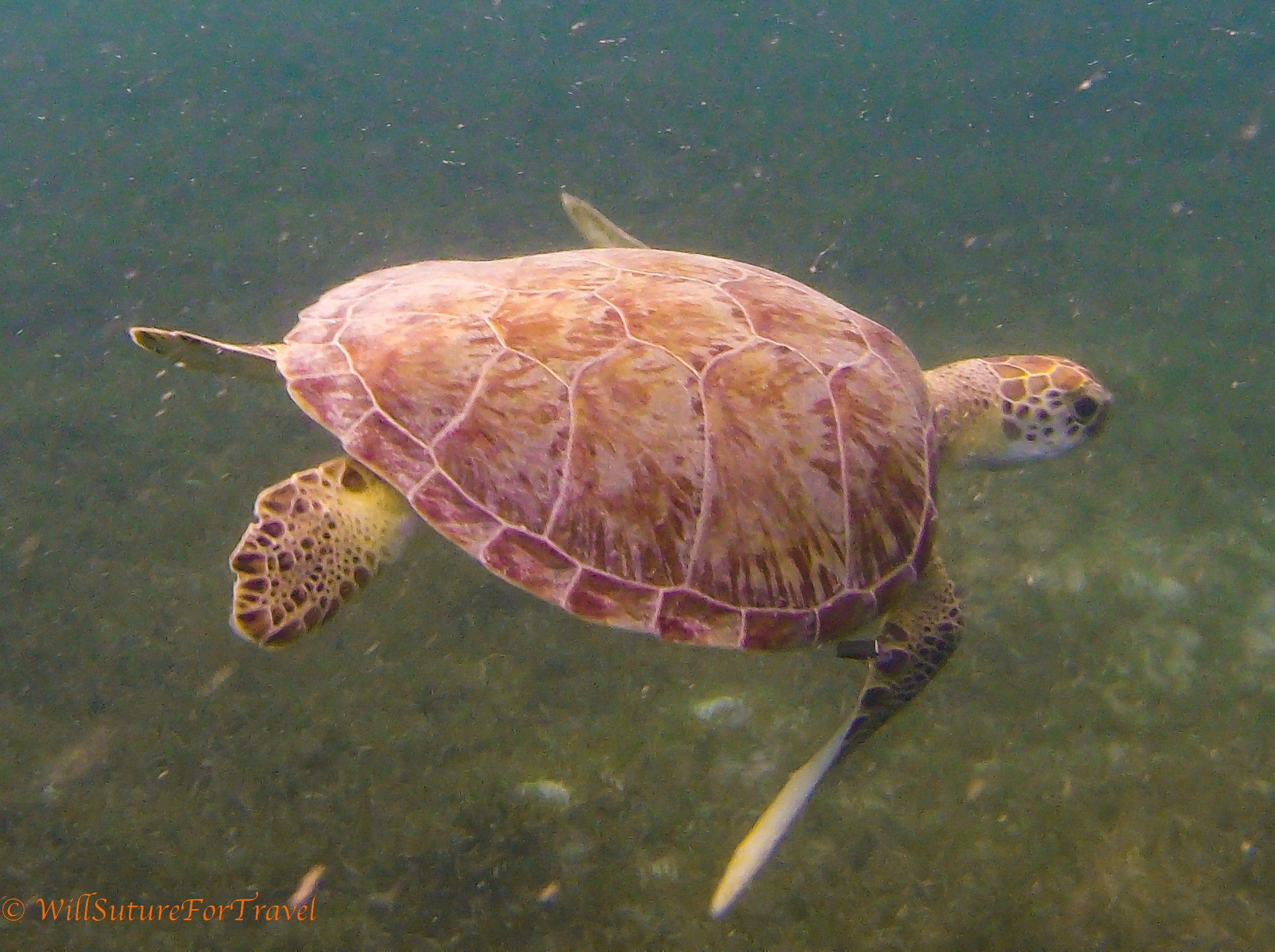 We spent the morning snorkeling in an area known for green sea turtles. It did not disappoint! We managed to see some other critters as well, most notably 2 large octopi. (both snoozing under rocks) We later went to snorkel in another area in hopes of seeing a hawksbill turtle, but no luck there. We did a little driving tour of the island and made it back to the ship. Overall it was a nice day in the water, even if it was on the surface, and exploring bits of the island.