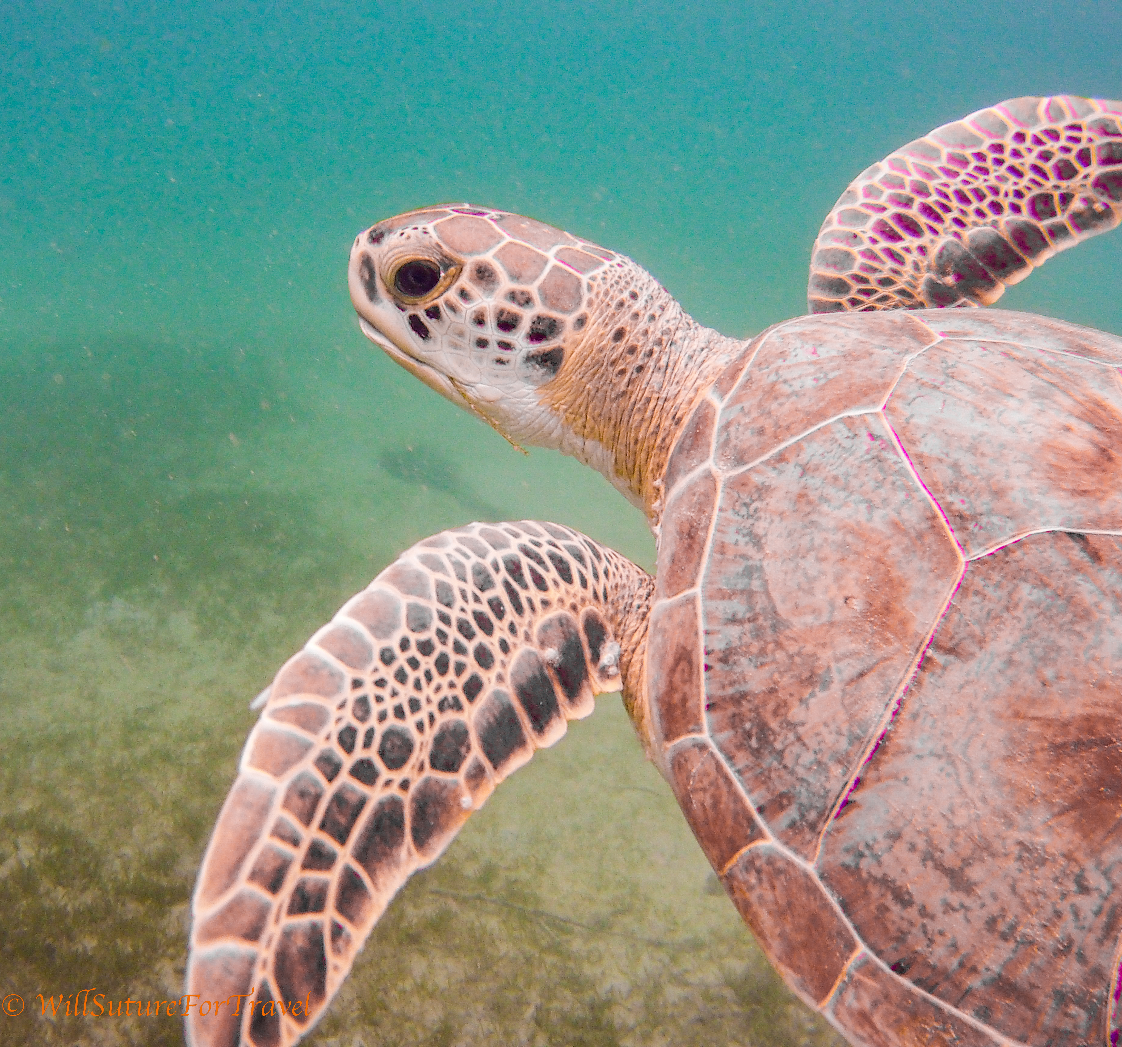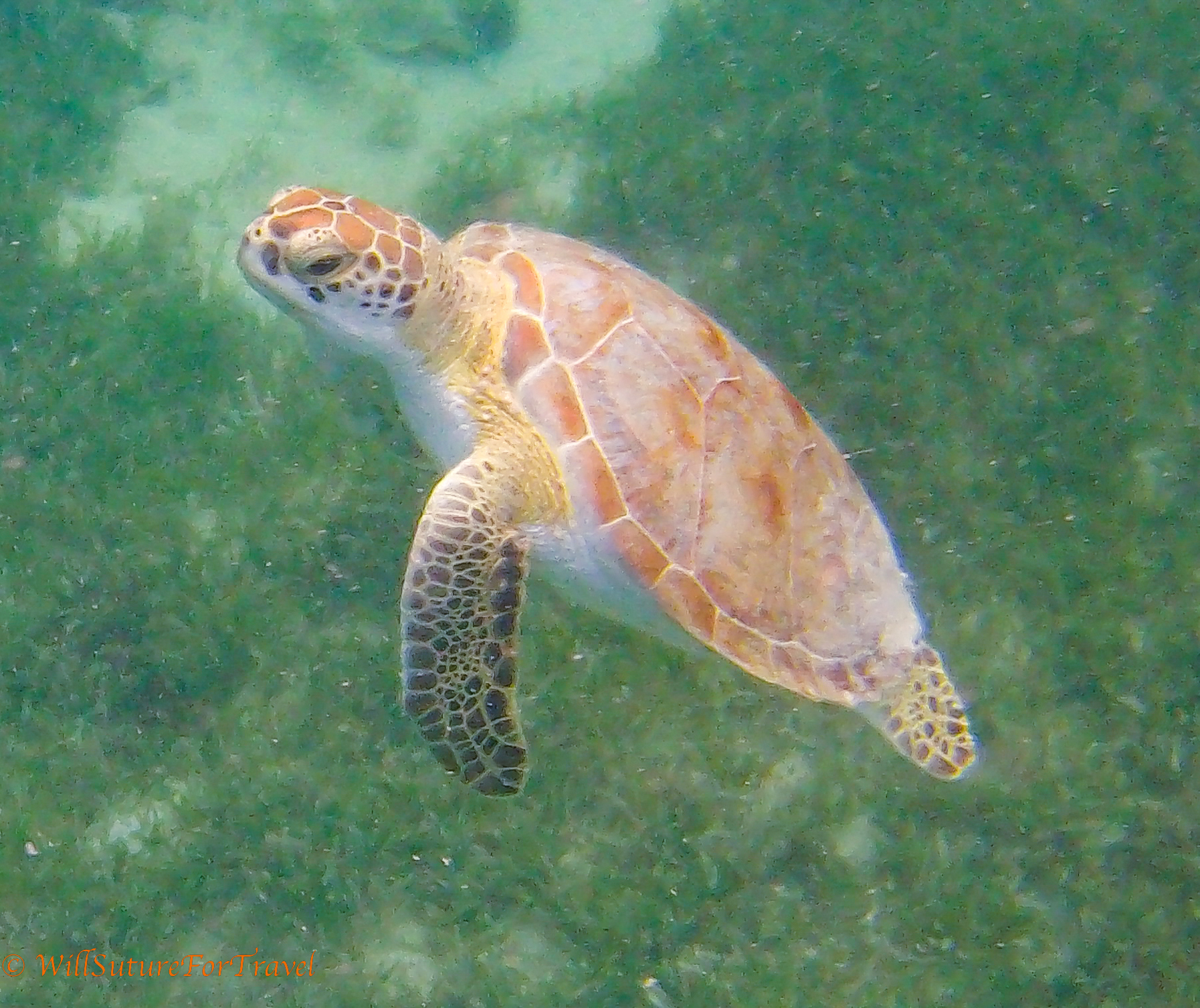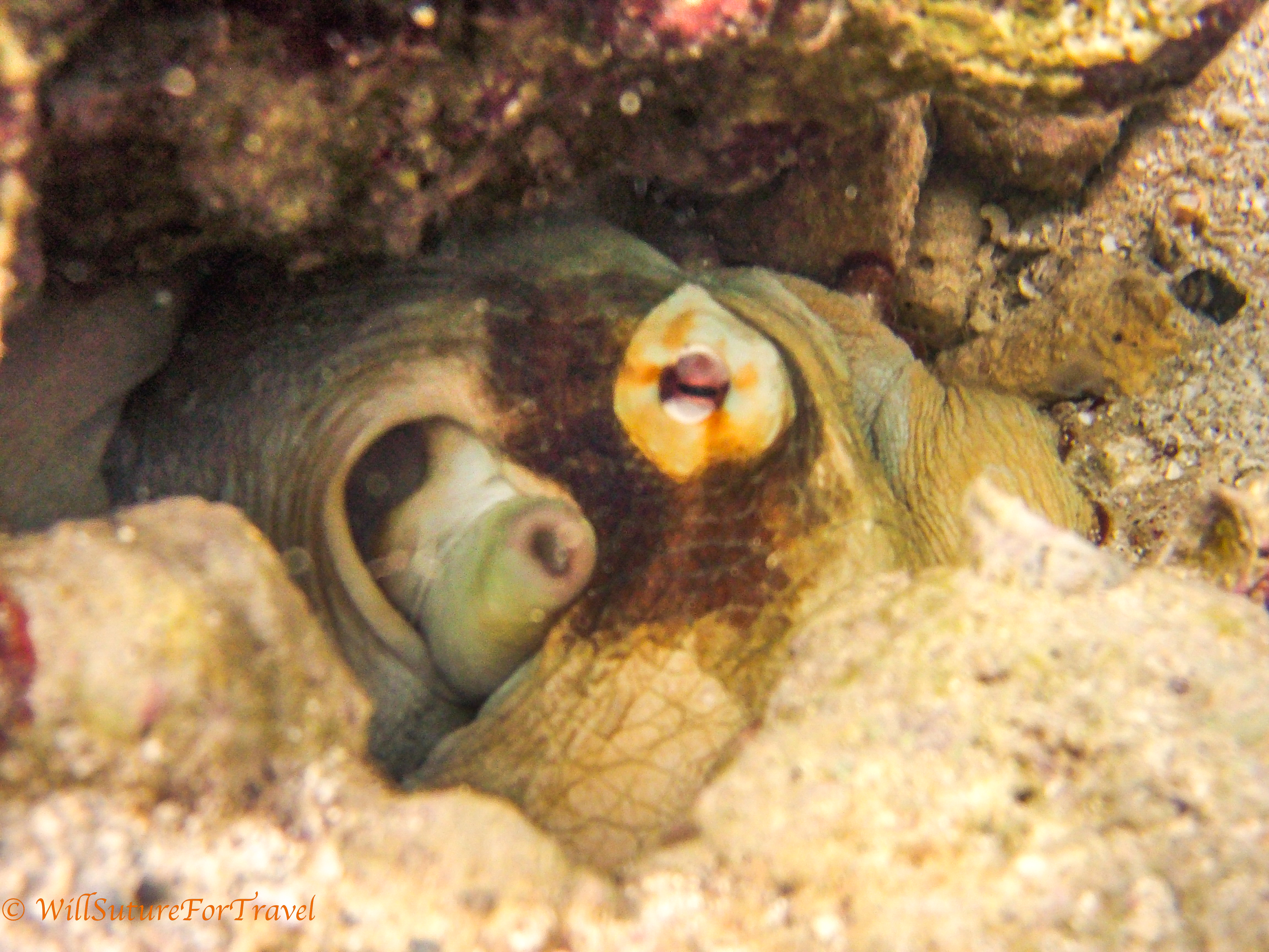 We spent the morning snorkeling in an area known for green sea turtles. It did not disappoint! We managed to see some other critters as well, most notably 2 large octopi. (both snoozing under rocks) We later went to snorkel in another area in hopes of seeing a hawksbill turtle, but no luck there. We did a little driving tour of the island and made it back to the ship. Overall it was a nice day in the water, even if it was on the surface, and exploring bits of the island.