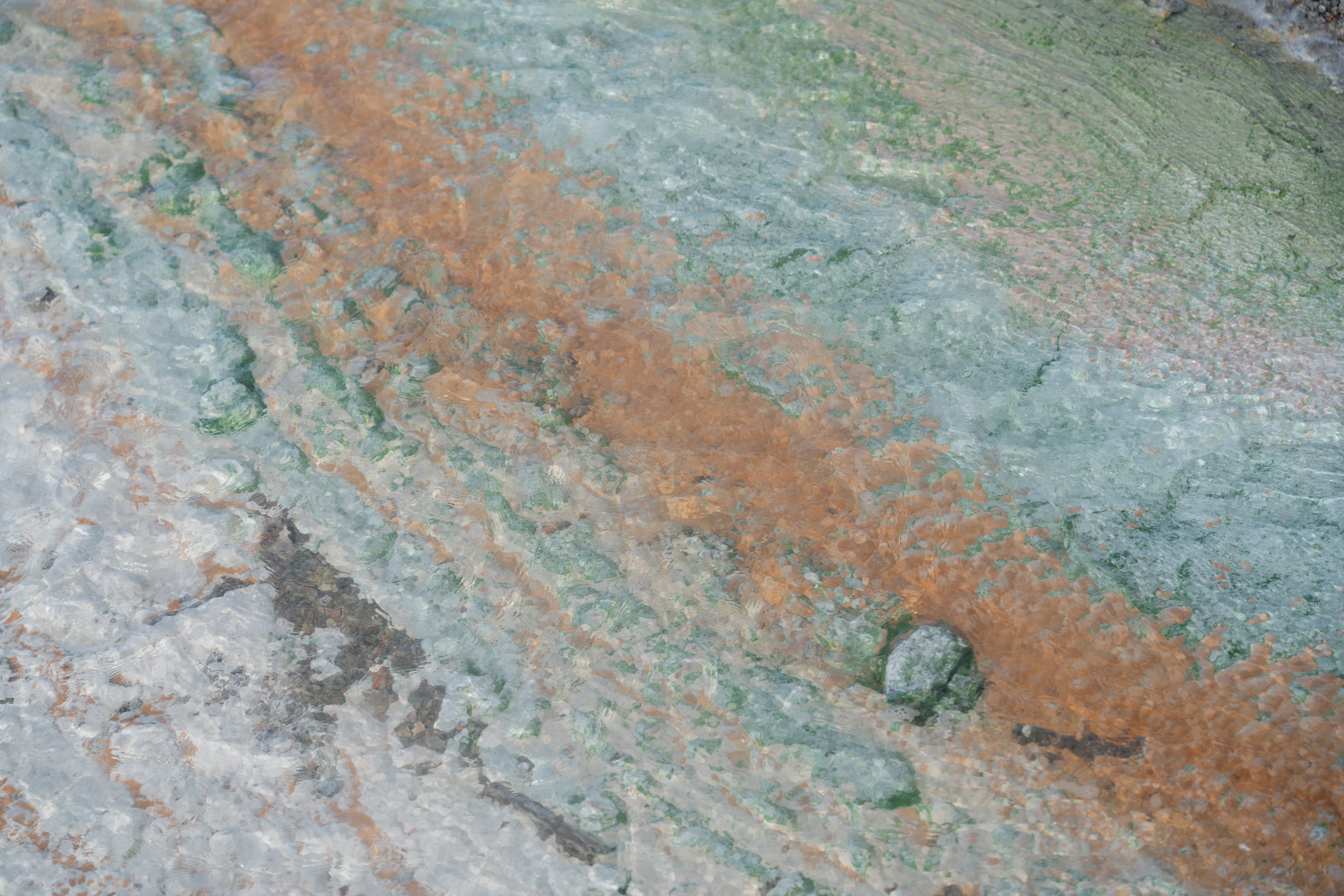 sampling of colors from the over wash of one of the porcelain basin geysers