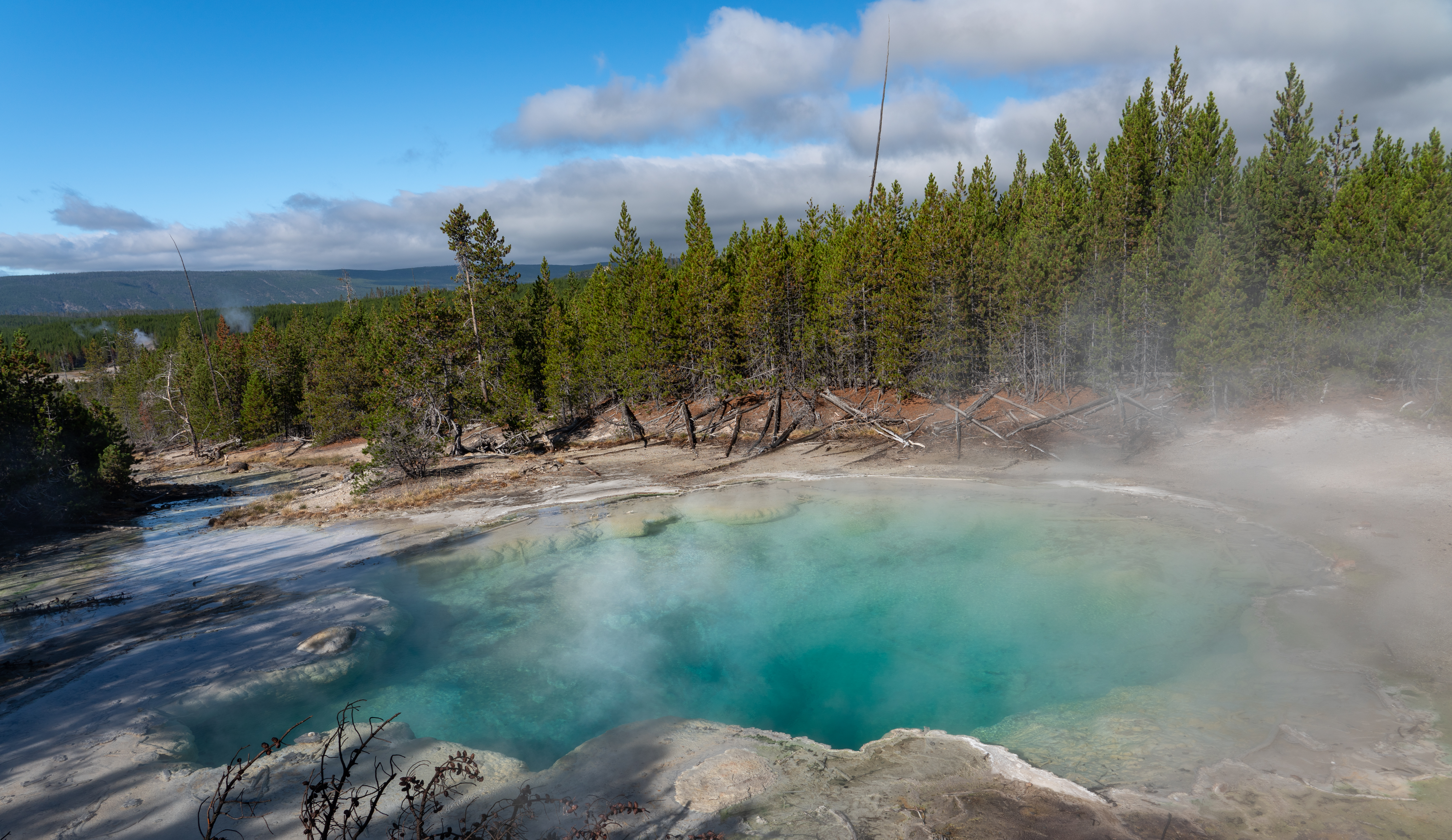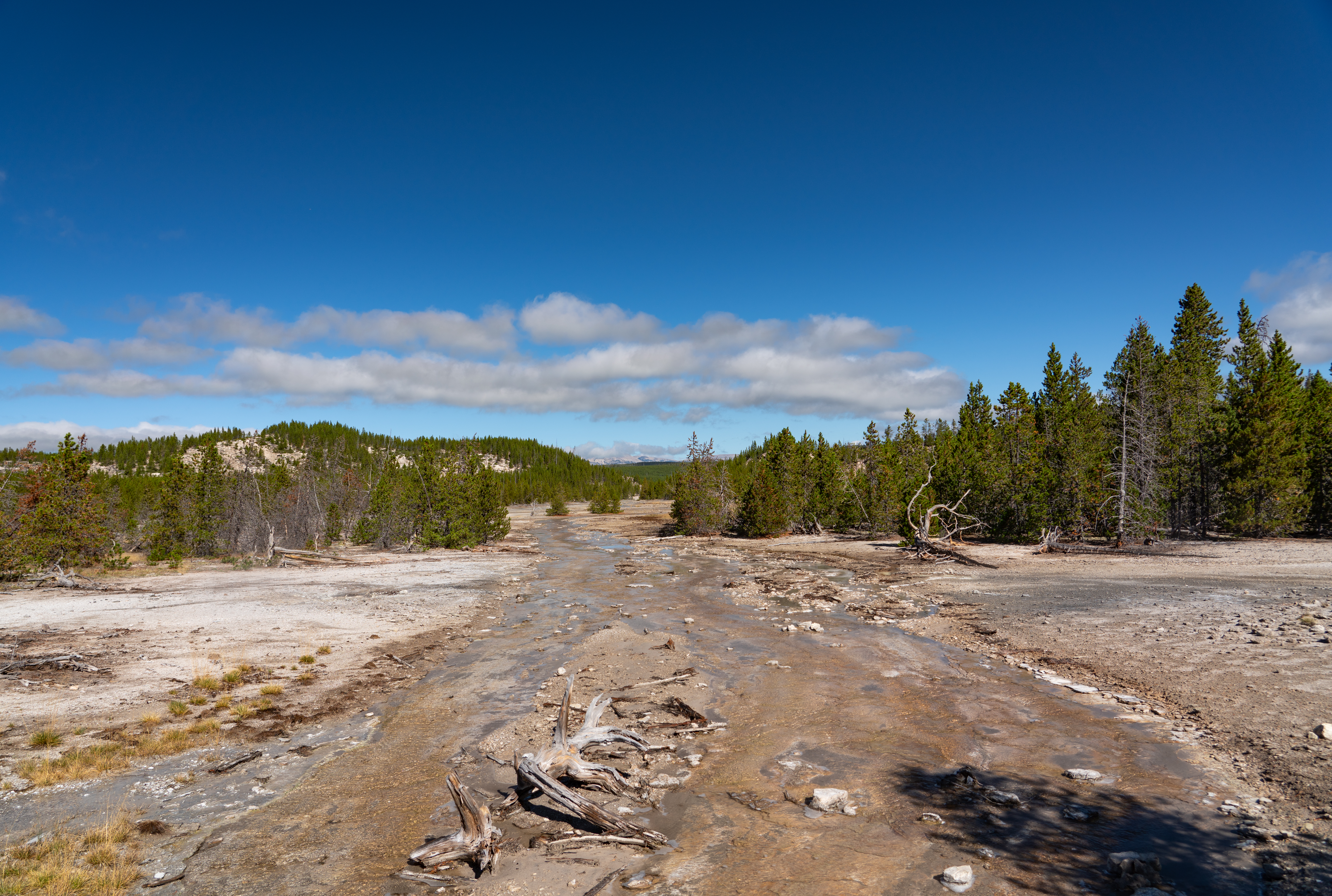 This morning we started off at the Norris Basin. This has a lower portion called the porcelain basin and an upper portion called the back basin. There is quite an elevation difference between the two. There are a lot of geysers and springs in this big basin area. Here are just a few.