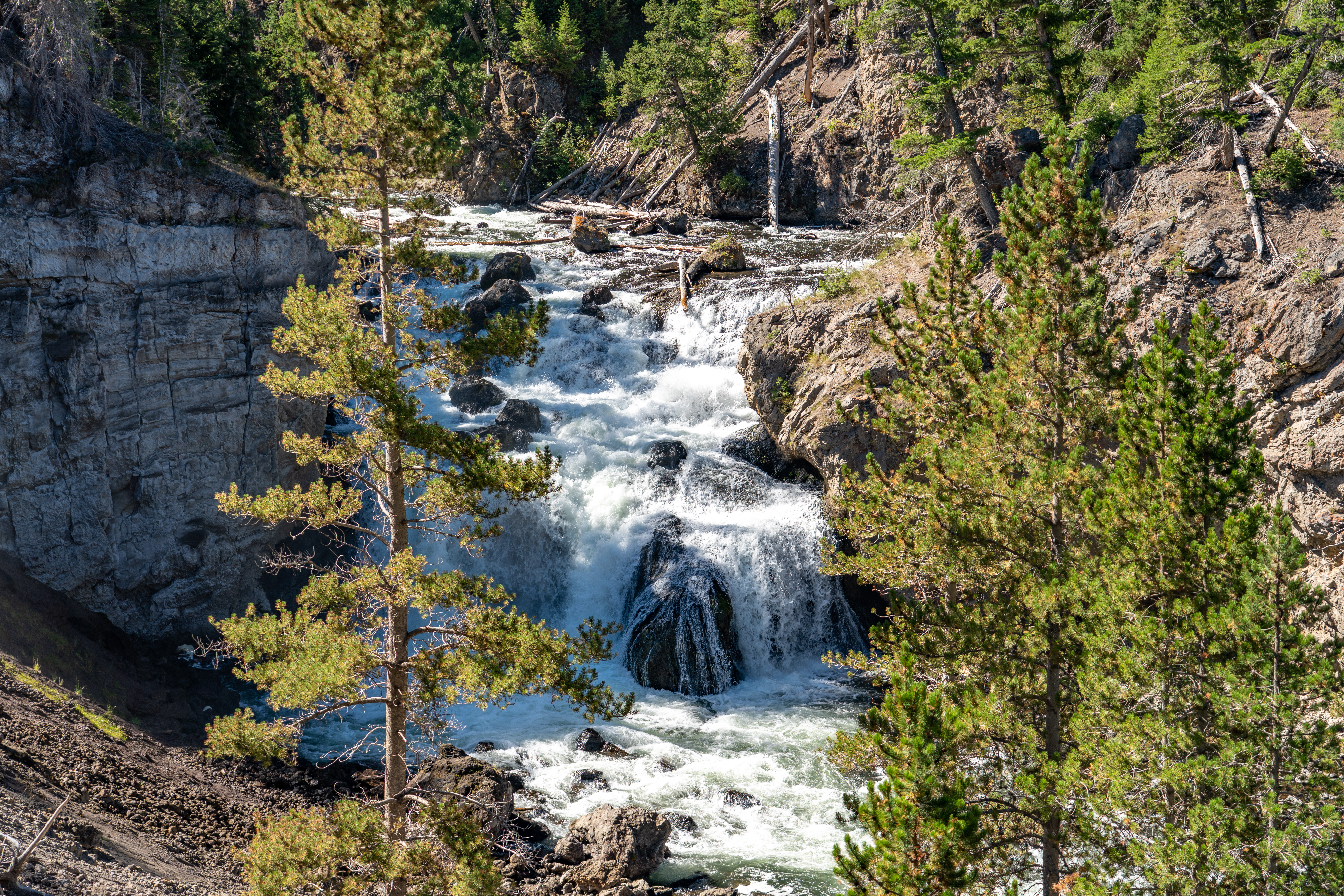 We took a side road to Firehole Falls. This was couple-mile, one-way drive with nice scenery. We took a quick stop to take pictures of the falls.