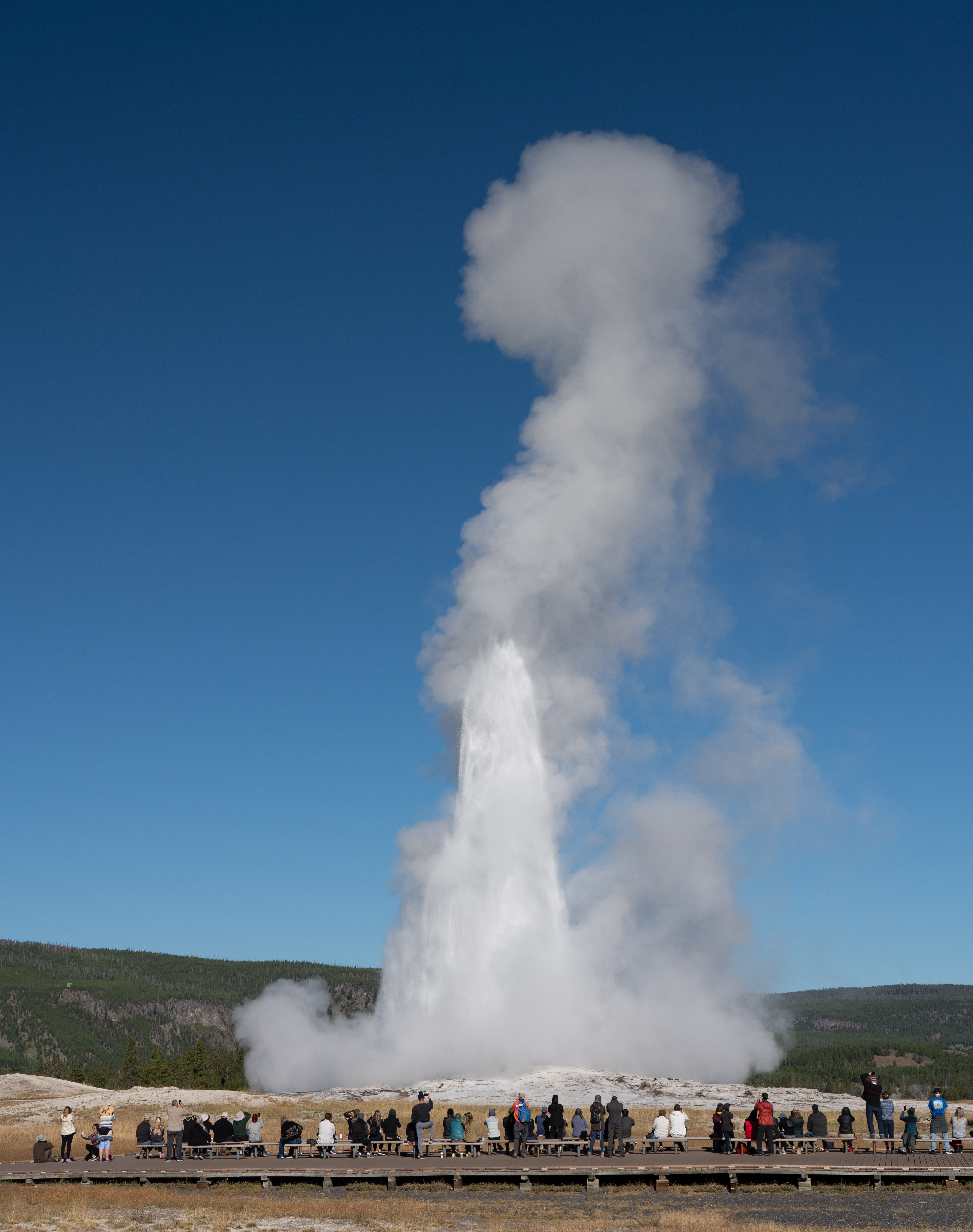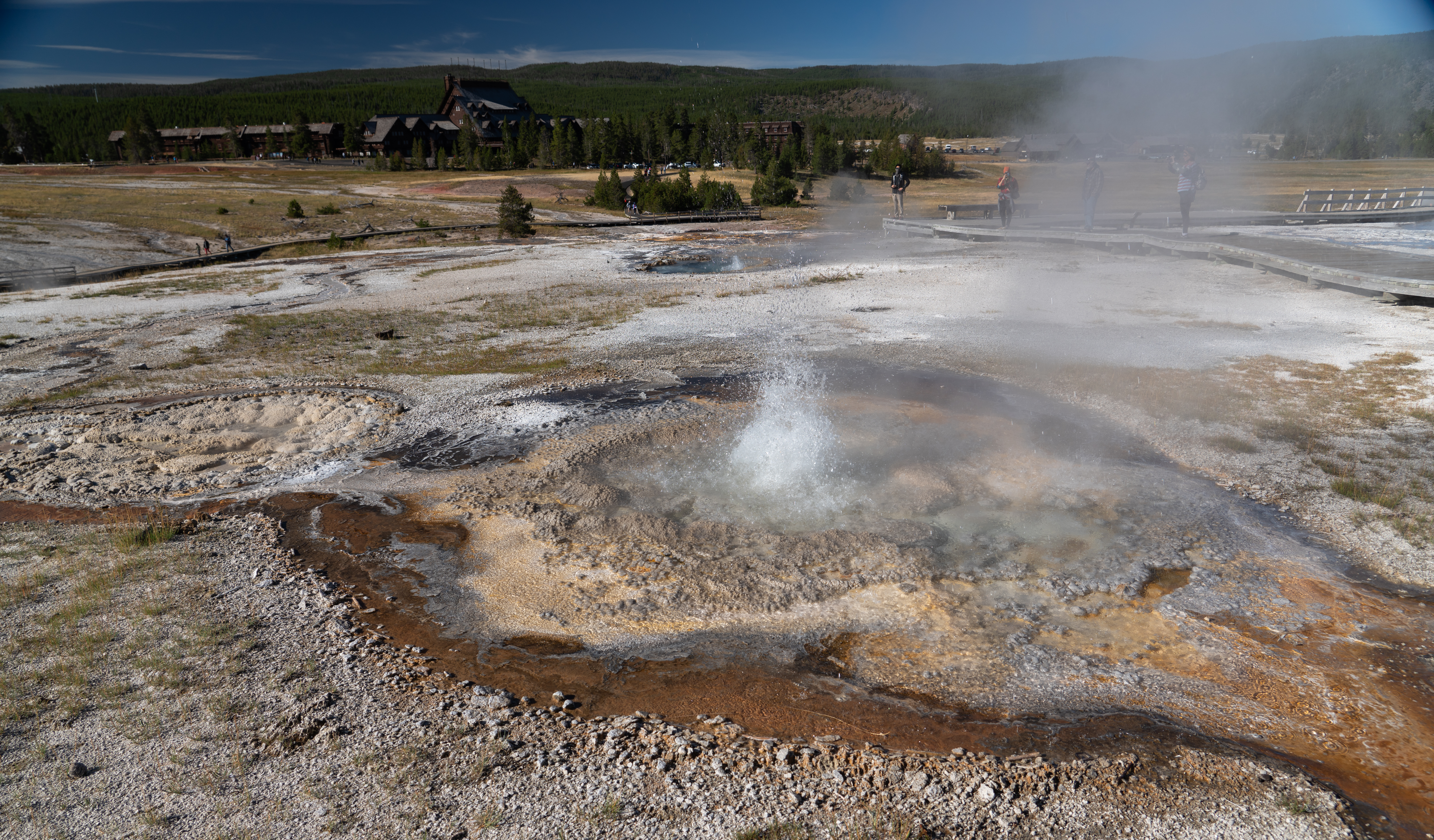 Last night we stayed at a cabin at Old Faithful. This meant that we got to eat breakfast (all take away, to be eaten outside) watching Old Faithful erupting. Not bad timing.