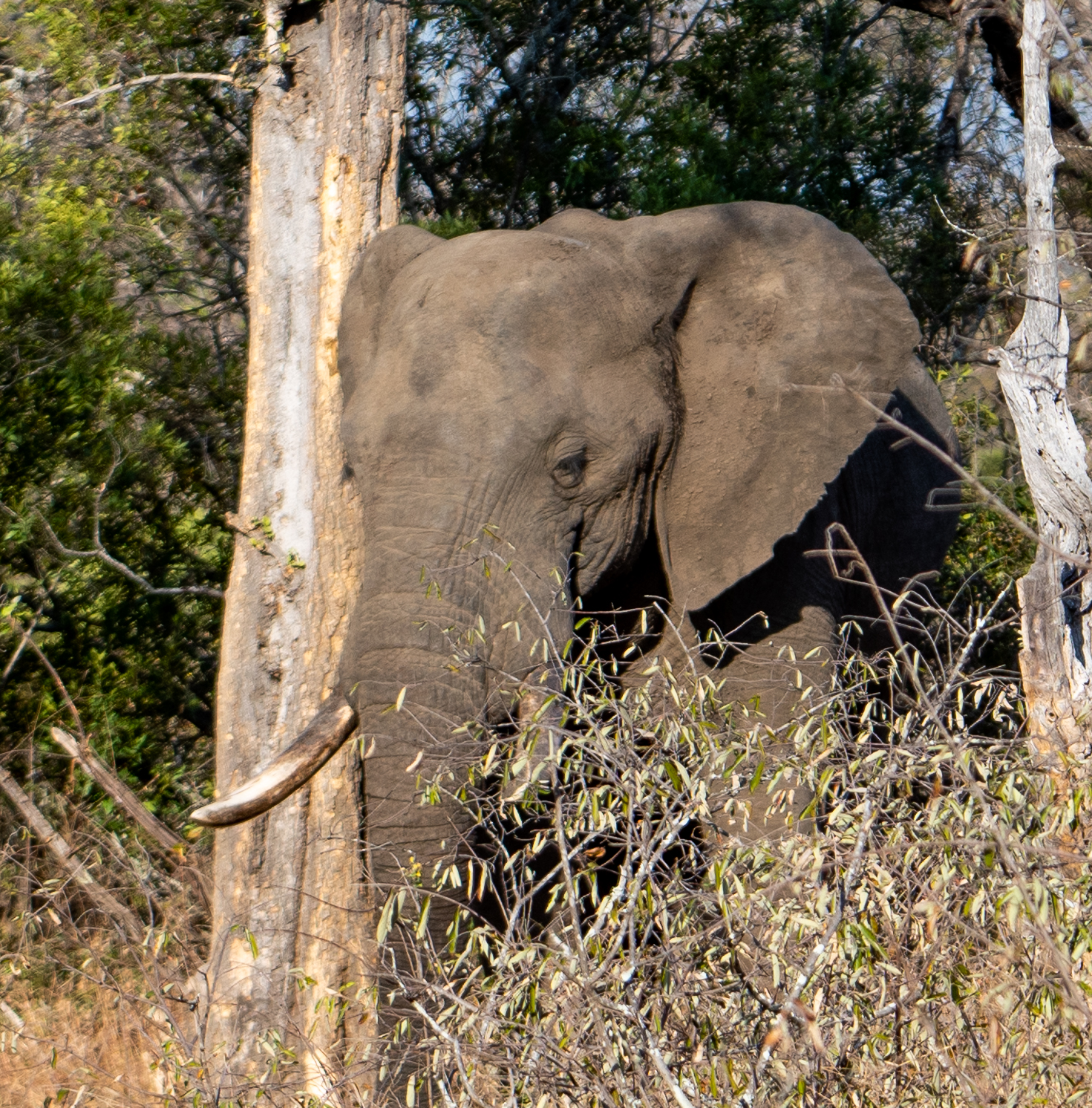 We came across a bull African bush elephant. He was busy snacking around a tree. These are the largest land mammals and they are quite impressive.
