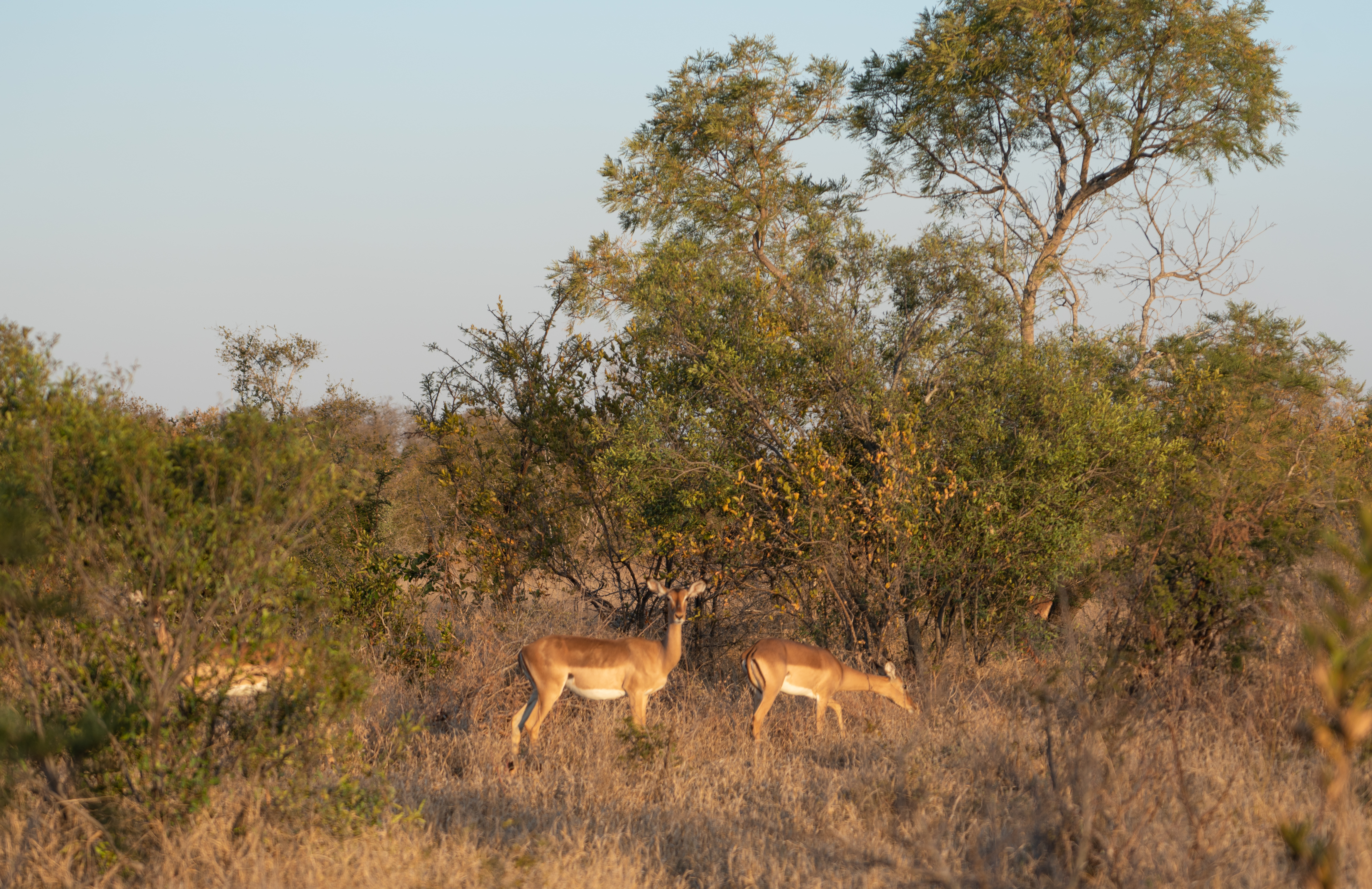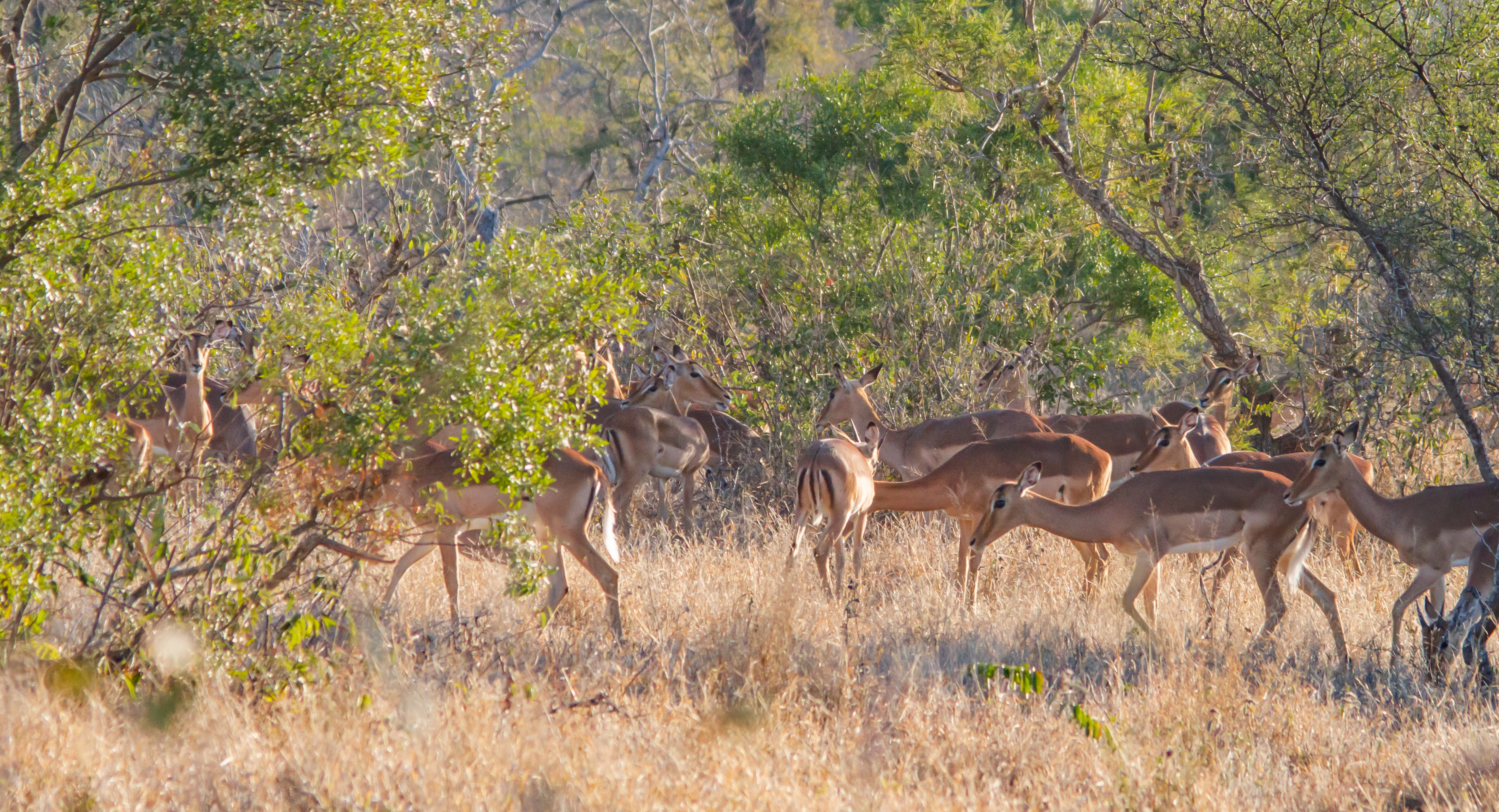 There are impala everywhere. They are like antelope and stay in groups for safety. They form harem groups with a single male and large groups of females, so you also find groups of males that have no harems.