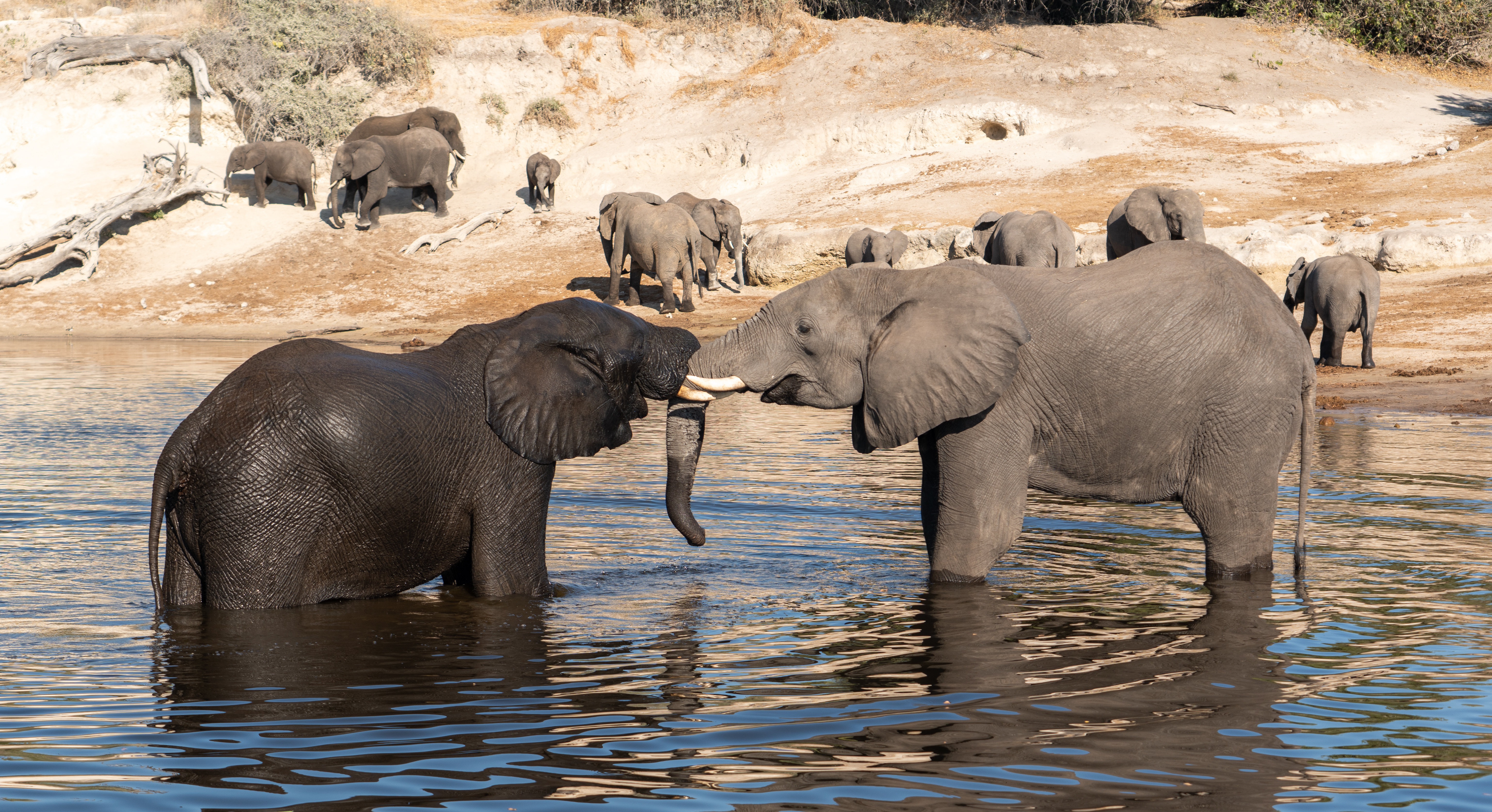 We were very content with the large group of elephants we had seen, only to be outdone by a huge group further down river. We truly lost count! This picture only represents a small portion of that herd.