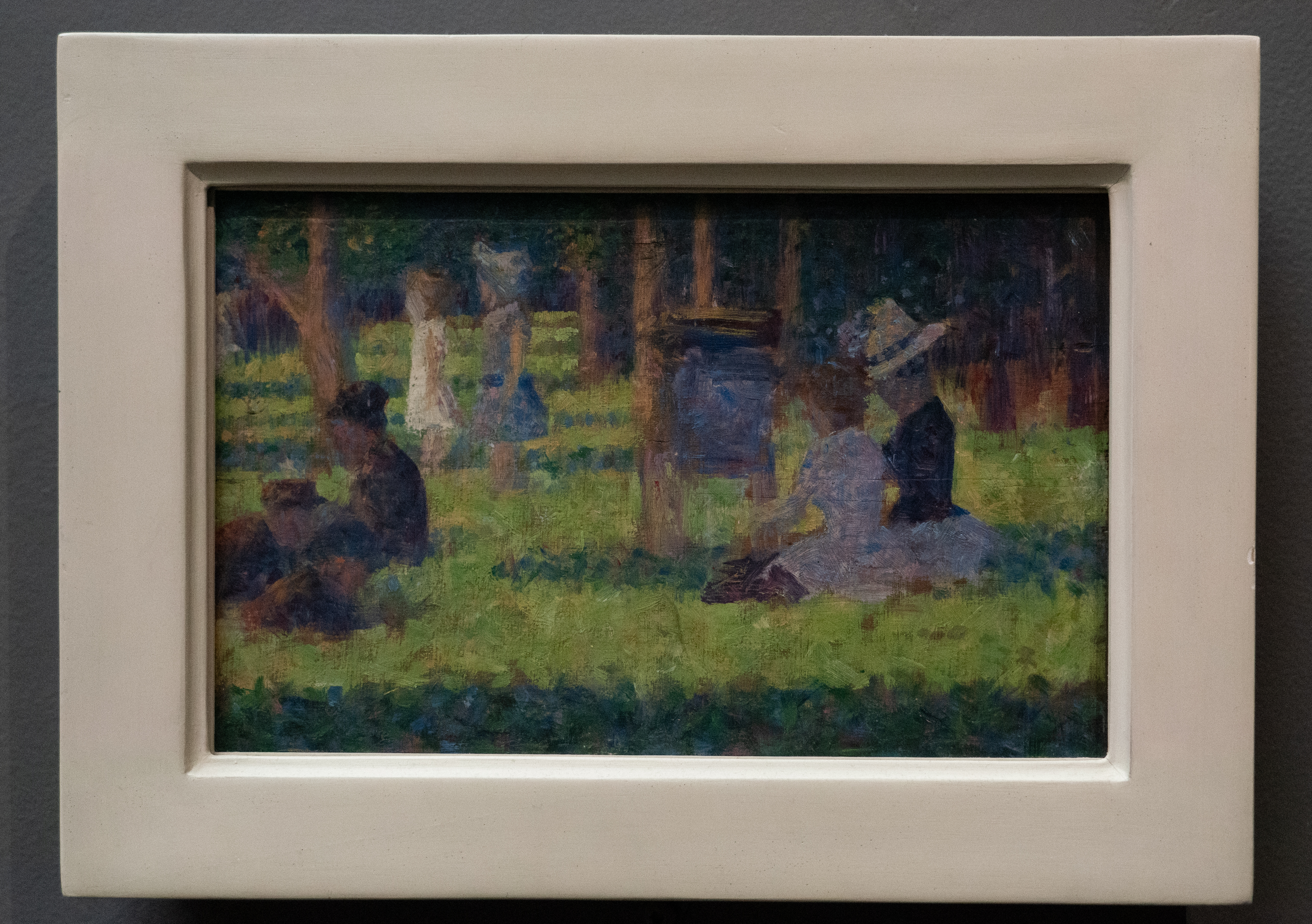 Seurat: Sunday Afternoon on the Island of La Grande Jatte. There are over 30 paintings of his with this title, one is super famous. This is not that one.