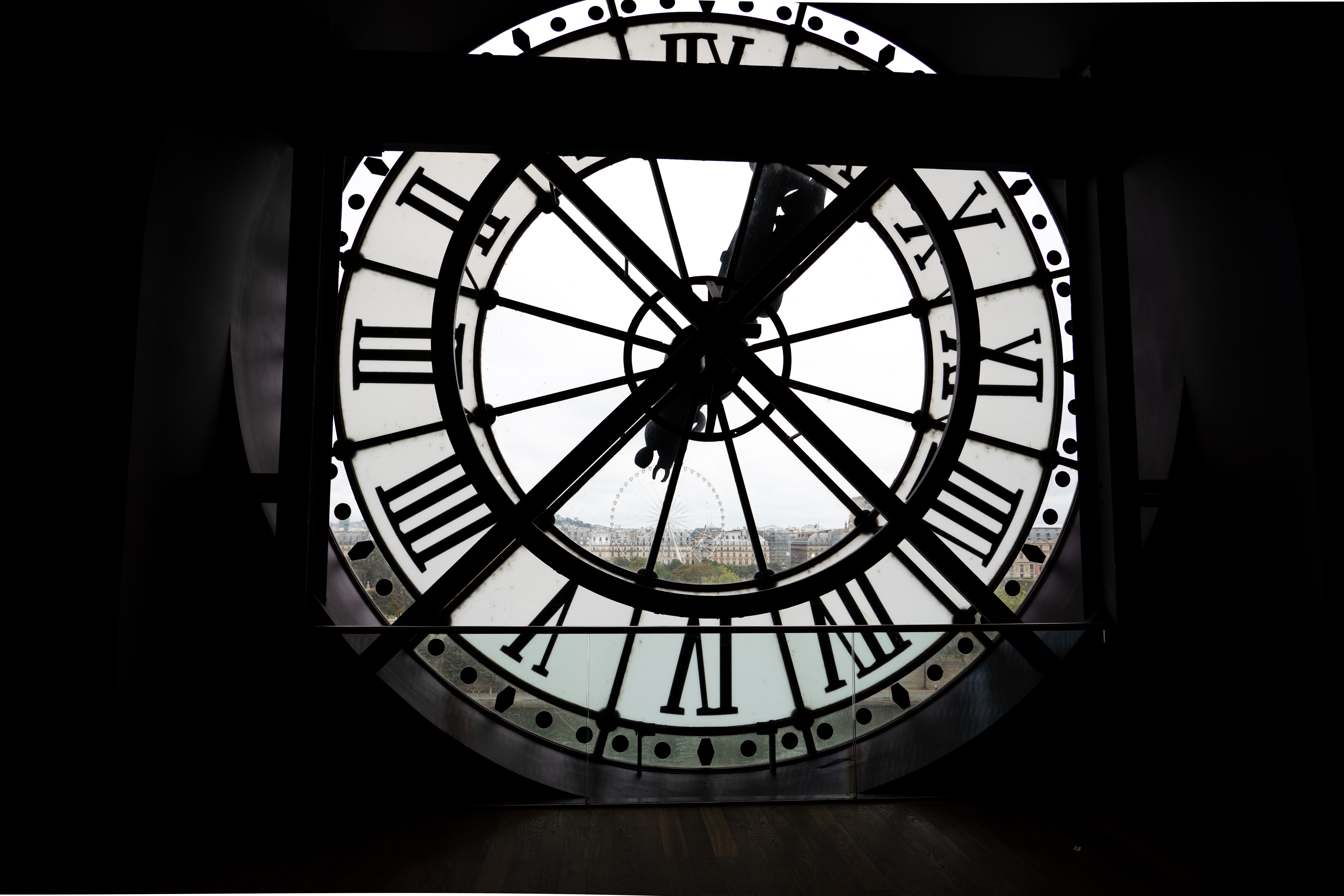 Looking out from one of the clocks. You can look across the Seine to the Touleries Garden and its ferris wheel.