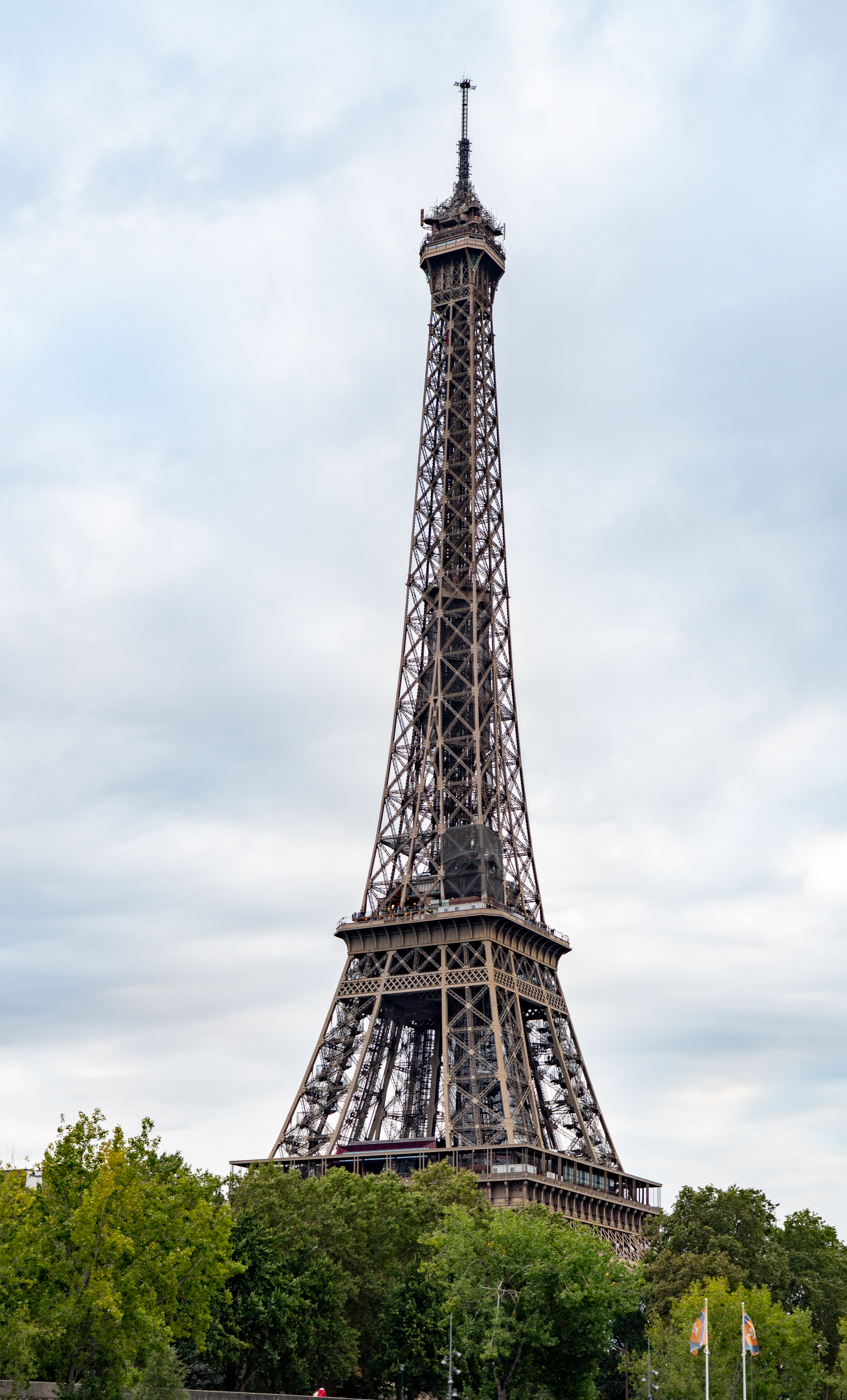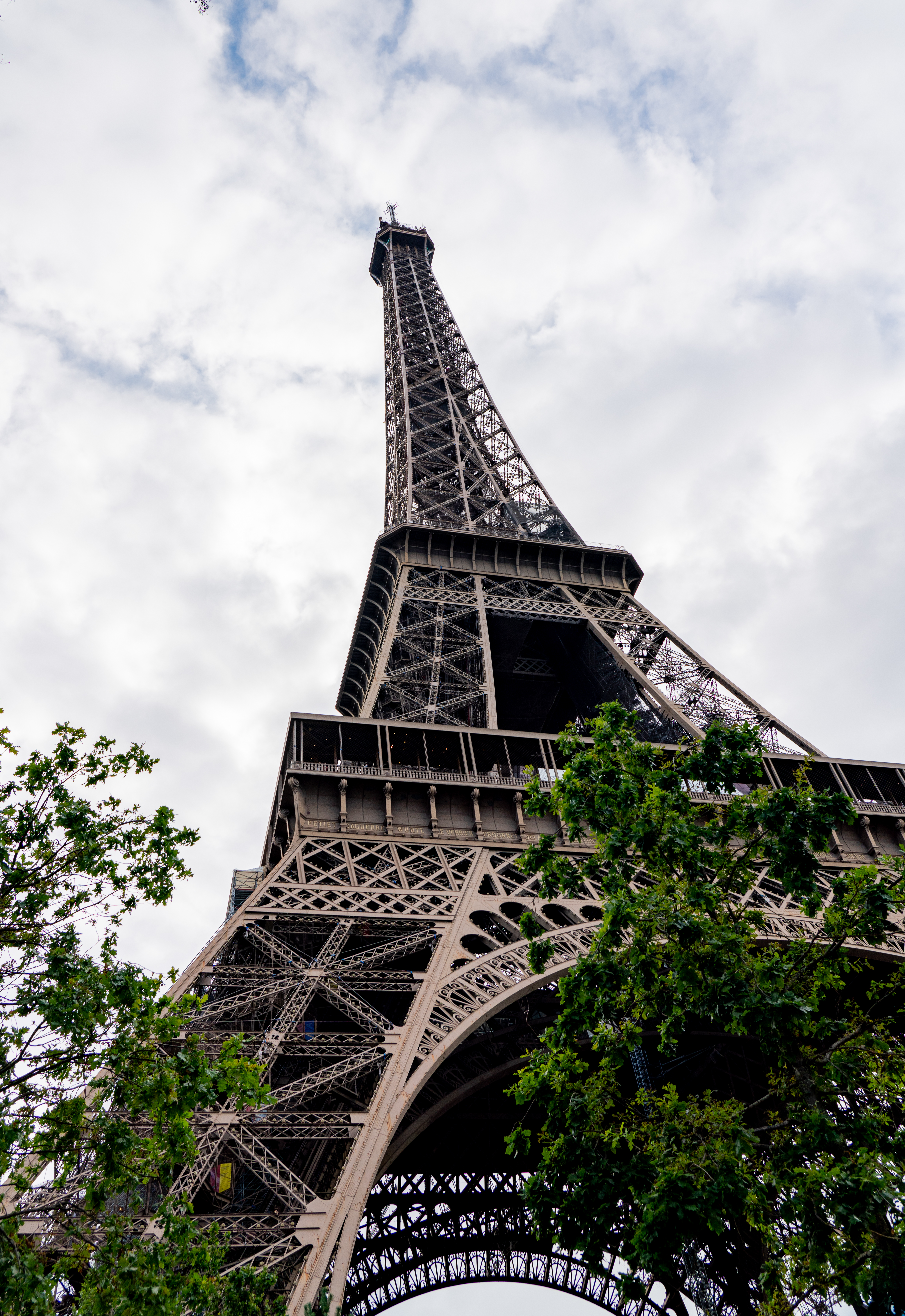 In the afternoon we went to the Eiffel Tower. The Eiffel Tower was built from 1887-1889 for the 1889 World’s Fair. At the time, it was the world’s tallest man-made structure at 1063 ft, a record it held for 41 years. The tower was originally painted red and has been a few other colors. It is currently being repainted for the 20th time. The name of the current color going on is Eiffel brown, as it is apparently the preferred color of Gustave Eiffel. The tower is not a single shade, but is darkest at the base and lightest at the top, with a middle shade in between. Apparently this helps the aesthetics.