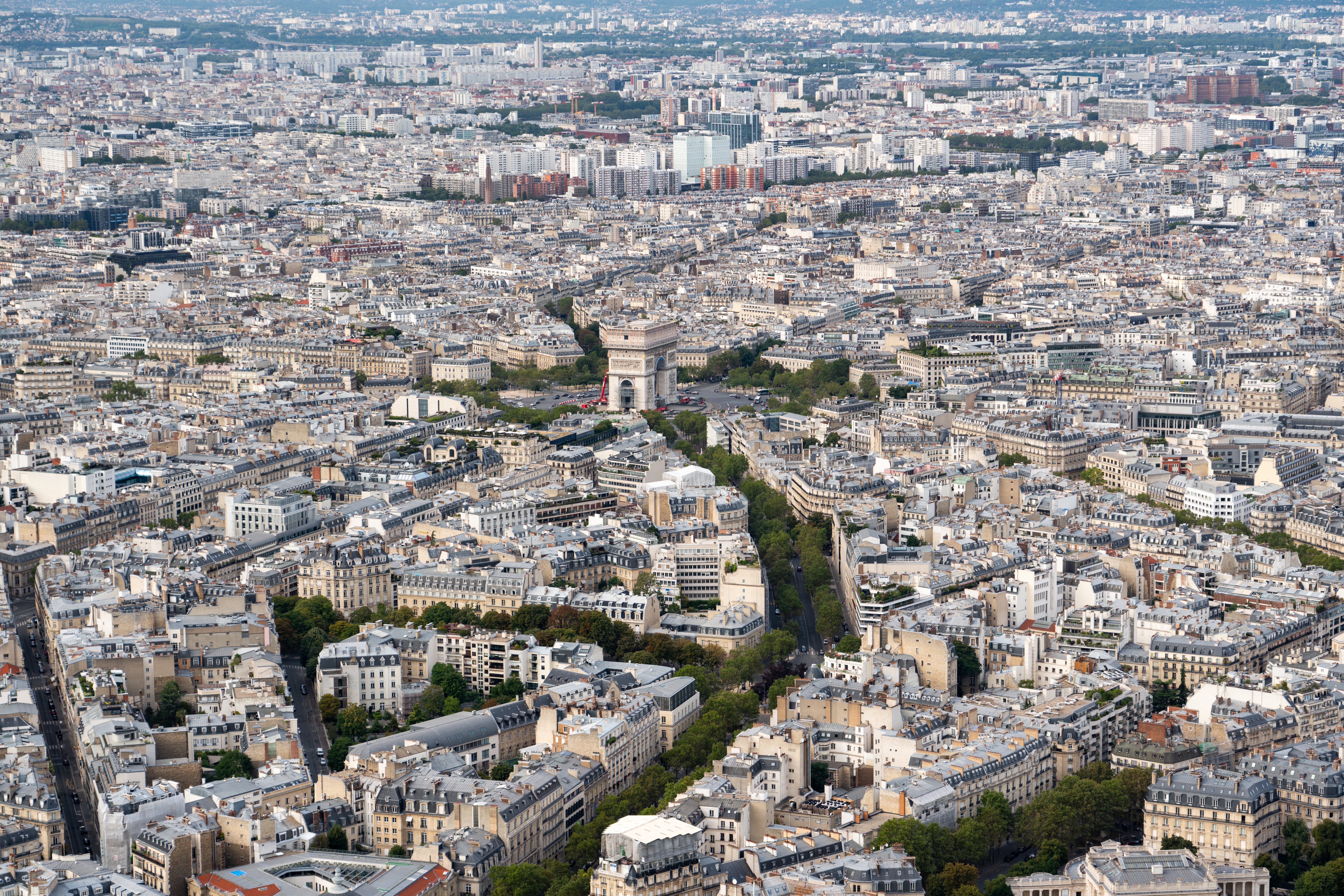View from the top. You can see the Arc de Triomphe in the center.