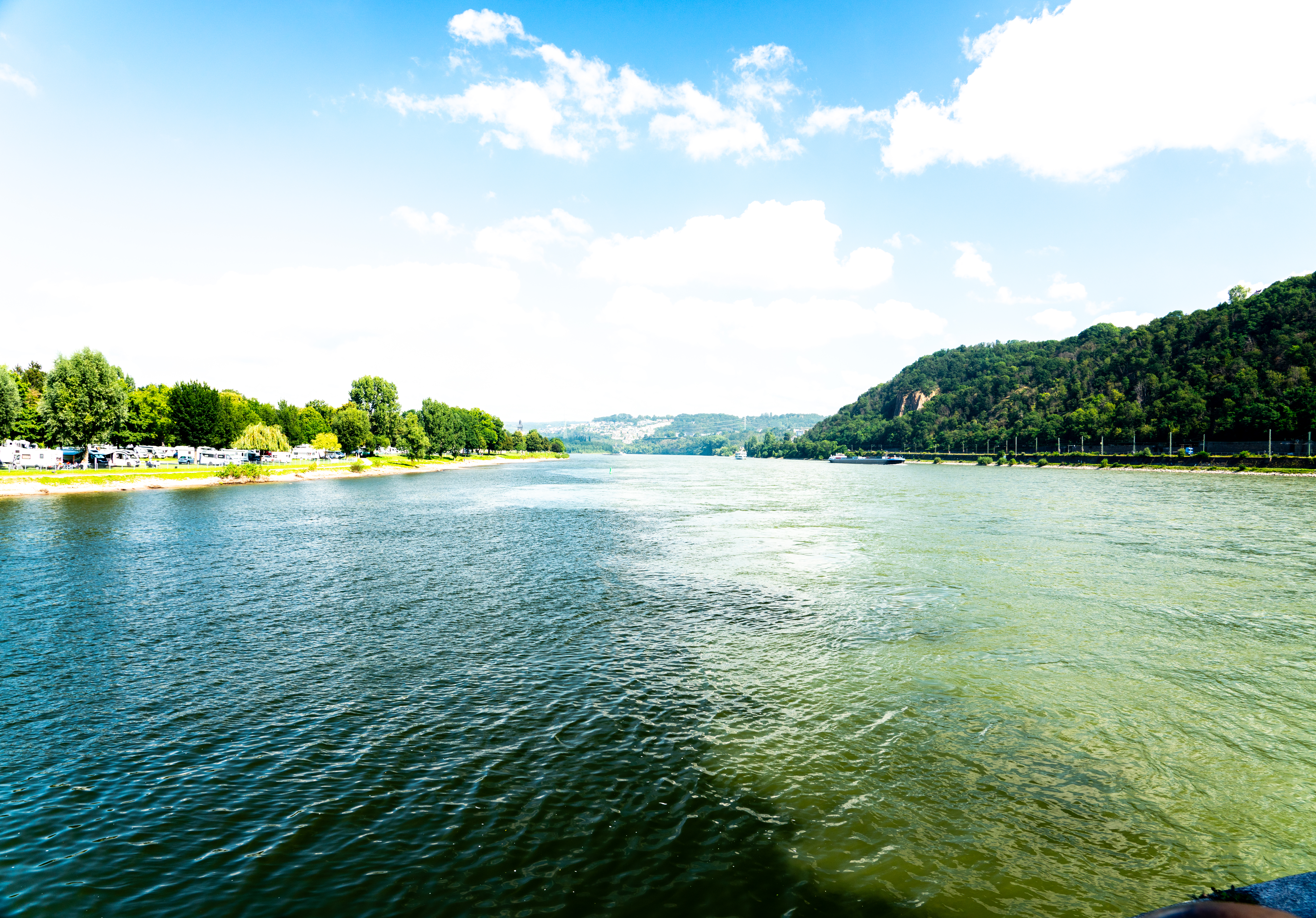 We had a little bit of time in Koblenz. We walked to the point where the Moselle River and Rhine River meet. Koblenz actually means confluence for the fact that these rivers meet here. The actual confluence point is called German Corner.