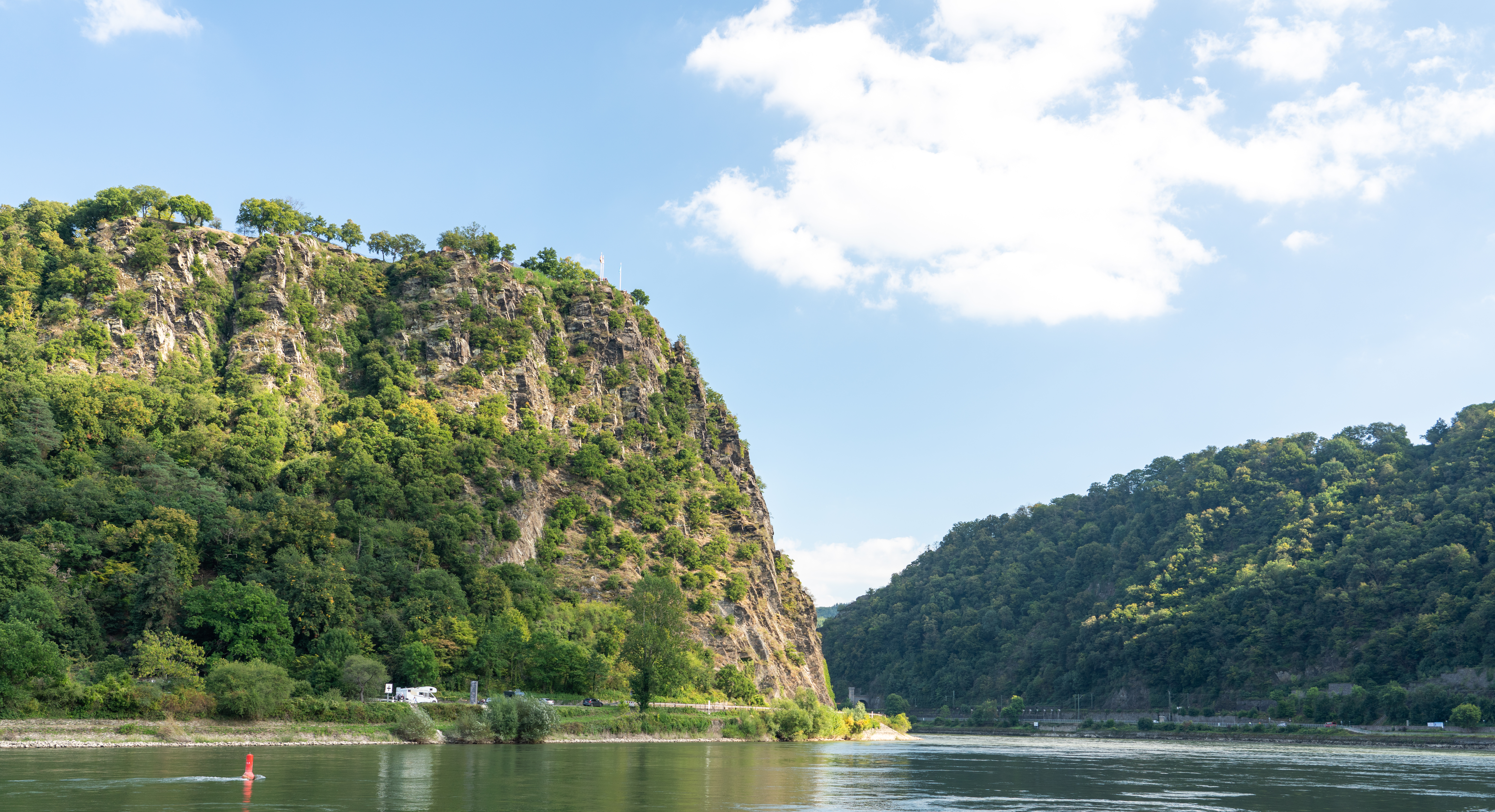 Historically there were a lot of boating accidents in this area of the Rhine. Lore is that fishermen passing below this rock formation (Loreley Rock) would be so fascinated by the lovely maiden, Loreley, combing her hair on the cliff top, that they would neglect to watch out for the treacherous rocks and strong rapids and drown. A statue was made to represent Loreley in 1983 and is near this site.