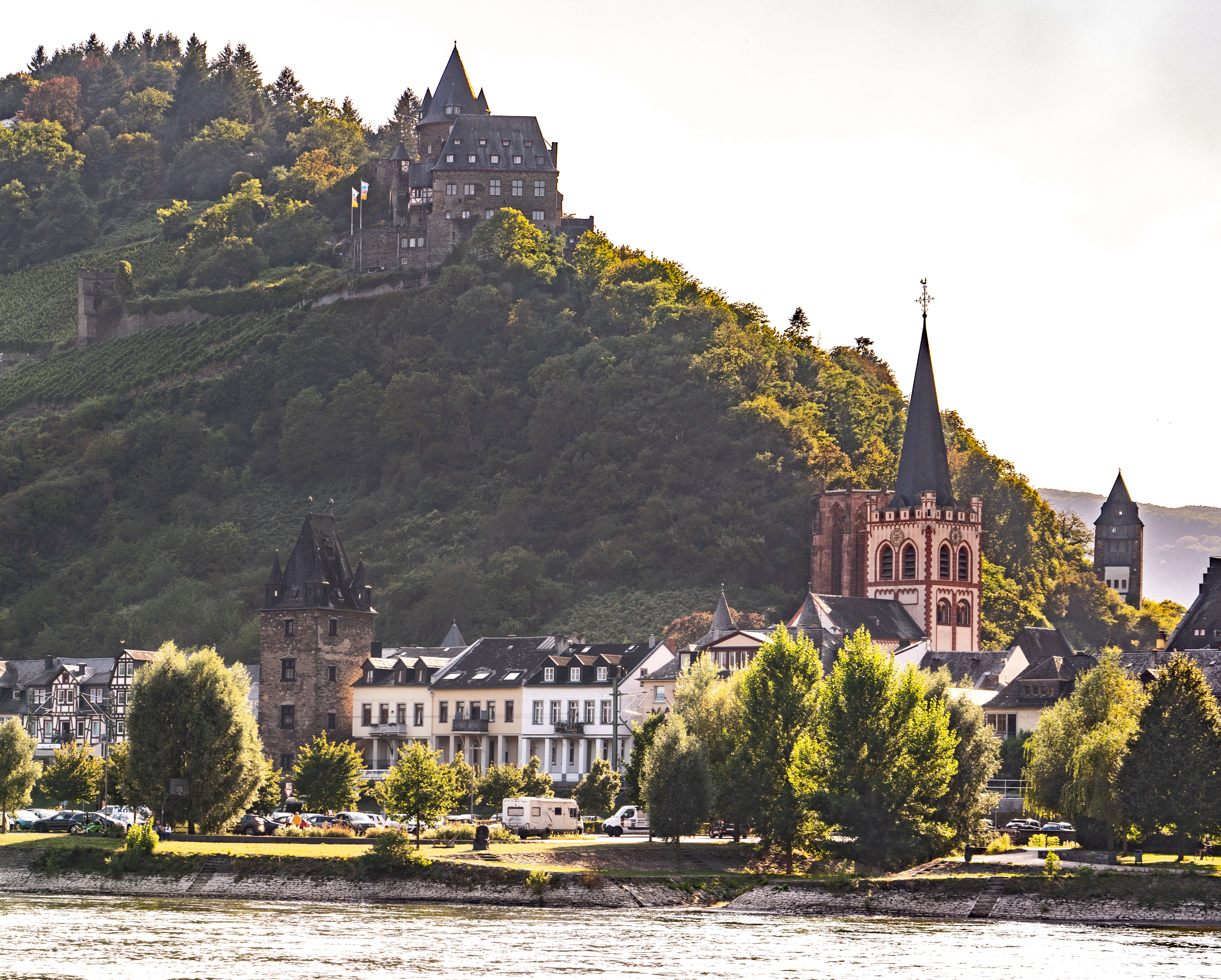 In the afternoon we cruised the Upper Middle Rhine Valley. This area is a UNESCO World Heritage Site because of the landscape and so many historical sites, including approximately 40 hilltop castles. We did not cruise the entire length today and I tried to catch as many as I could (not all are right along the river). We did cruise this same area in 2017, but I forgot my good camera on that trip. I got much better pictures this time. (castle picture is above the description)