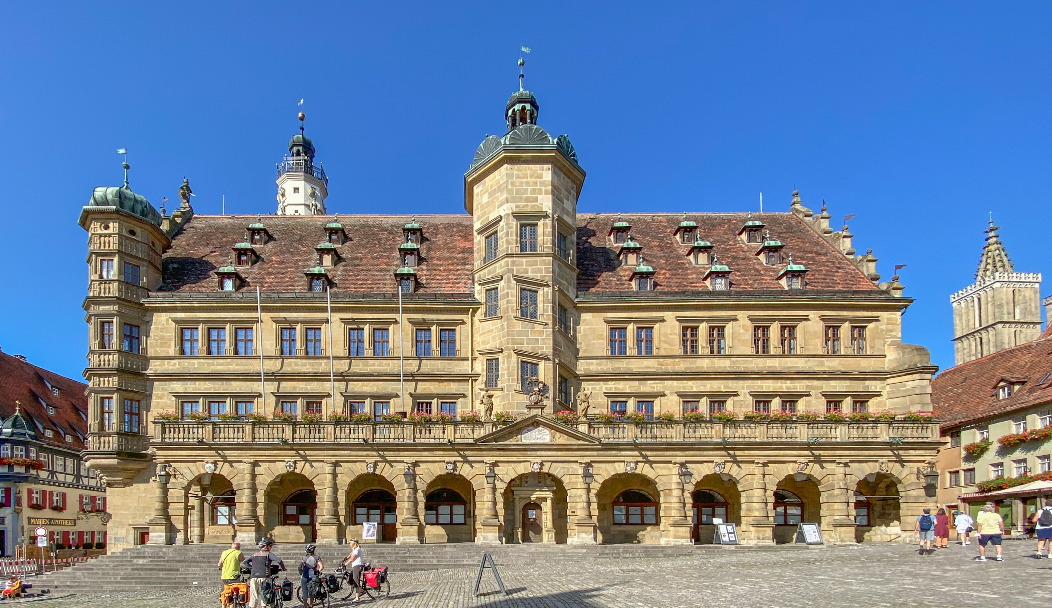 Rothenberg has a traditional town square. The rear part of the city hall building is Gothic style and dates from 1250. The attached front Renaissance portion of the building is from 1572.