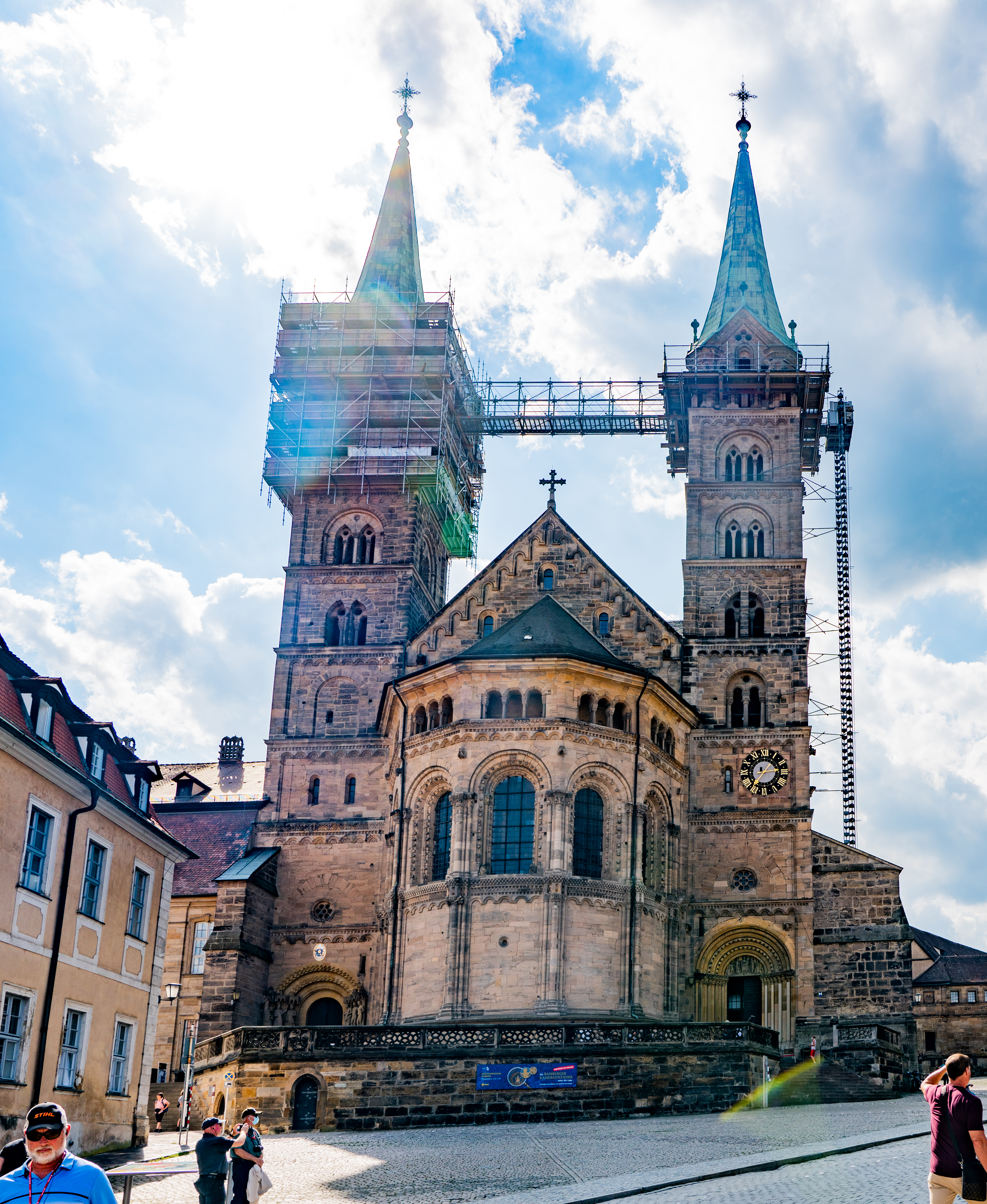 Bamberg Cathedral was completed in the 13th century and is on the site of 2 previous cathedrals which had burned down. During the 17th century, the interior style was changed to Baroque, but this was again changed in the 19th century, returning it to a more medieval style, with some Romanesque art. Pope Clement II (1005-1047) is buried here as well as King Heinrich II (the Holy Roman Emperor) and his wife Kunigunde of Luxembourg.