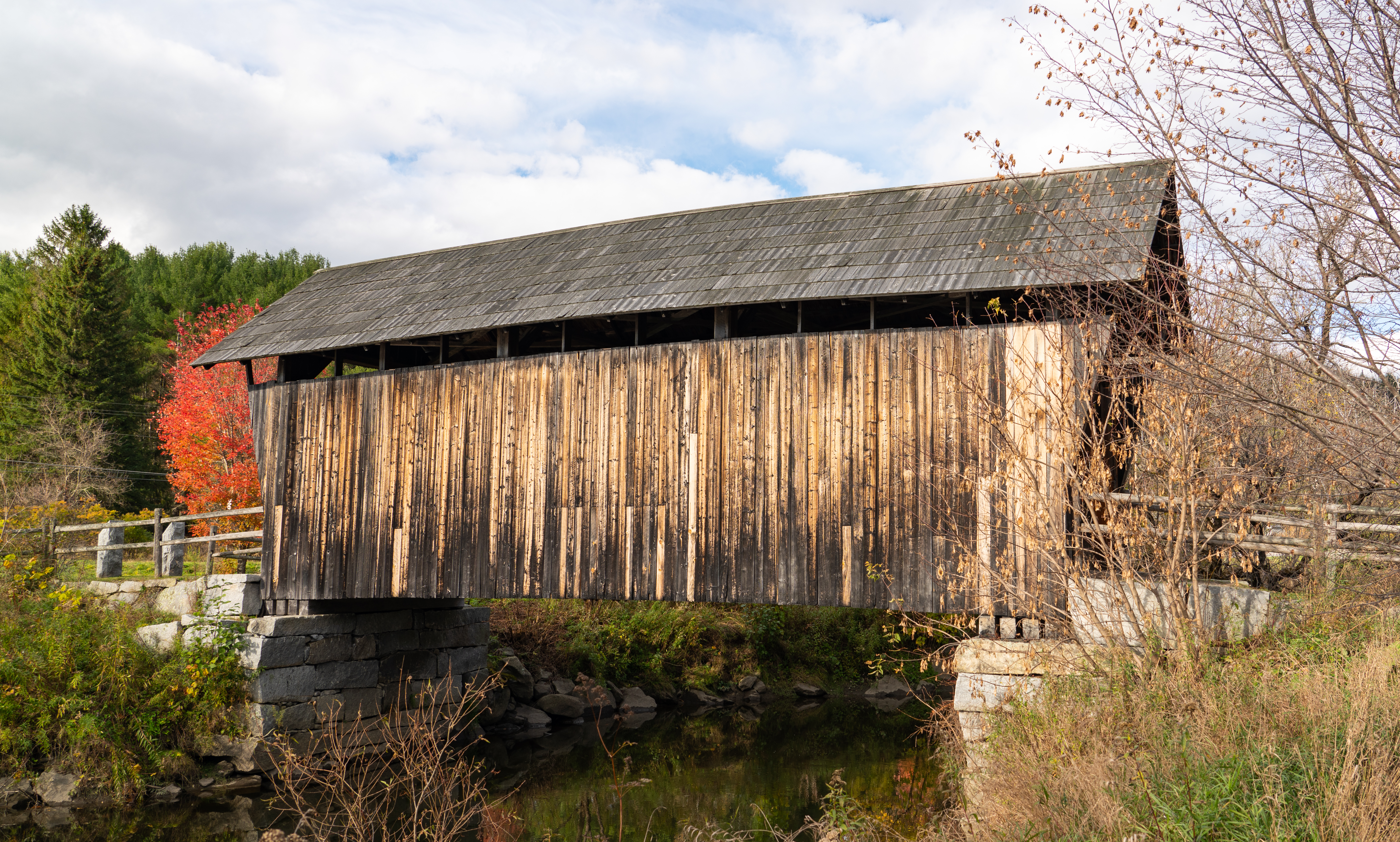 It turns out that Vermont has more covered bridges per square mile than any other state. They were built from 1820 through the late 19th century or very early 20th century. Authentic covered bridges were built using trusses rather than stringers or other methods.
