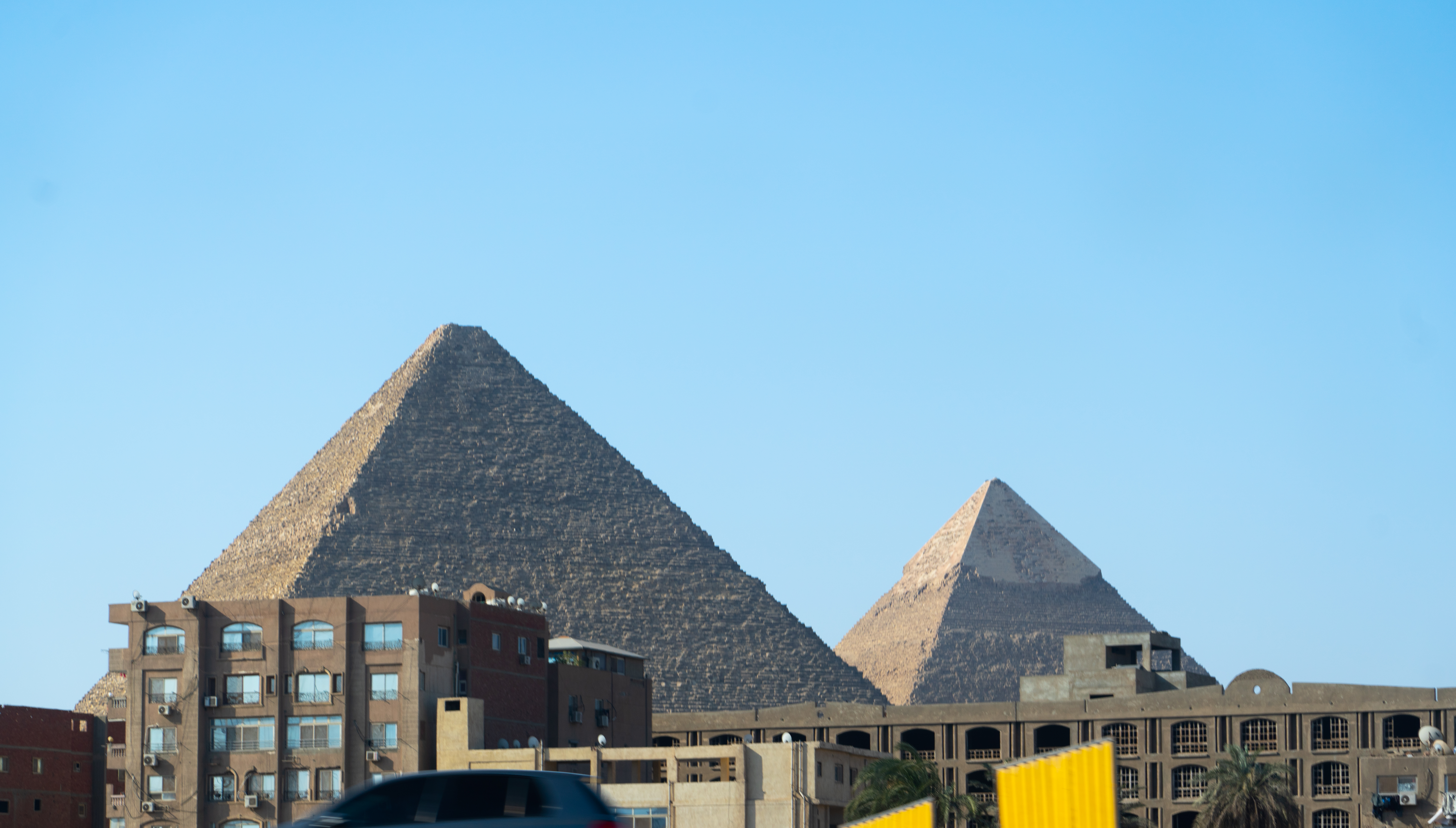 Driving back through Giza to Cairo. Passing by the pyramids on the highway. We will be there soon.