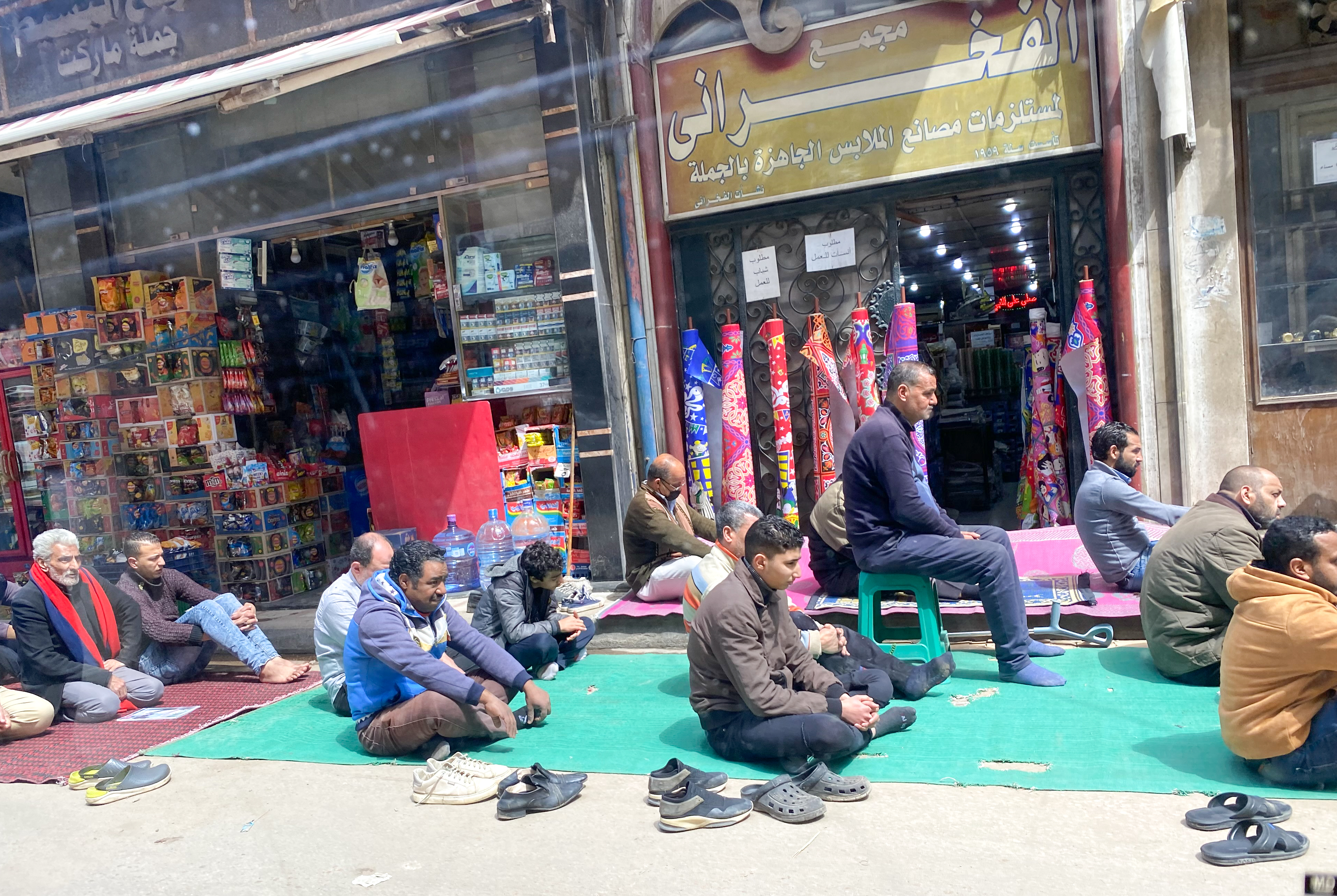Men out for mid-day prayers.
