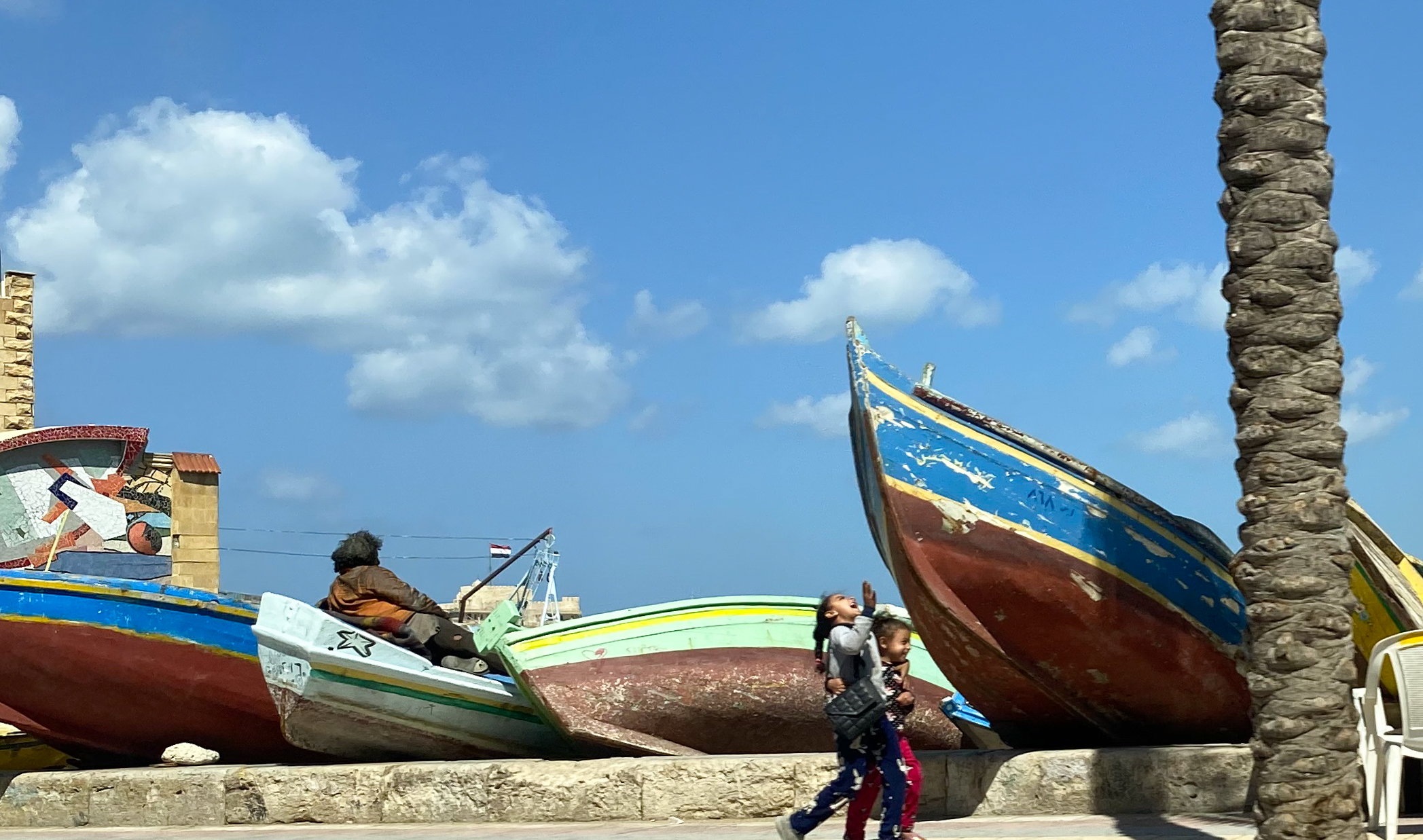 We ended up at the Qaitbay Citadel, This was built in 1477 to defend against the Turks. It was built on a very famous site, the site of the Lighthouse of Alexandria. The lighthouse was built around 350 BC and was over 300 ft tall. It was damaged in earthquakes in 956 and 1323 AD and survived to some extent until the last parts of it were used to build the Citadel. Some parts of the Lighthouse have been seen underwater by archaeologists, however.