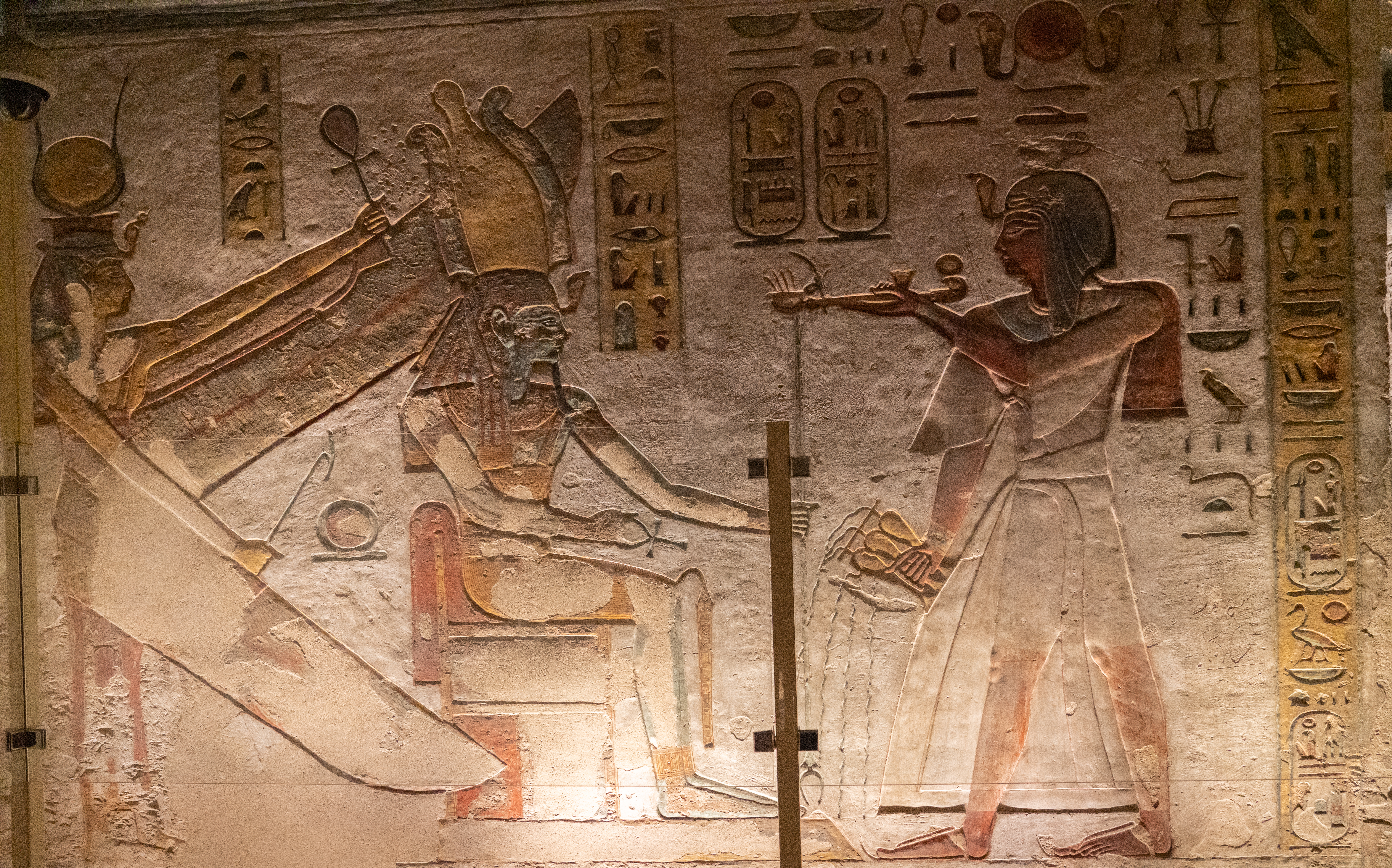 We went on to the Valley of the Kings, which is not far from the Valley of the Queens. This was the burial site fo the Kings of Egypt from the 16th to the 11th centuries BC. There are currently 63 known tombs here. Some of the tombs are simple, but others are elaborate tunnels with multiple chambers. The biggest is the tomb of the sons of Ramesses II with 120 known rooms and excavation still ongoing. The most famous one is the tomb of Tutankhamum, or King Tut.