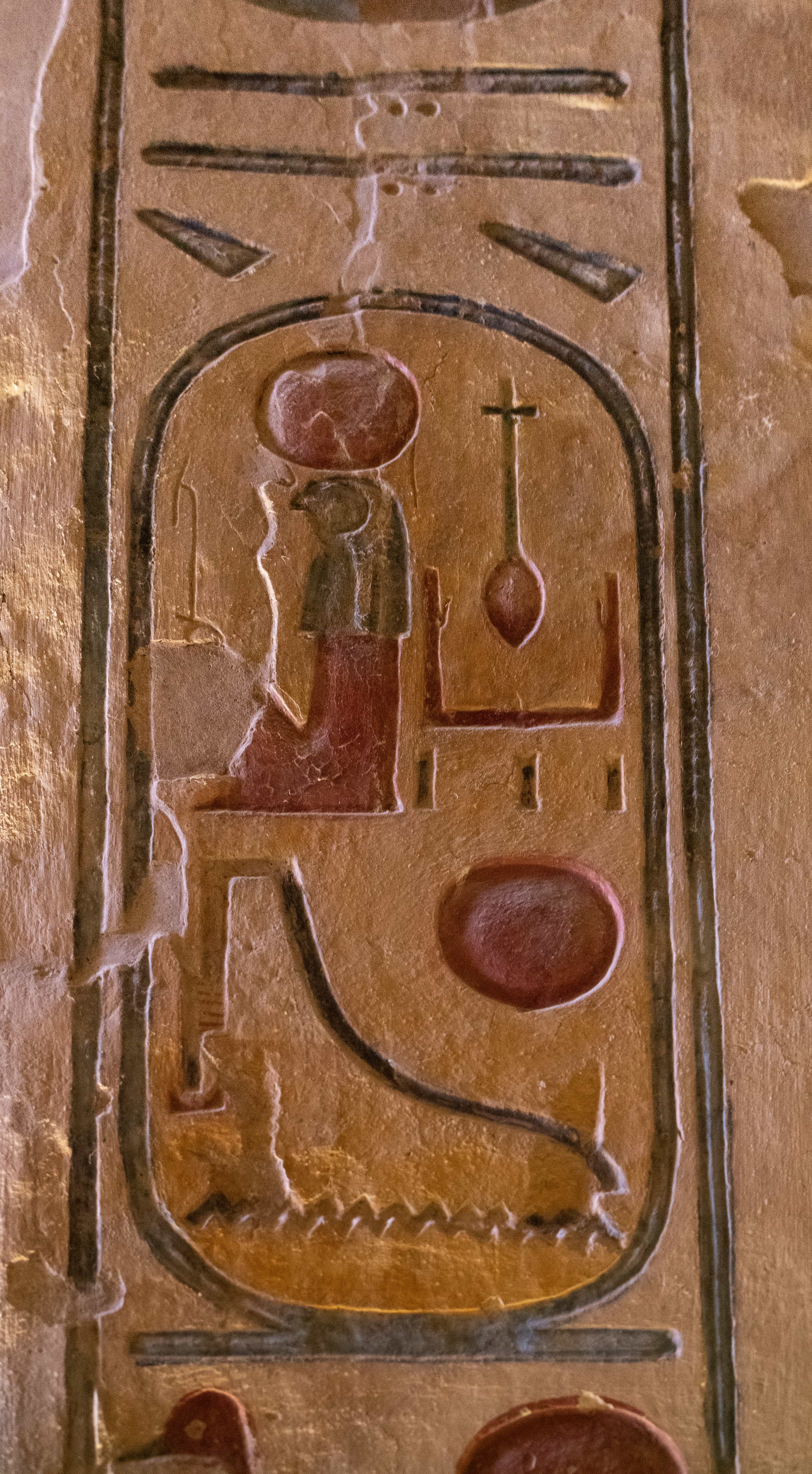 This is a cartouche: the inscription in hieroglyphs of a monarch’s name, in this case, Ramesses IX.