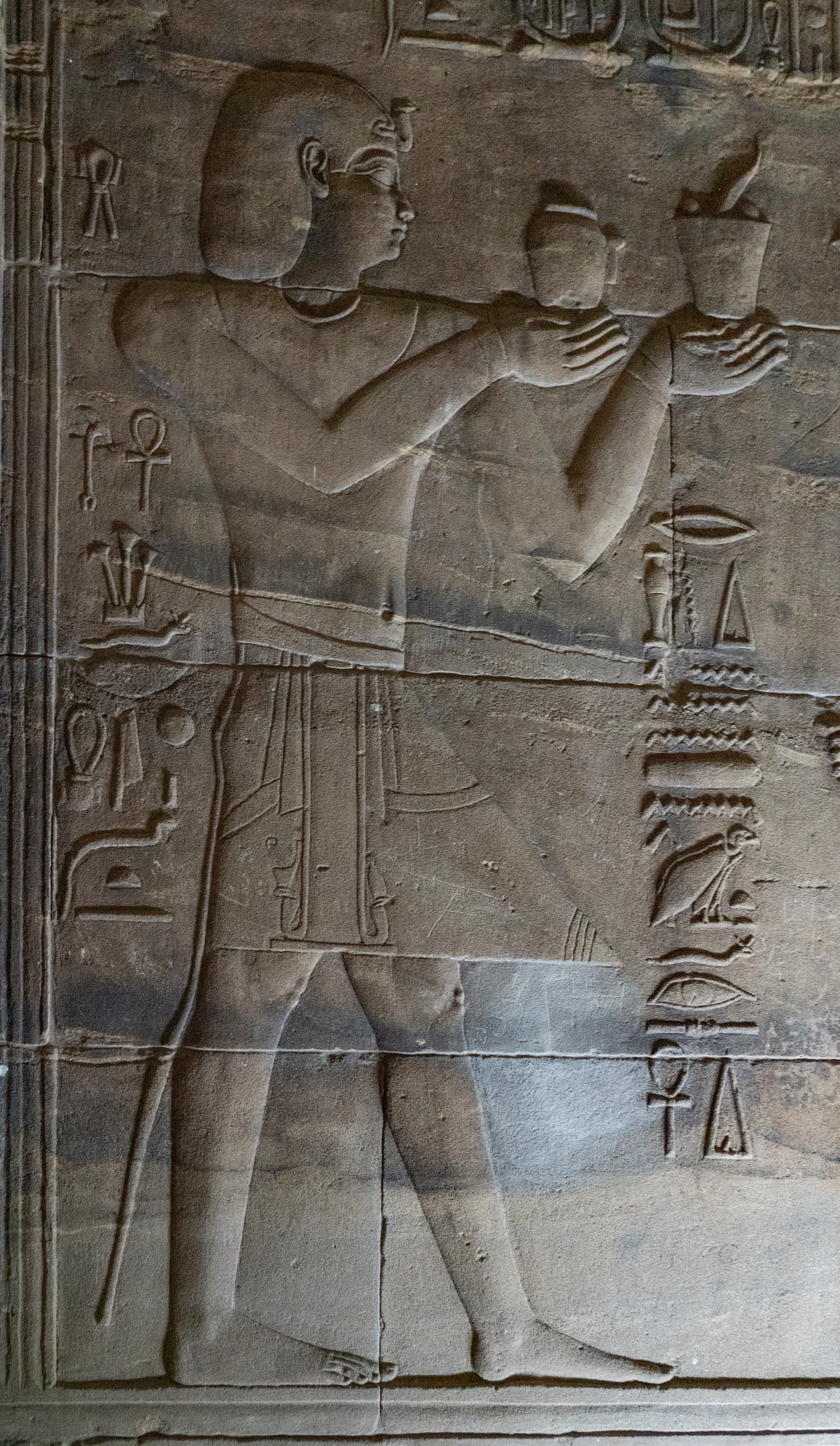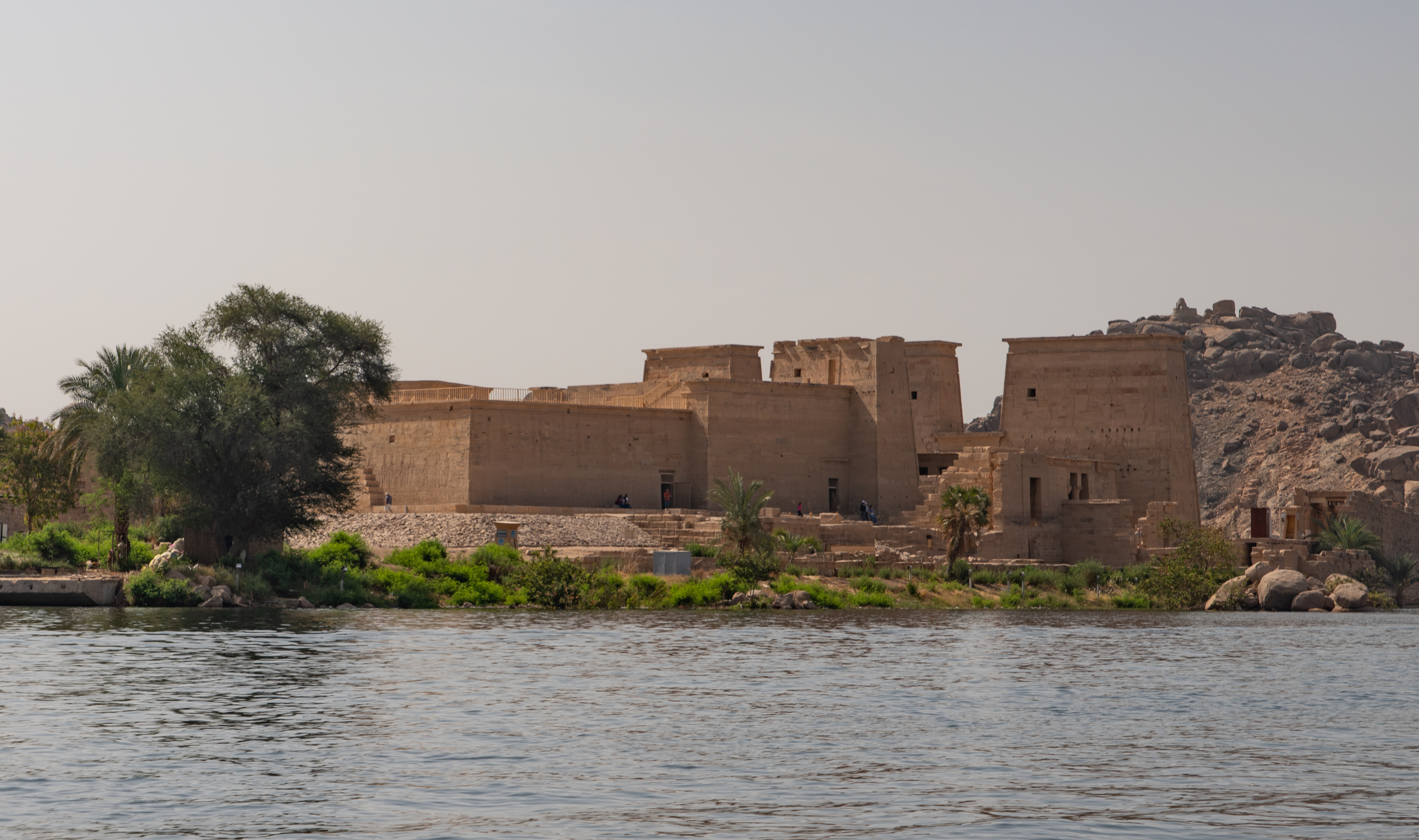 We started out the morning at the Philae Temple. Like Abu Simbel yesterday, this temple was taken apart, numbered, moved, and reassembled to keep it from being flooded by the Aswan High Dam waters. It had already been largely underwater after the Aswan Low Dam was completed in 1902. They had to surround the site with a dam and pump the area dry before they disassembled the temple to move it.