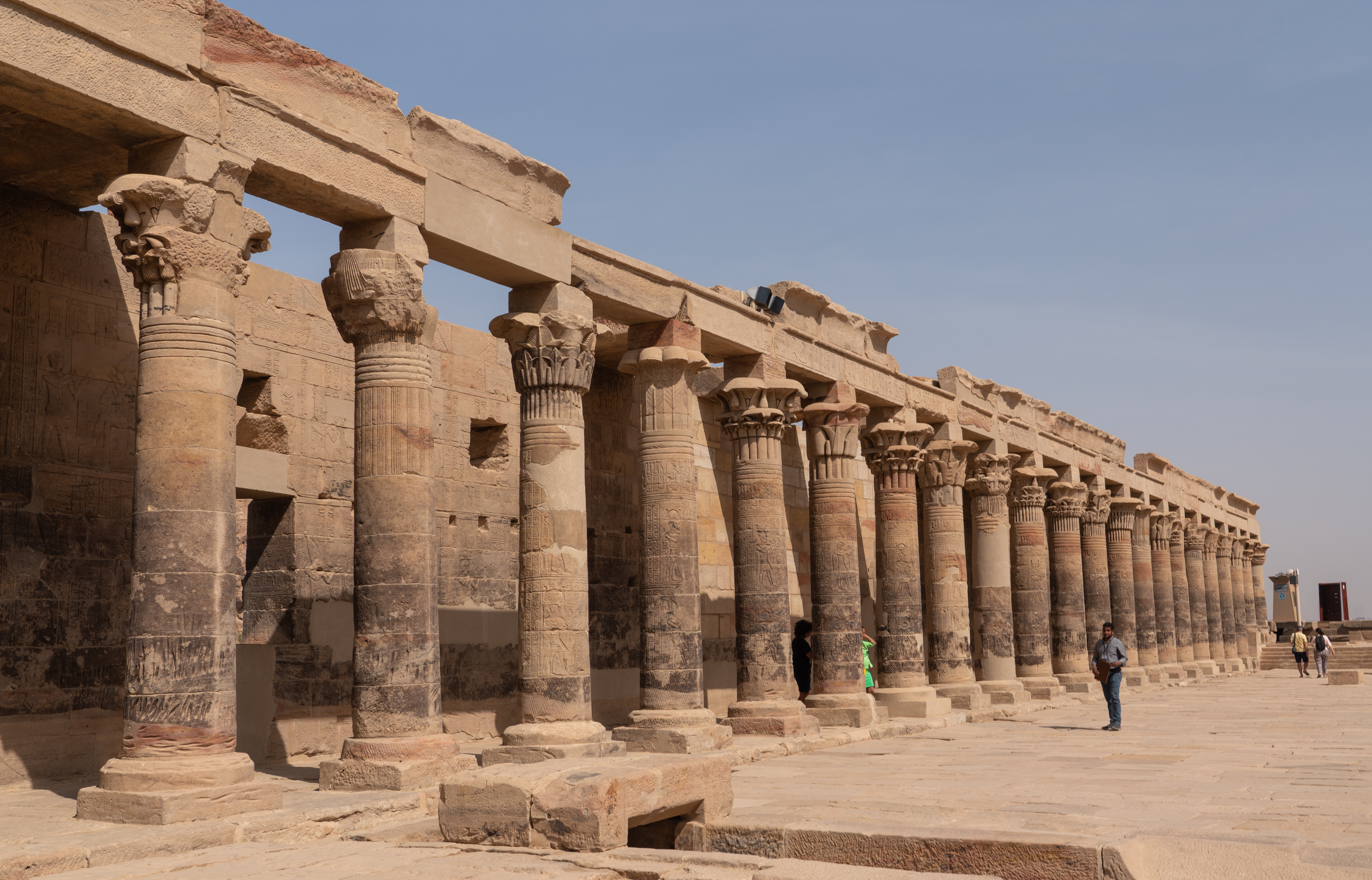 The Philae Temple was originally on an island near the first cataract of the Nile and was moved to higher ground on Agikila Island. The temple was built by the Ptolemaiic kings from 282-145 BC. Philae is dedicated to Isis but Osiris and Horus were also worshipped there. While it is an Egyptian temple it also has Greek and Roman influences. This temple wasn’t all about seriousness and worship, there were big celebratory events here.