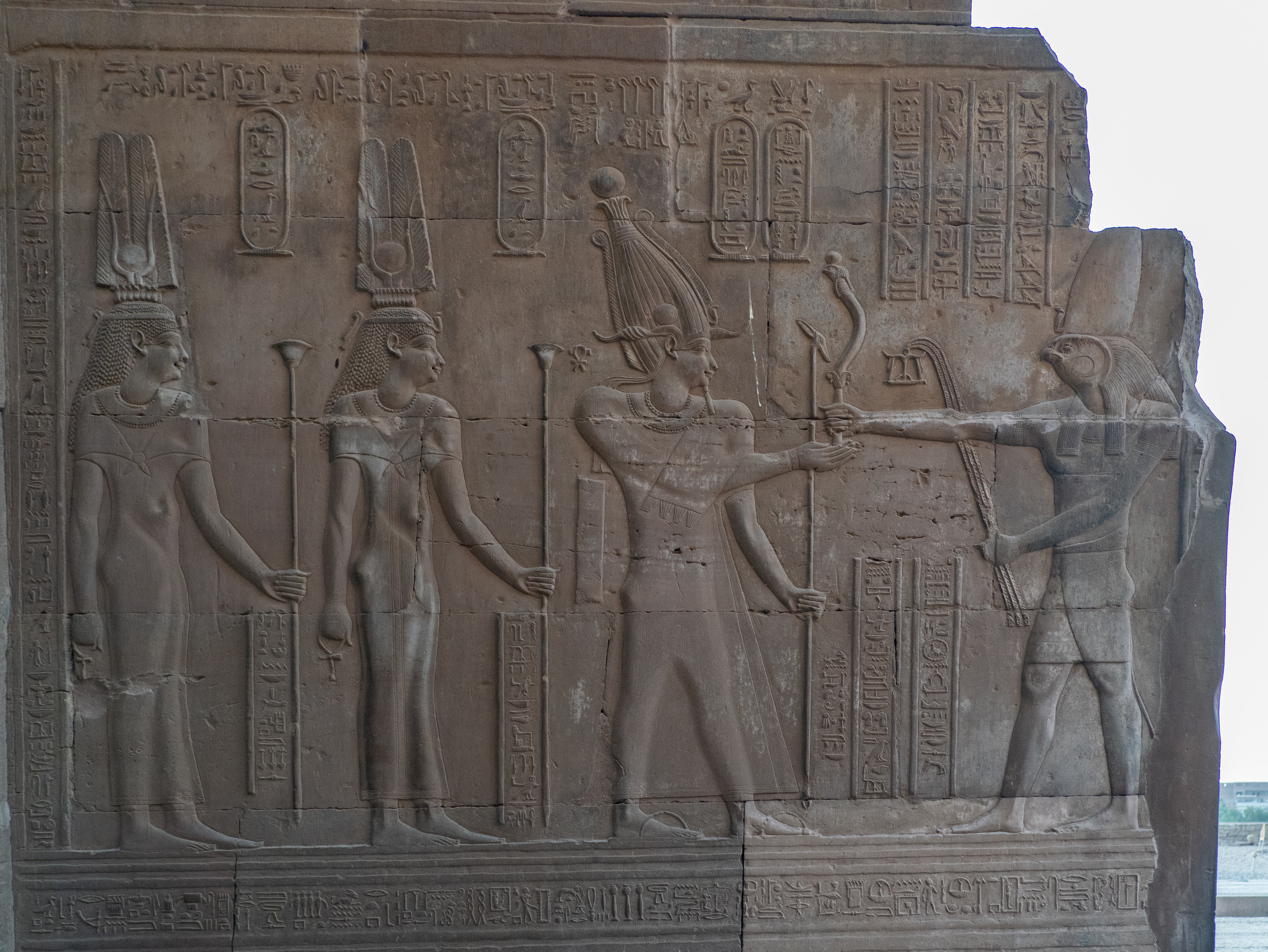Ptolemy VIII with Cleopatra II, Horus, and Sobek