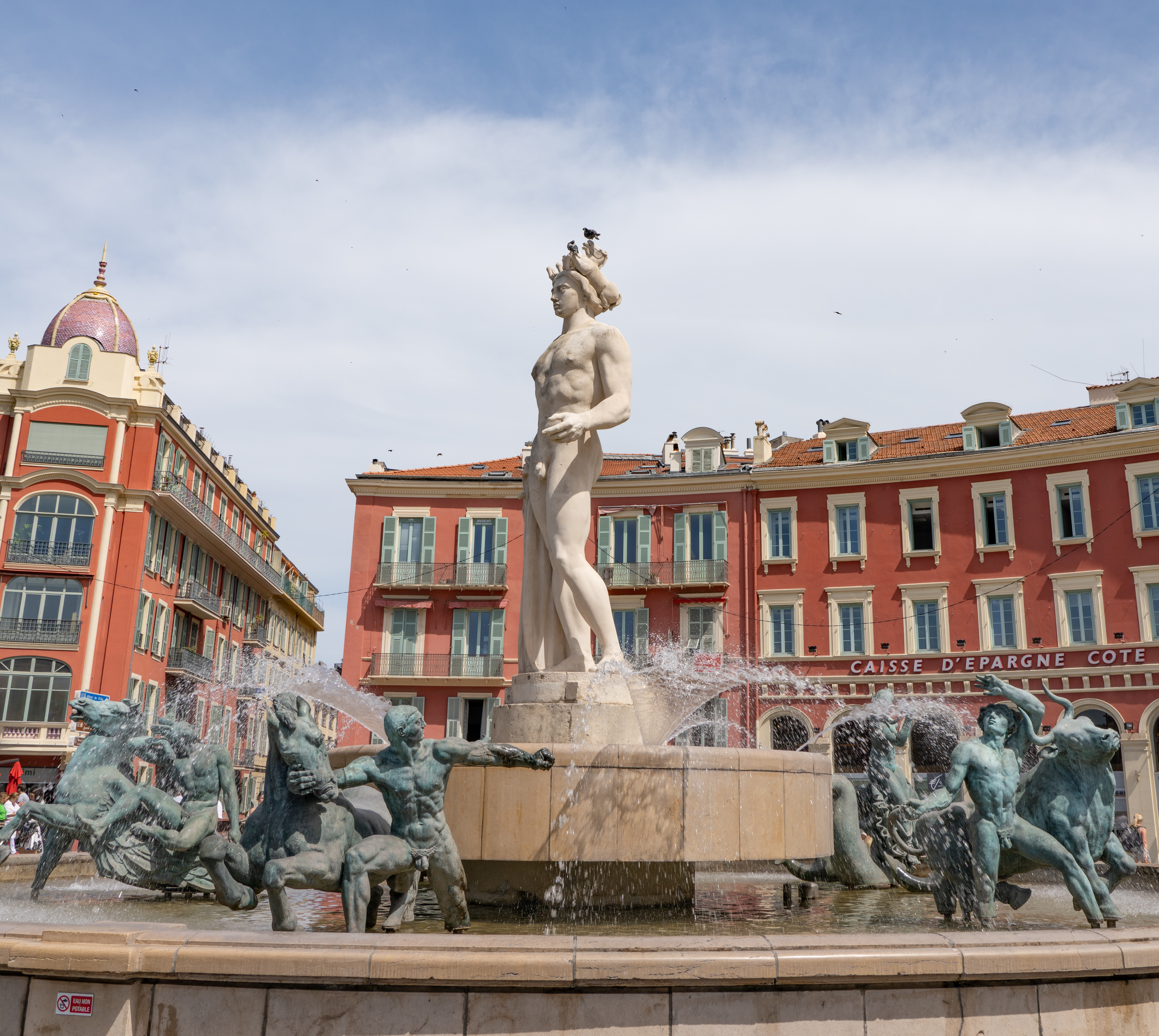 Statue in the Place Masséna (a major square in Nice). I do not know why he has horses on his head.