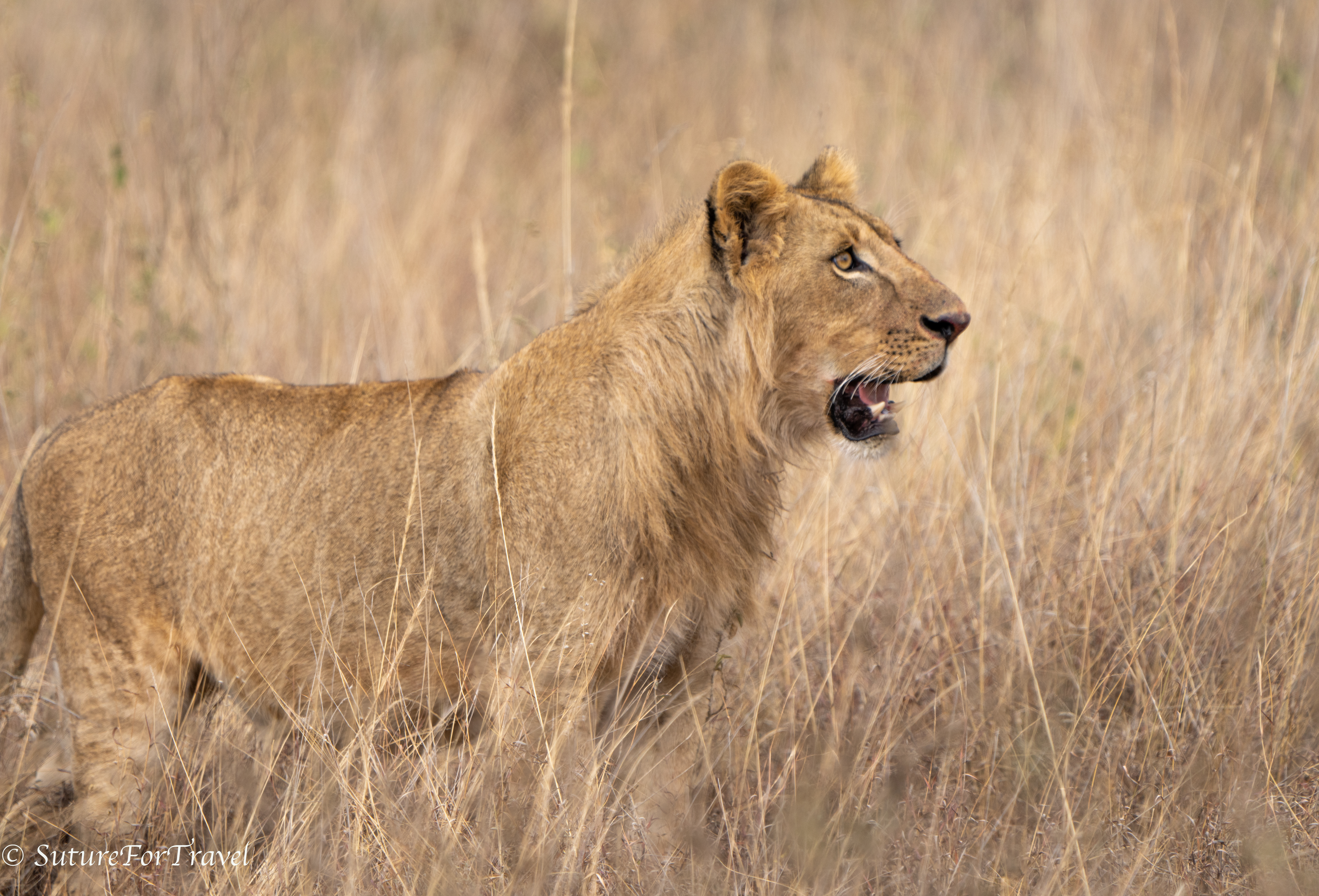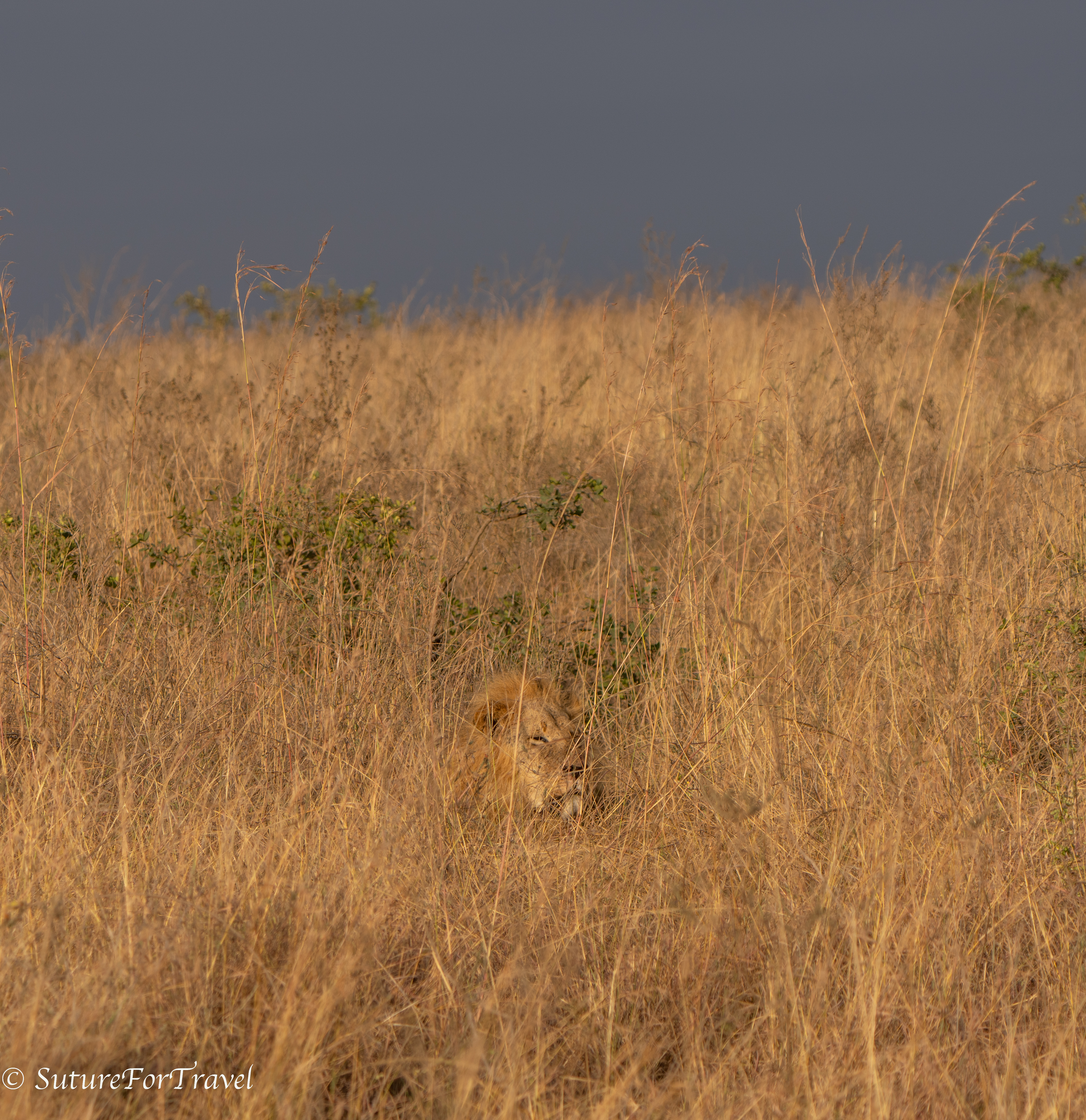 Male lion hiding out