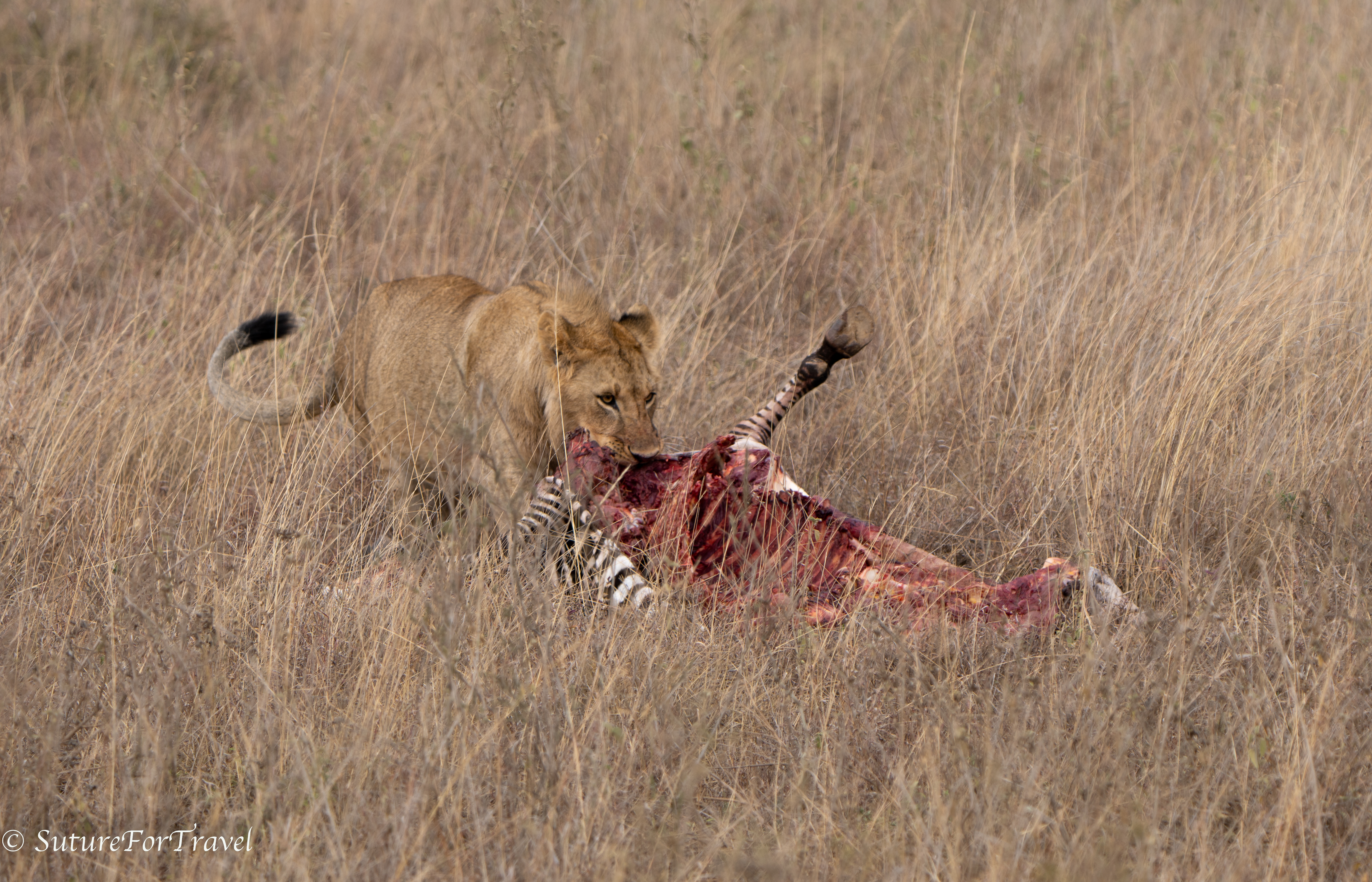 This young male lion had recently made a kill.