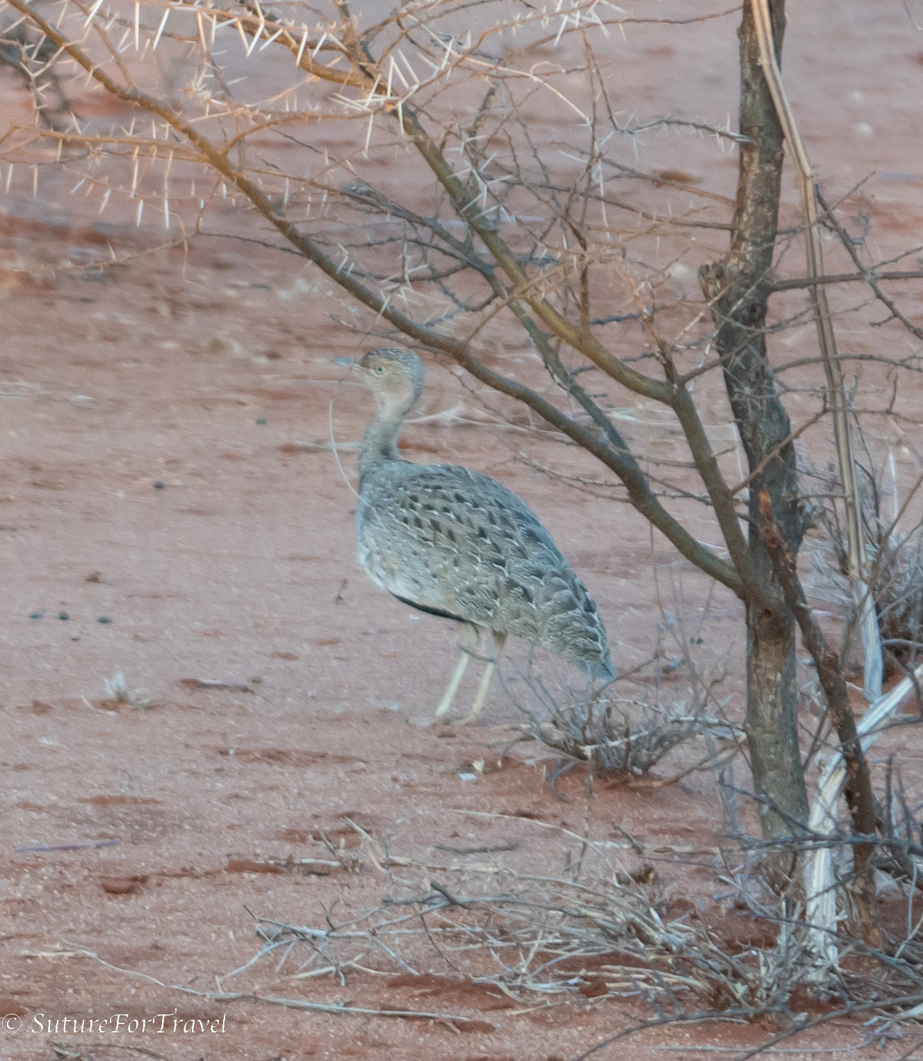 buff-crested bustard: these birds can be up to 2 feet tall. They blend in perfectly with the arid environment.