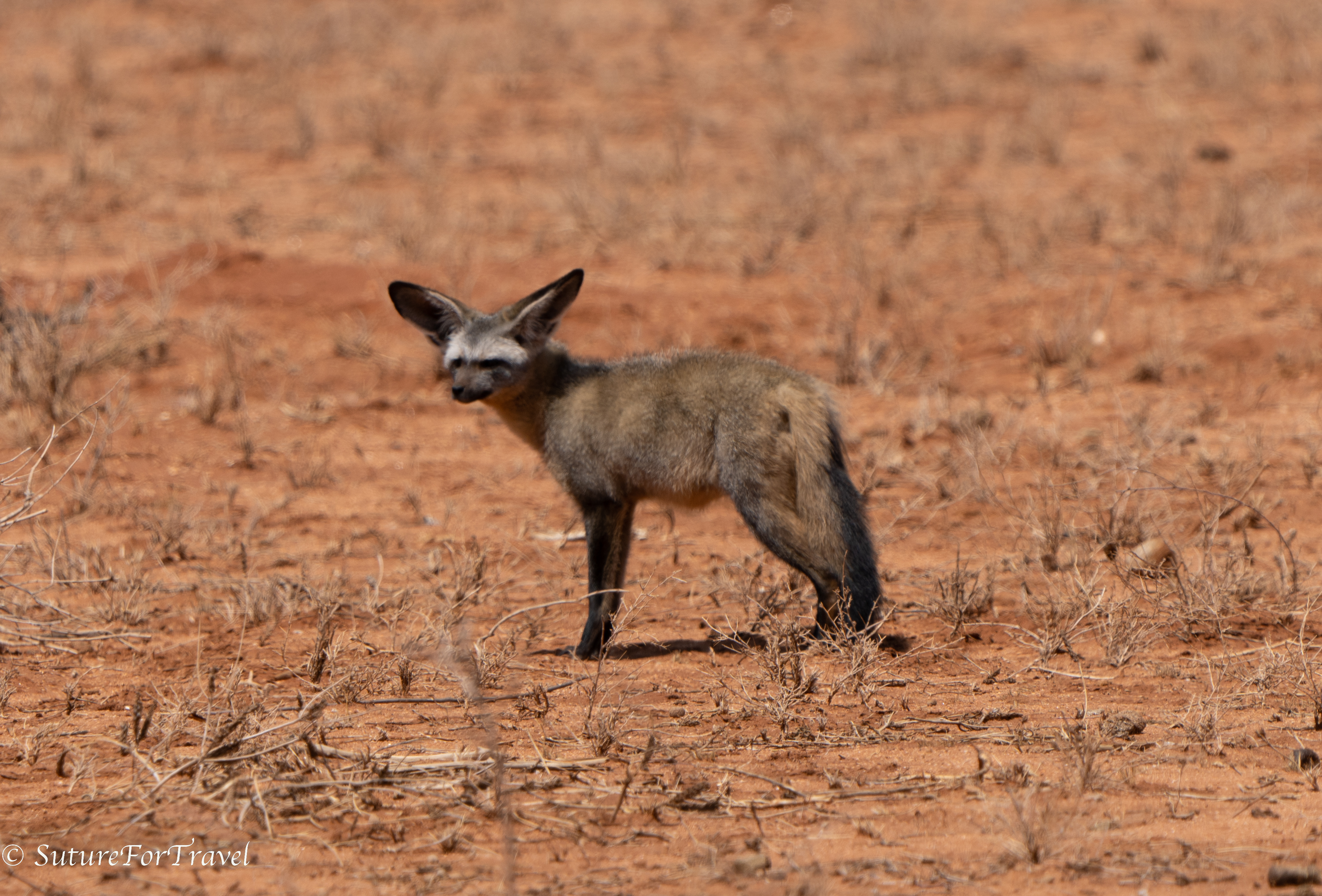 bat eared fox: Better picture today. Named for their big ears. These are small, nocturnal foxes that eat insects.