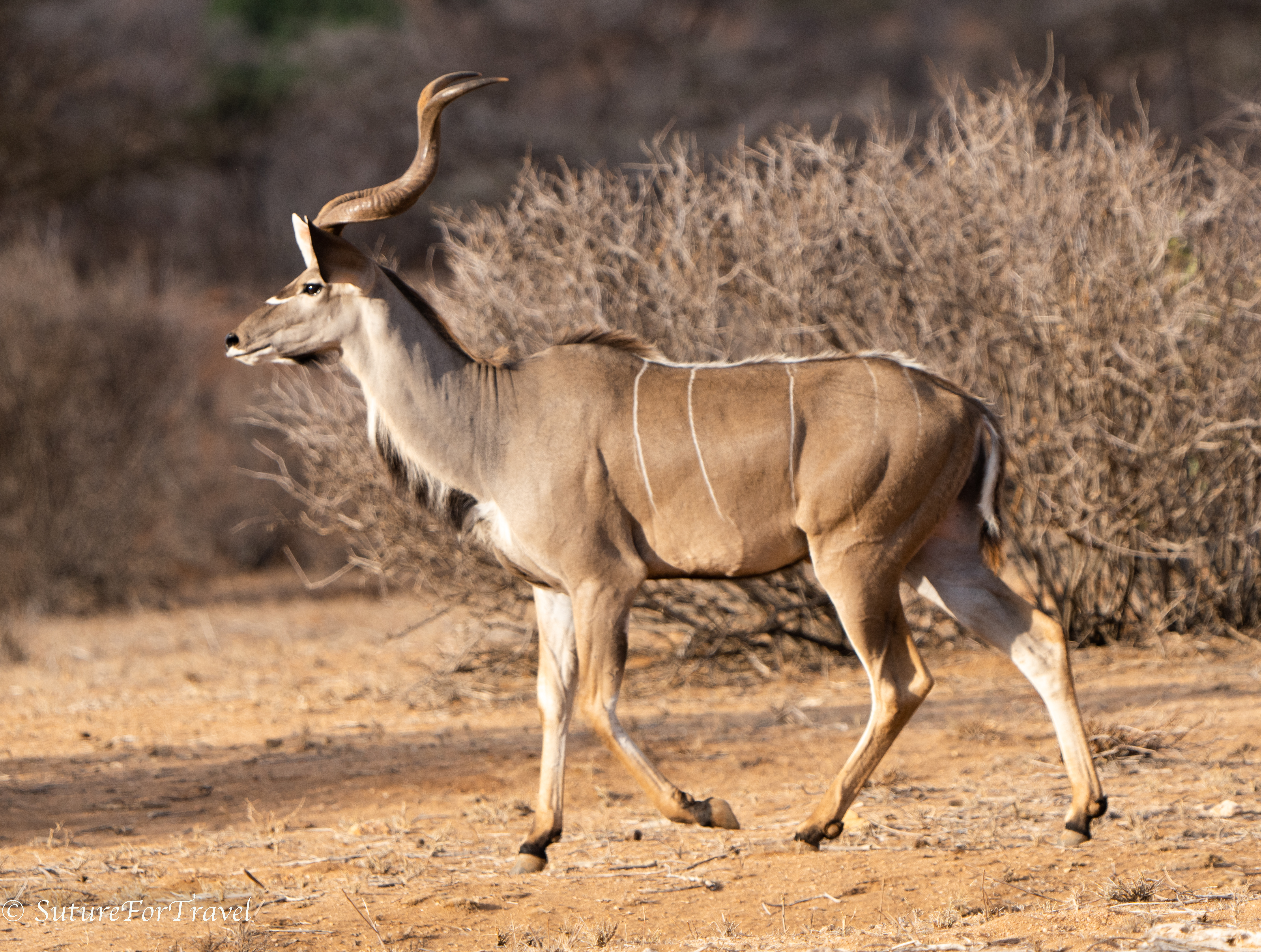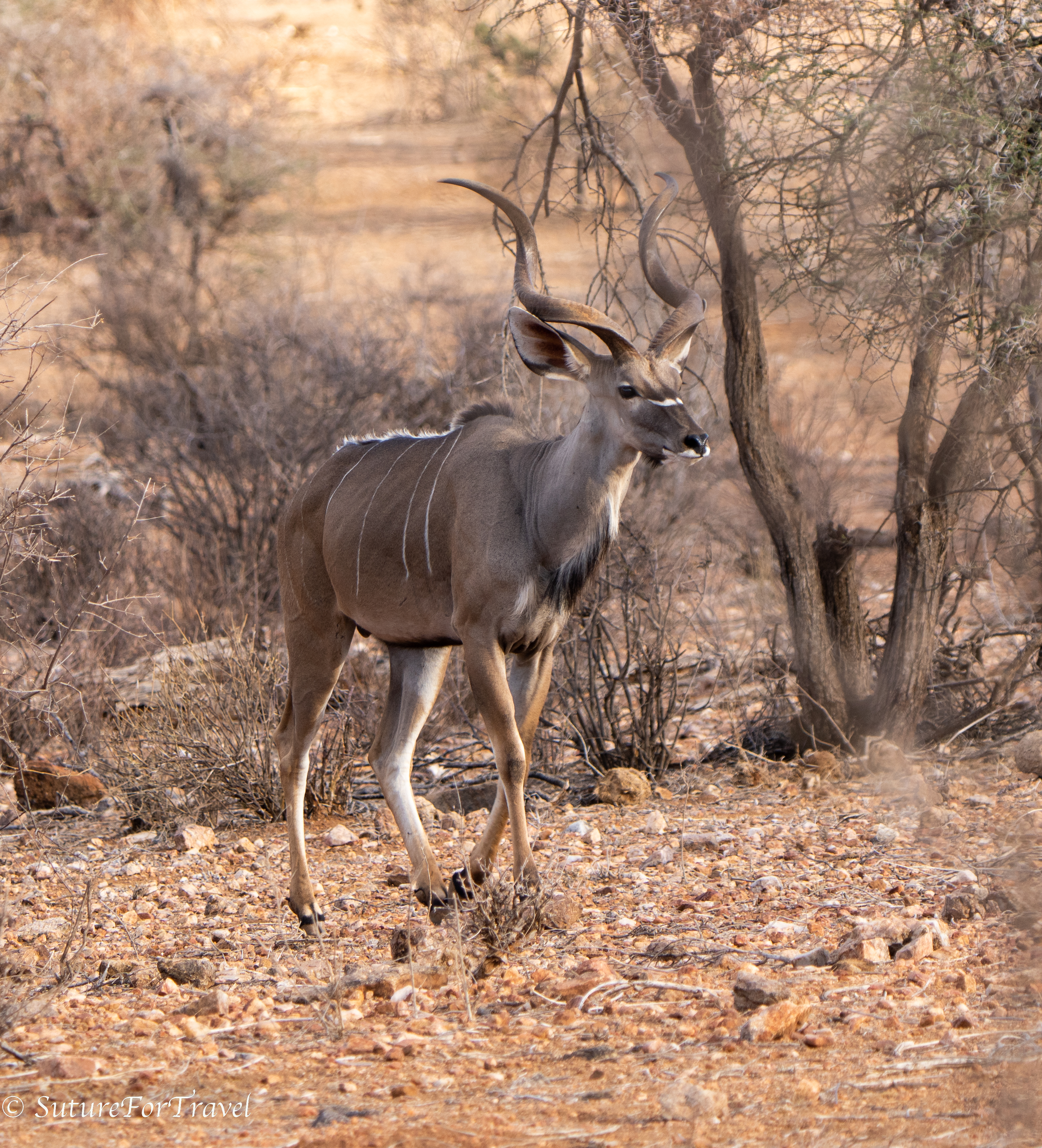 kudu: This is a large antelope that has beautiful markings and huge spiral horns.