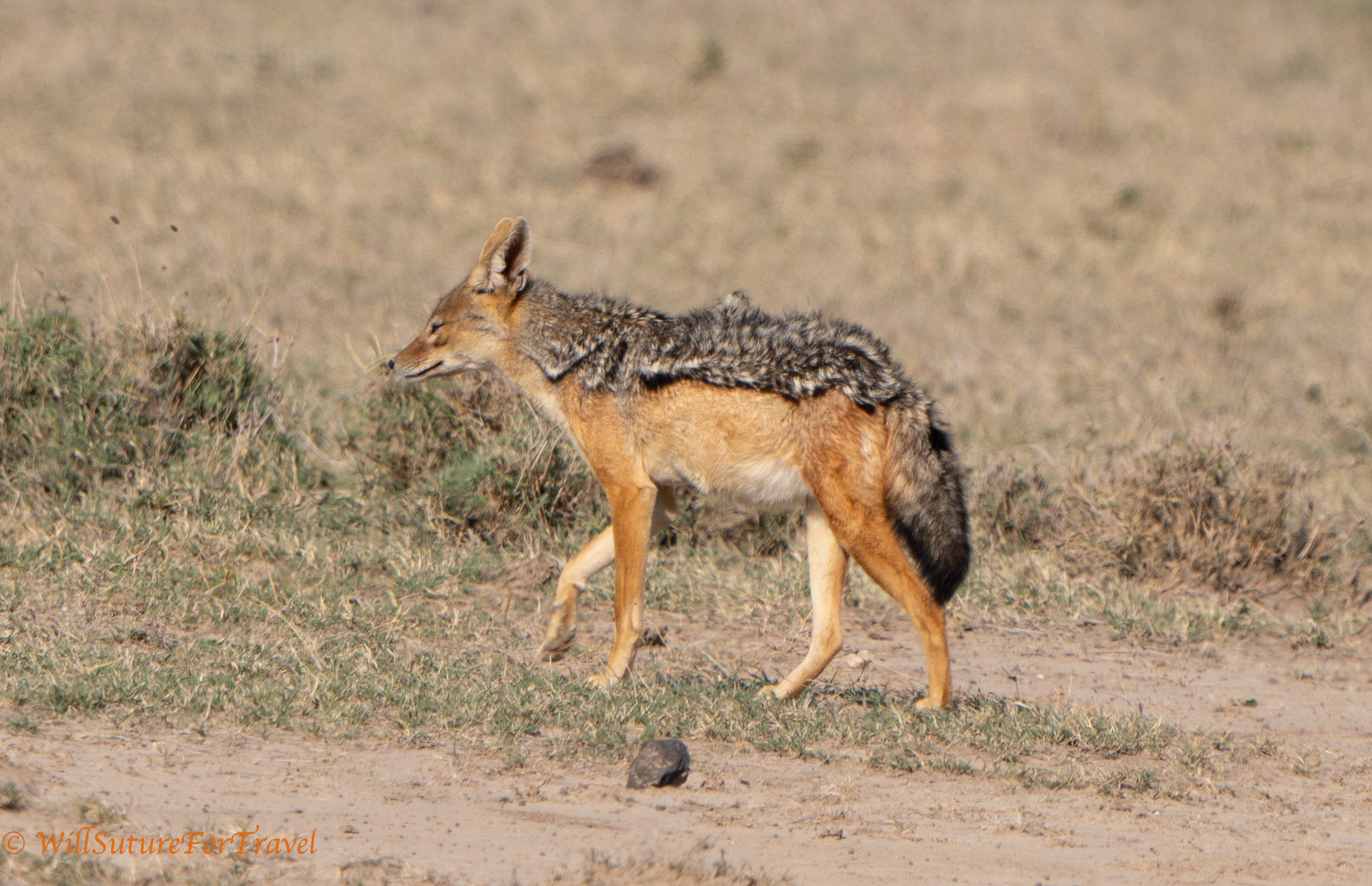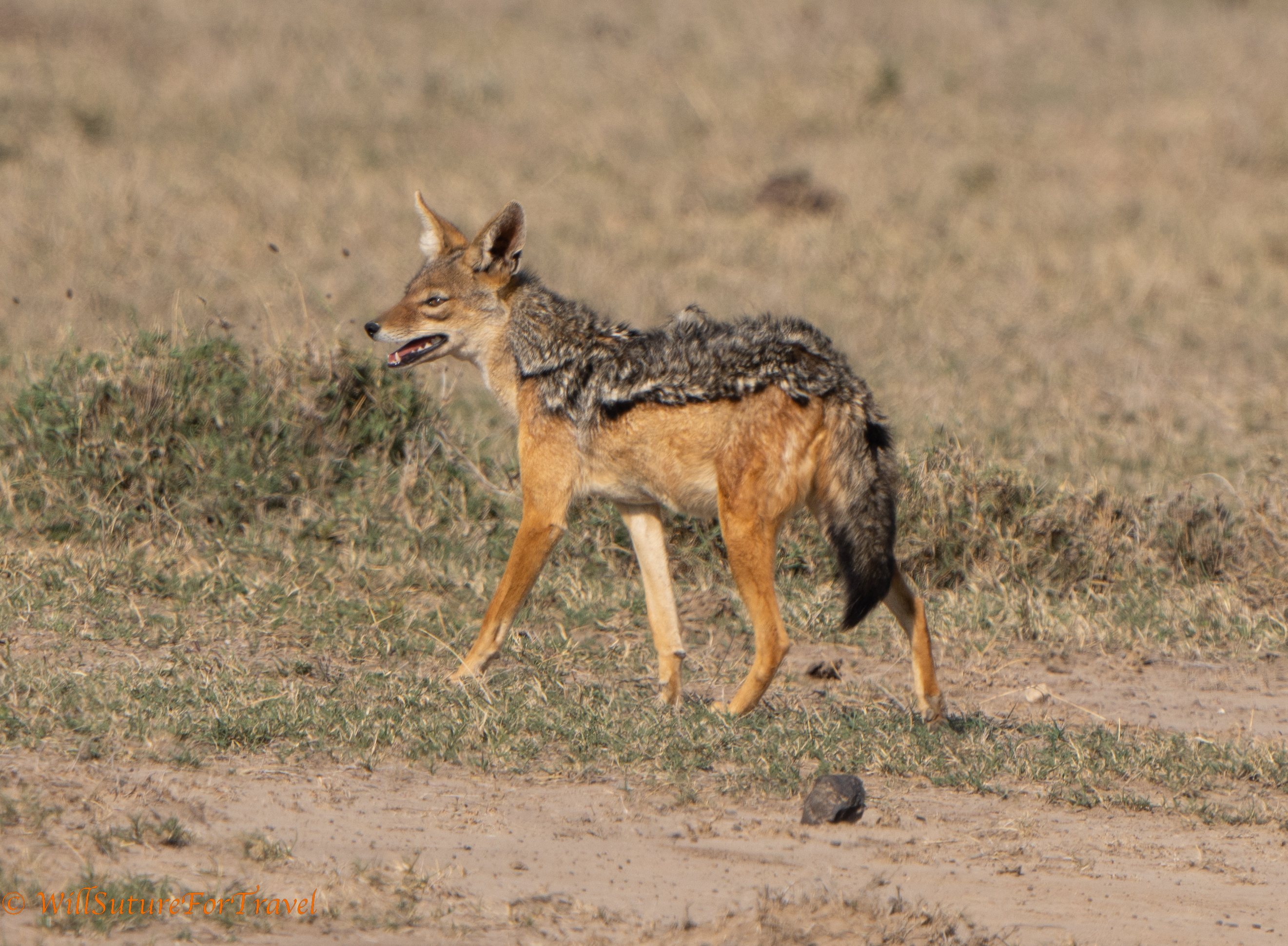 black-backed jackal: You usually see these in mated pairs They weigh 13-30 lbs. They are omnivores, eating various animal, carrion, and fruit.