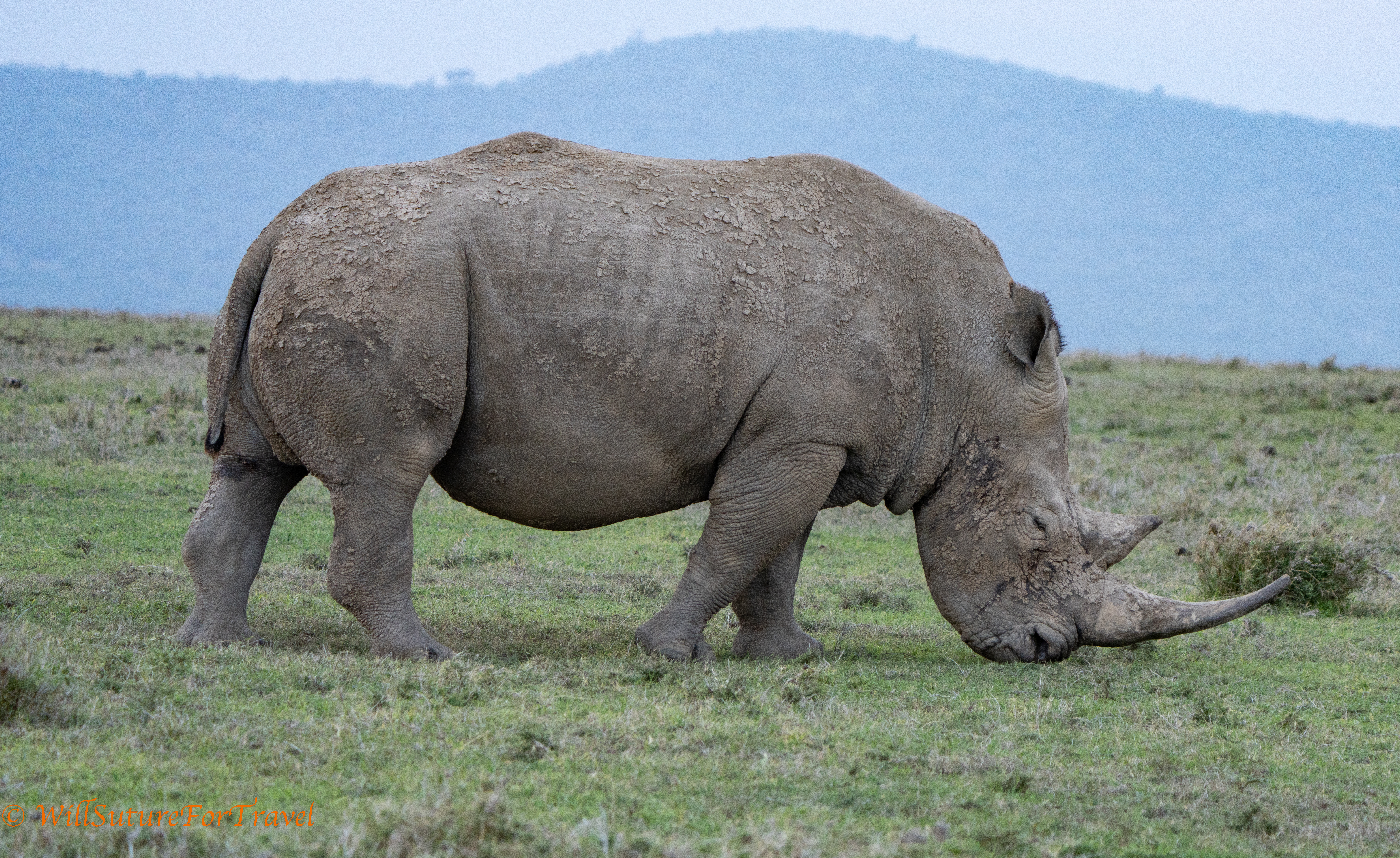 southern white rhino: These are threatened. As I listed above, they are grazers and have a square shaped mouth. They weigh between 3800-5000 lbs. They usually stay in groups and are less aggressive than the black rhinos. We have had some get pretty close to us and be very calm.