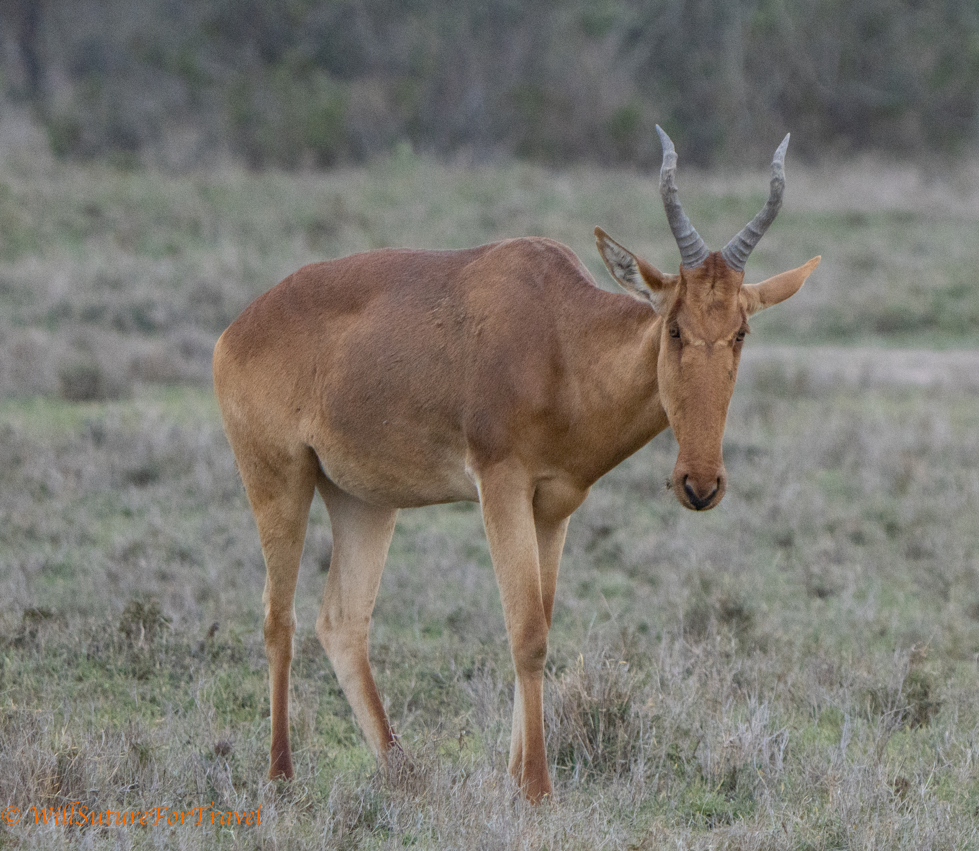 Jackson’s hartebeest: a moderately large antelope with a long face. They can form large herds, although we have only seen small groups here.