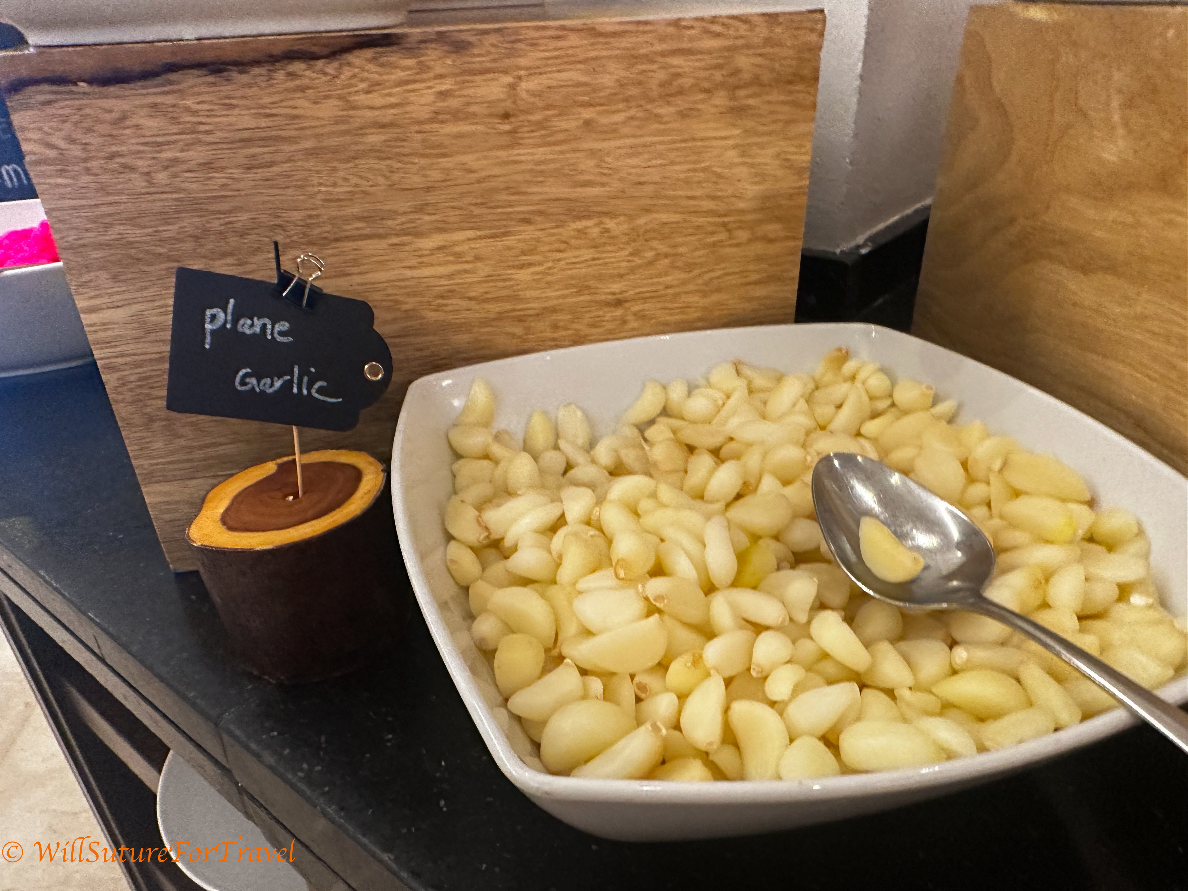Breakfast offerings included this large bowl of “plane garlic.” I’m not even sure what we were supposed to do with cloves of garlic for breakfast.