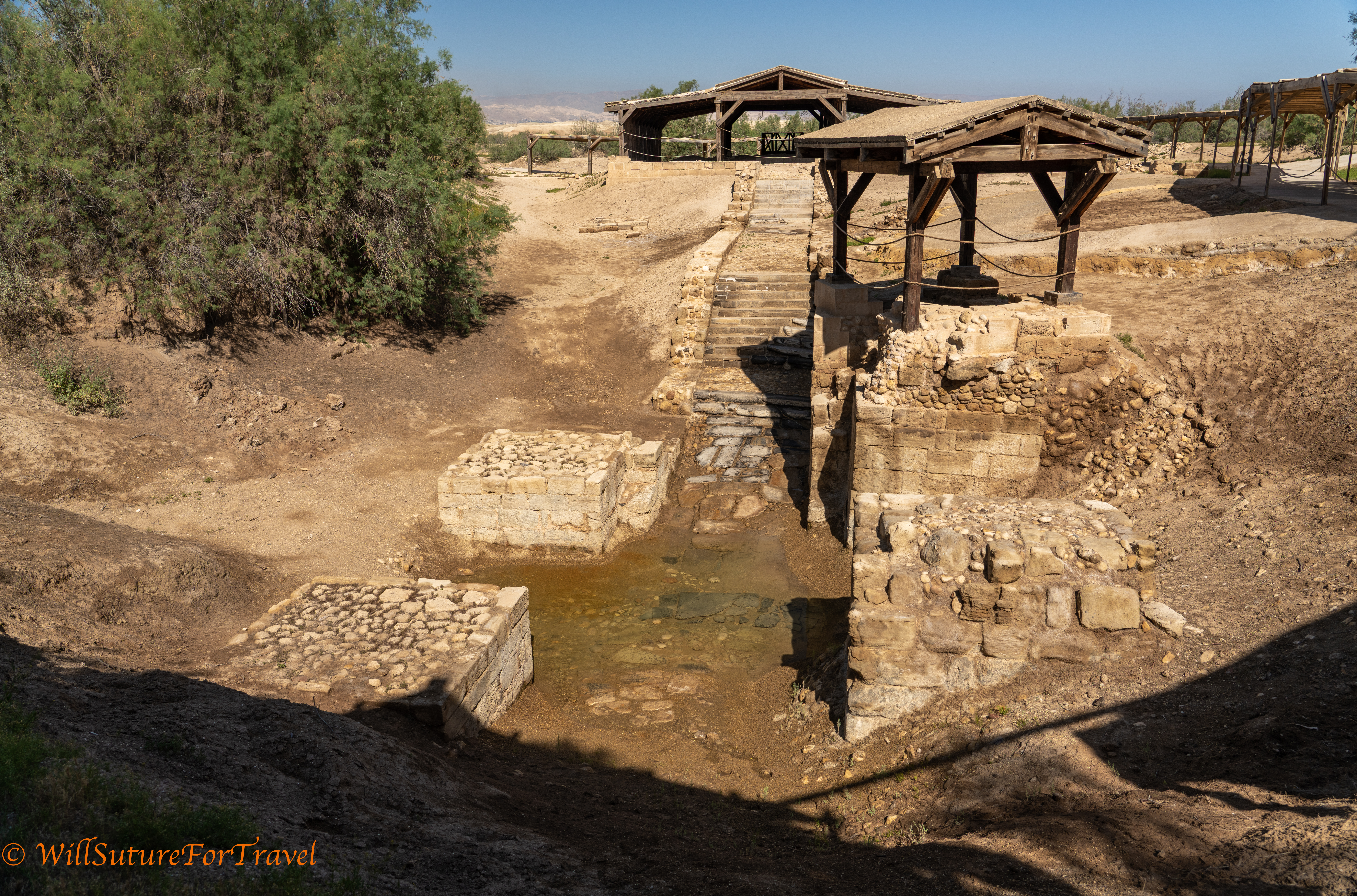 This is thought to be the baptism site. There are remains of a Byzantine church and chapel at the site and other Byzantine churches in the back of the site. They state that the sediment layers show that the Jordan River previously was along here. It is now just a short walk away.