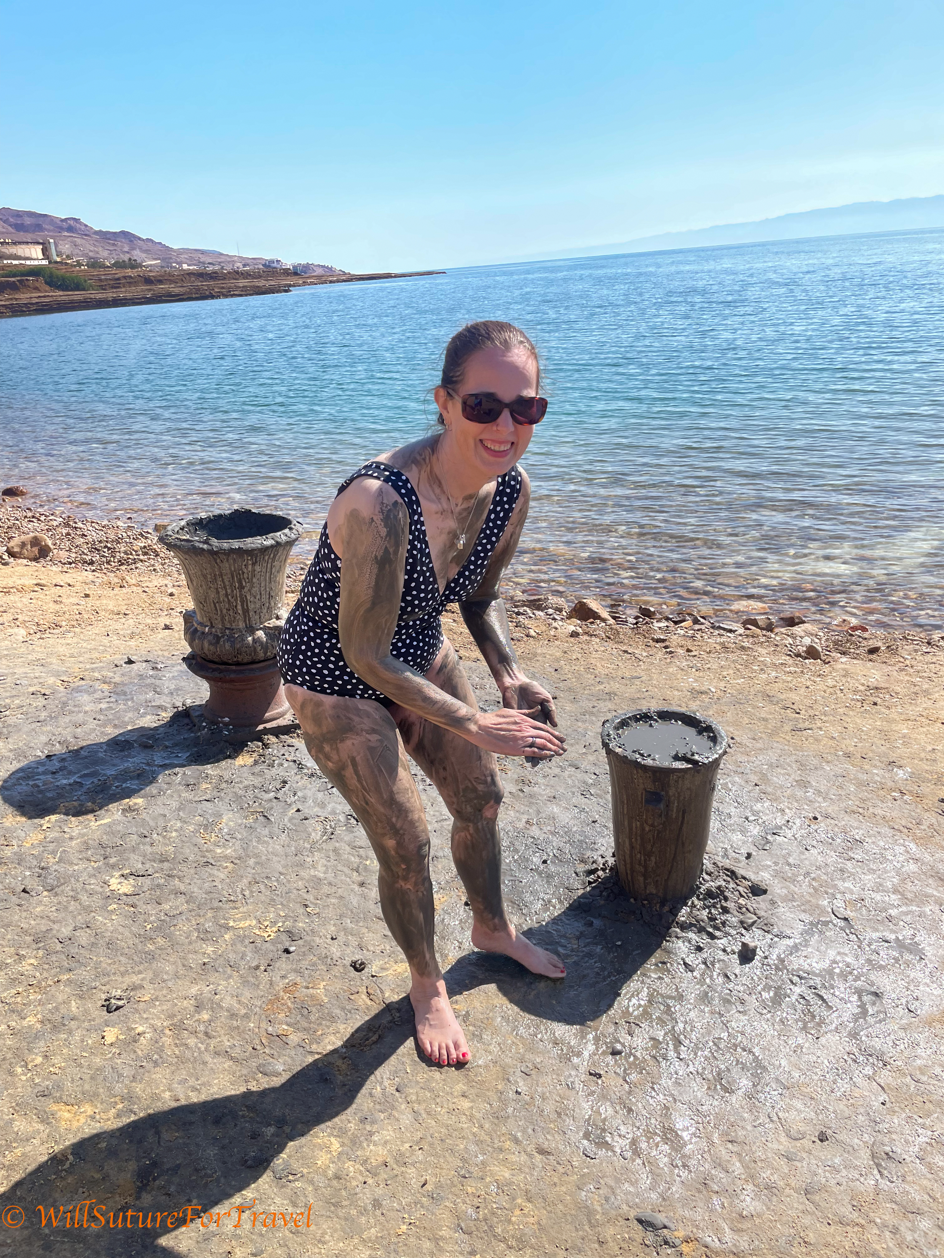 Before getting in the water I coated myself in Dead Sea mud, which is supposed to be good for your skin.