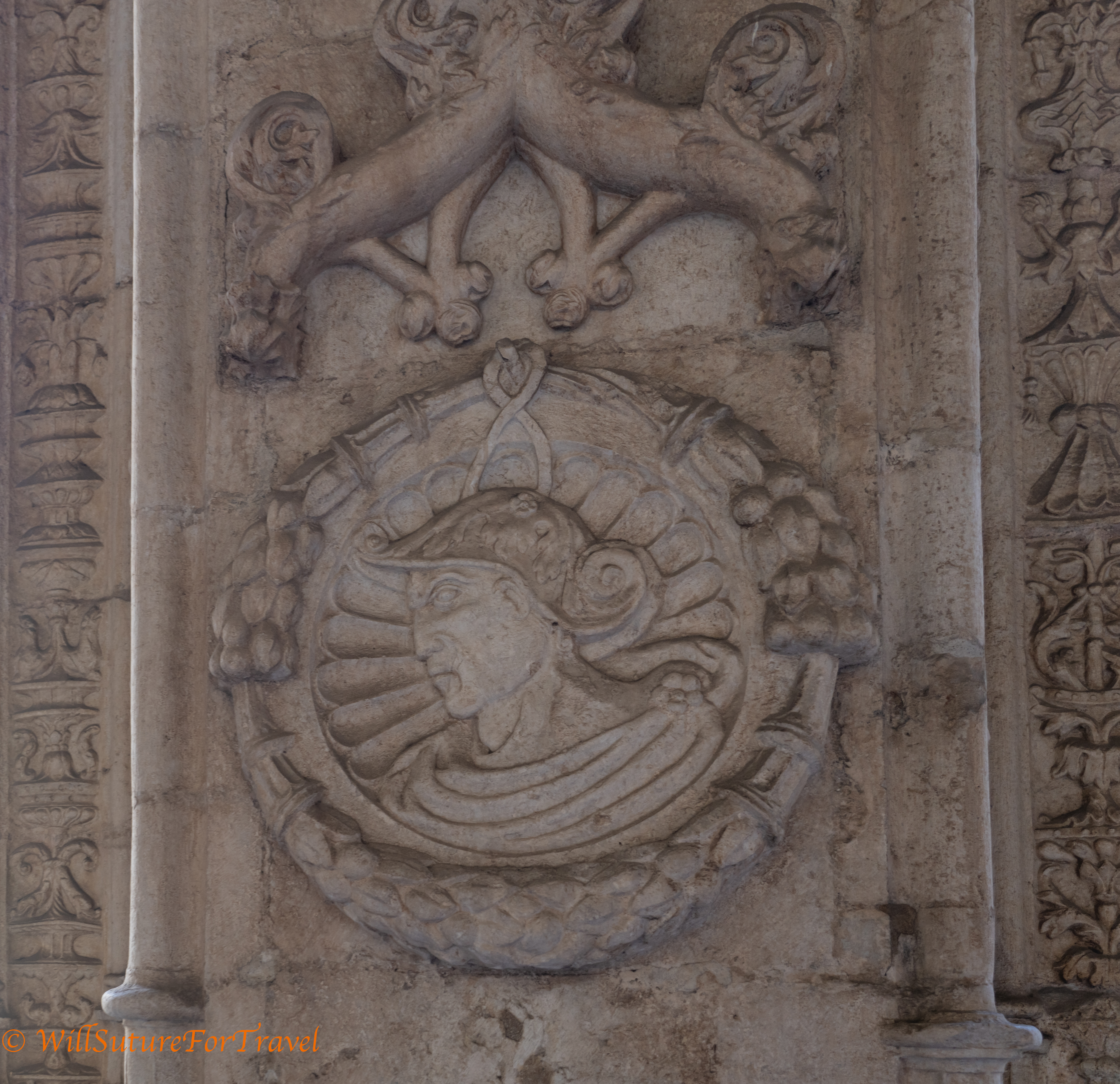 Henry the Navigator is at the head of the “ship” on the statue. There are a total of 32 other people represented on the 2 sides. On this side toward the left you see his mother, Philippa of Lancaster, included for her support. Two of his brothers are also depicted.