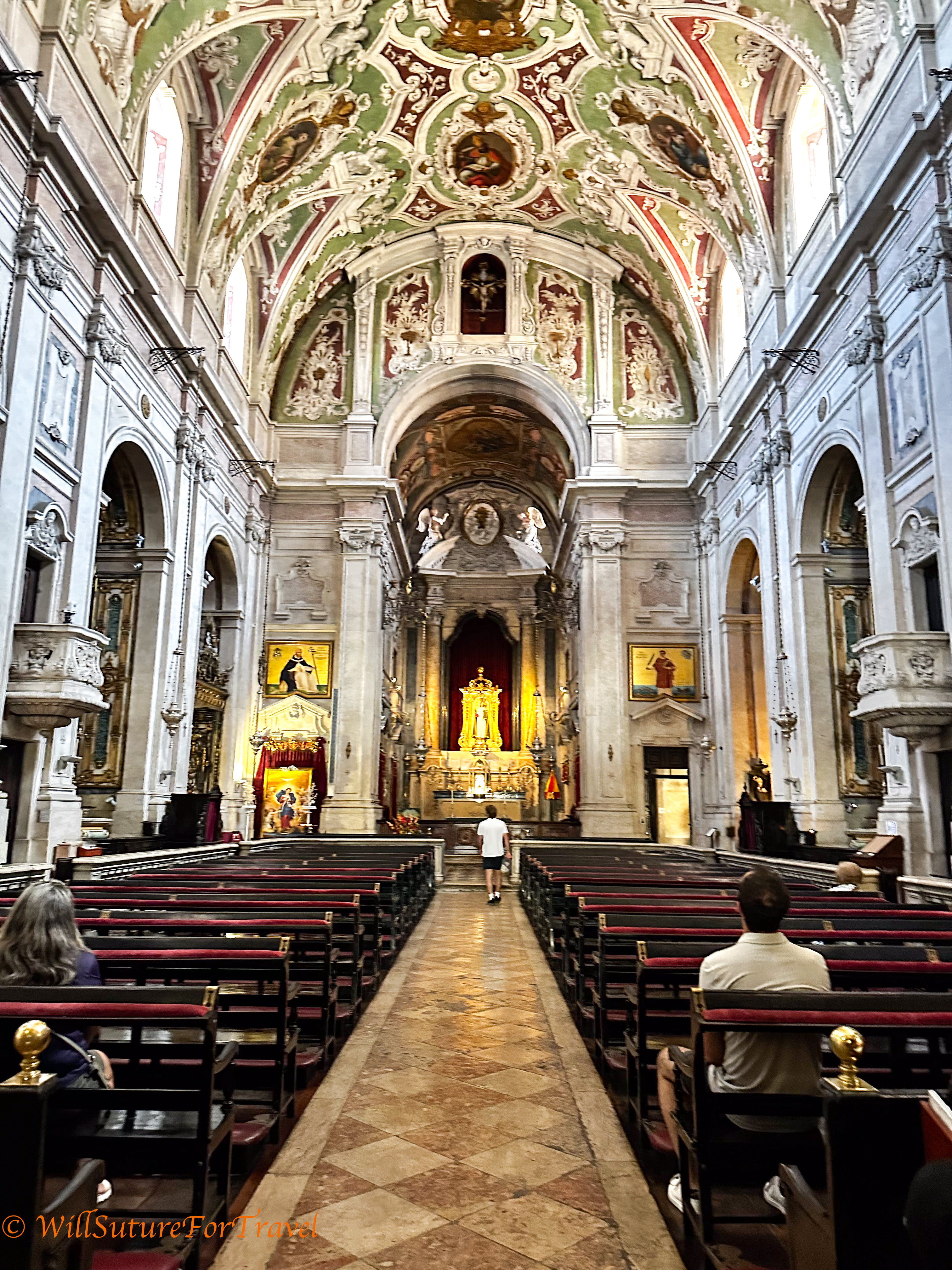 The ceiling of the church was painted by the Portuguese Rococo painter Pedro Alexandrine de Carvalho.