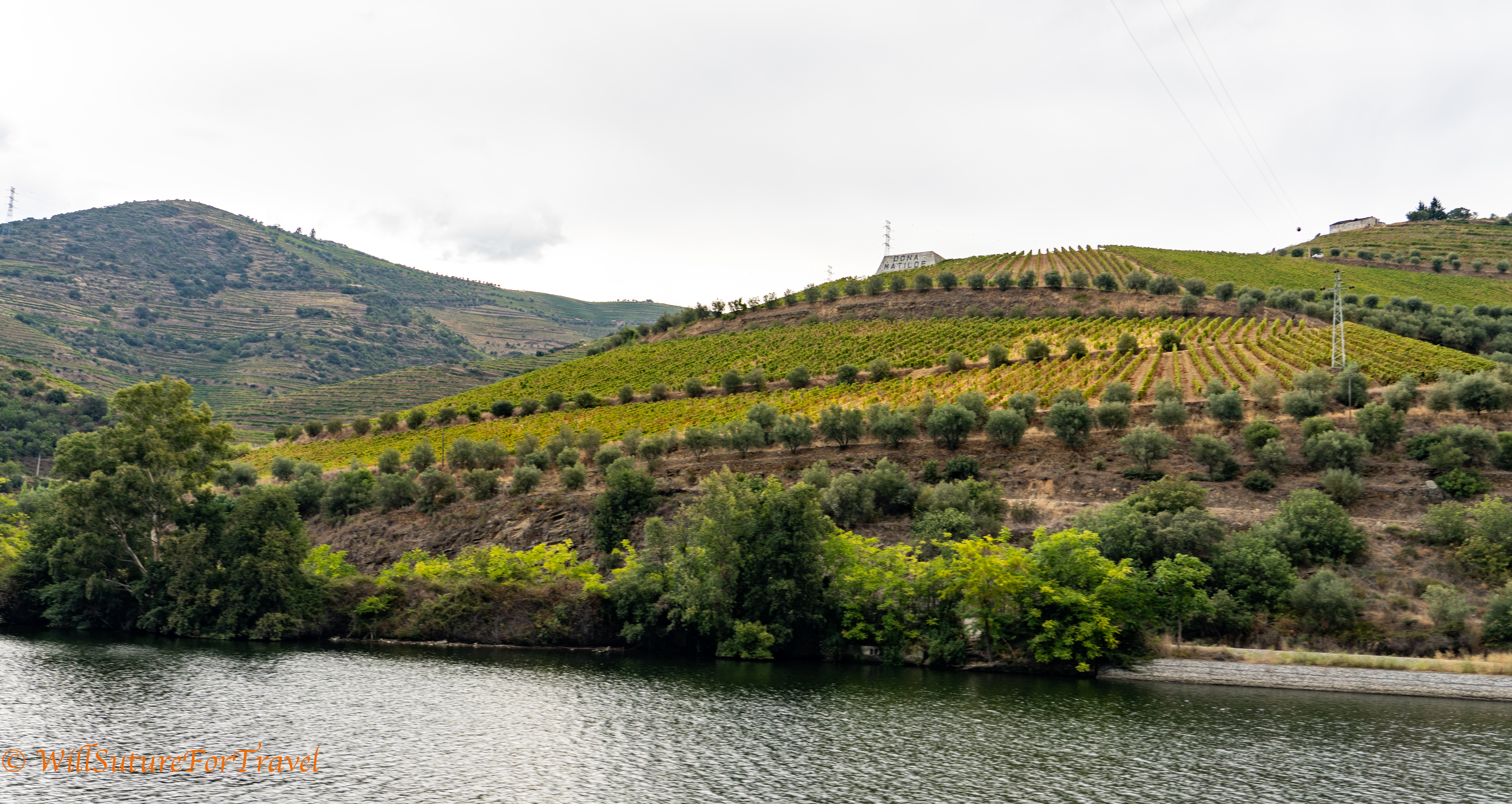 Afternoon sailing. There are some olive trees on the left in with the vineyards.